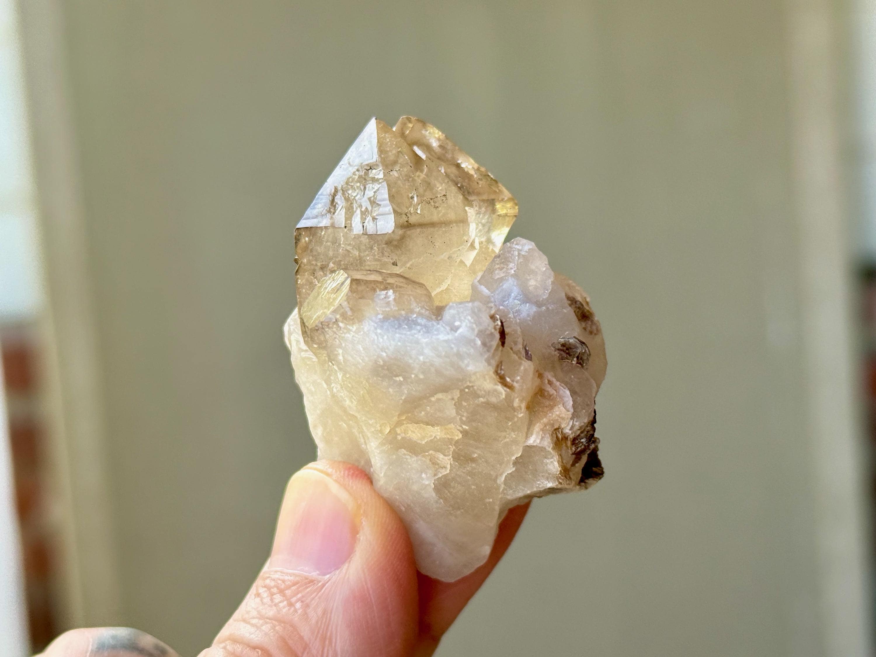 This Elestial Citrine with Lepidolite comes from a recent find in Coronel Murta, Minas Gerais, Brazil. Citrine activates, opens, and energizes the Solar Plexus and Navel Chakras, releasing personal power, creativity and most importantly the ability to manifest.