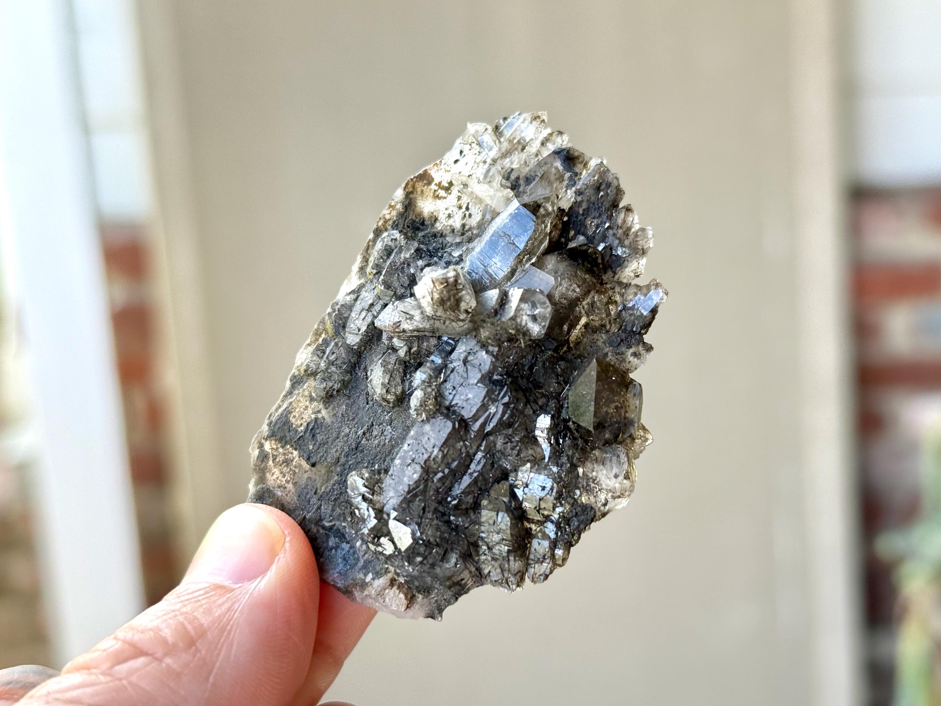 This elegant Black Tourmaline Quartz crystal comes from a recent find in the newly reopened Caba Saco Mine, Diamantina, Minas Gerais, Brazil. Black Tourmaline correlates to the Root Chakra and is a powerful spiritual grounding stone that protects against negativity of all kinds.