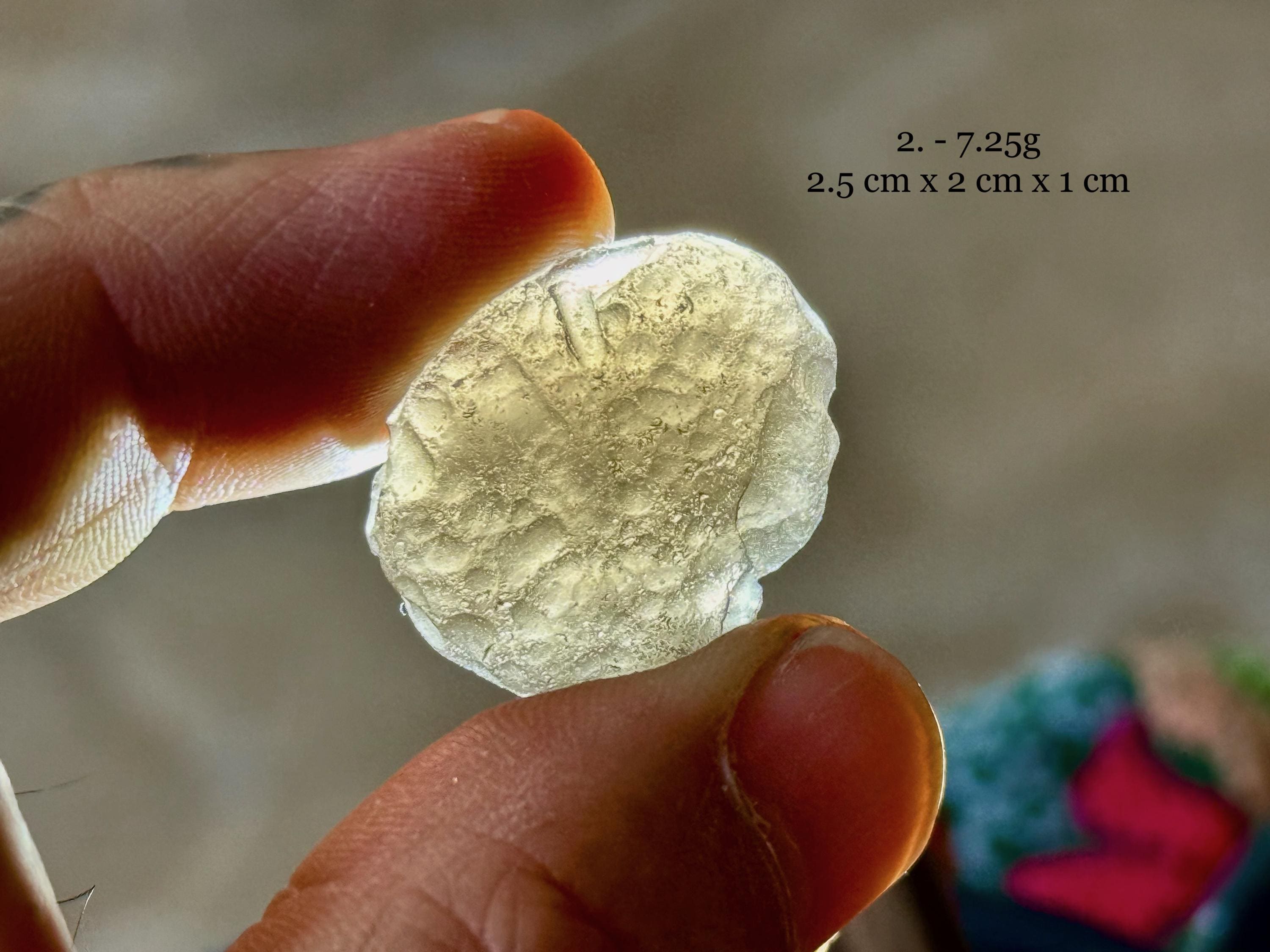 A magnificent collection of natural Colombianite crystals in a variety of sizes. These Colombianites range in quality, mostly from "A Grade" or "First Grade" up to "Museum Grade, with nice luster, excellent translucency and consistent pitted markings on their exterior (see more on "Grade" below). Number 8 borders on "B Grade." The pricing reflects the quality and grade. We've included photos of each in natural lighting and also backlit.
