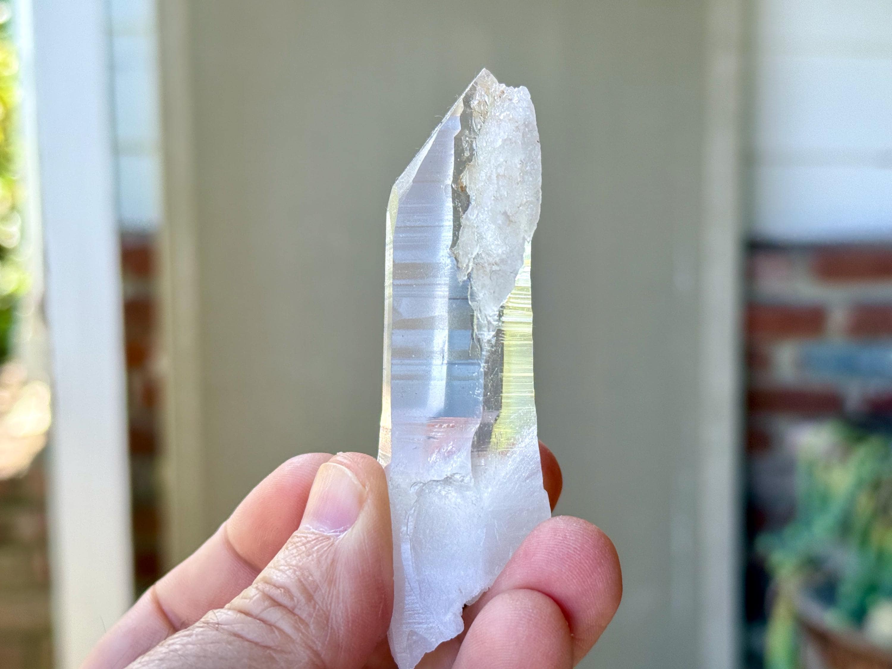 This crystal also possesses a mild inclusion of Blue Needle within. Please note, it's a mild and sparse inclusion, and can be a bit of a challenge to find, as it displays through the same side as the striations. We have included photos of the Blue Needle inclusions here as a guide (Photos 3-4).