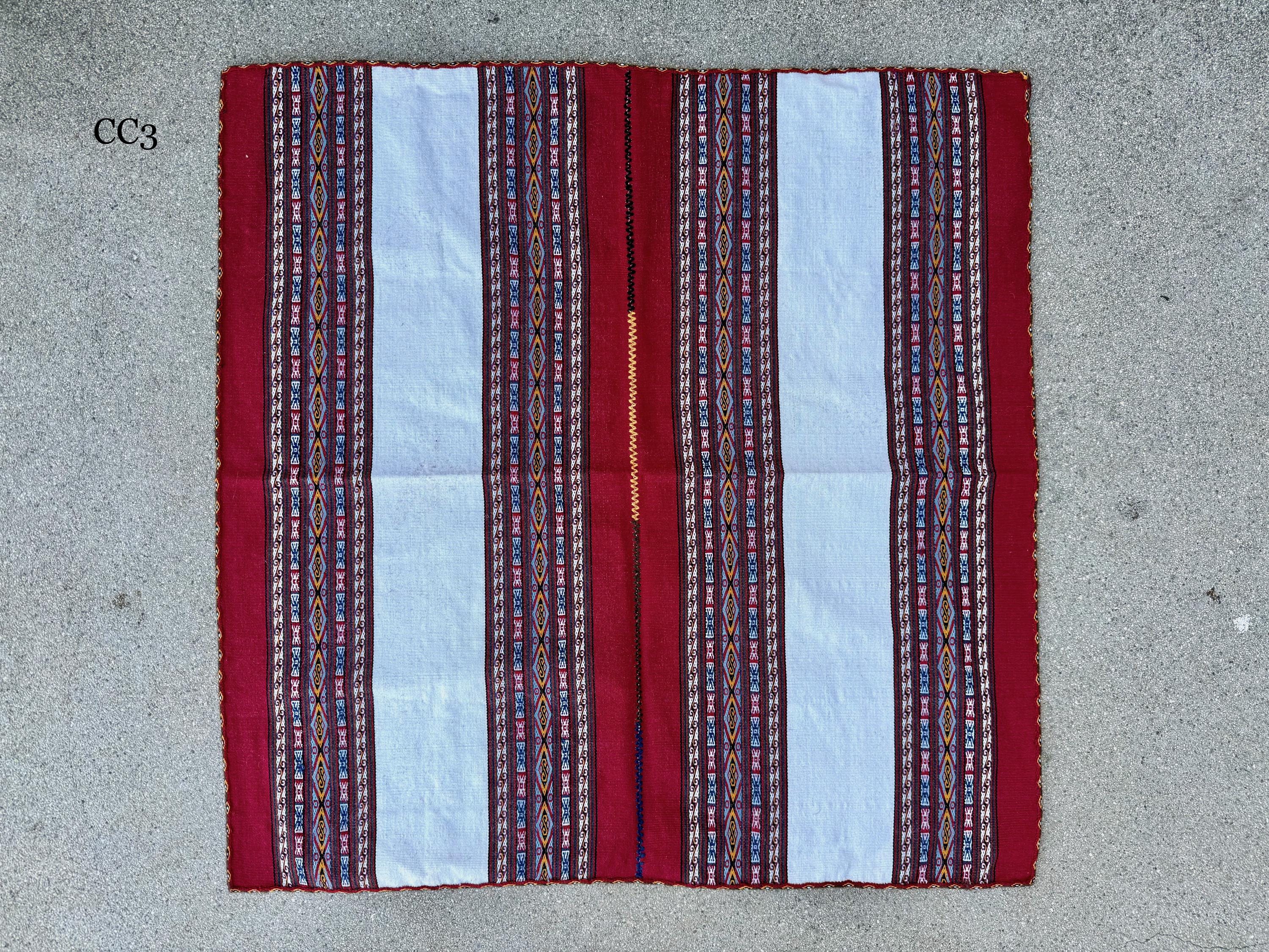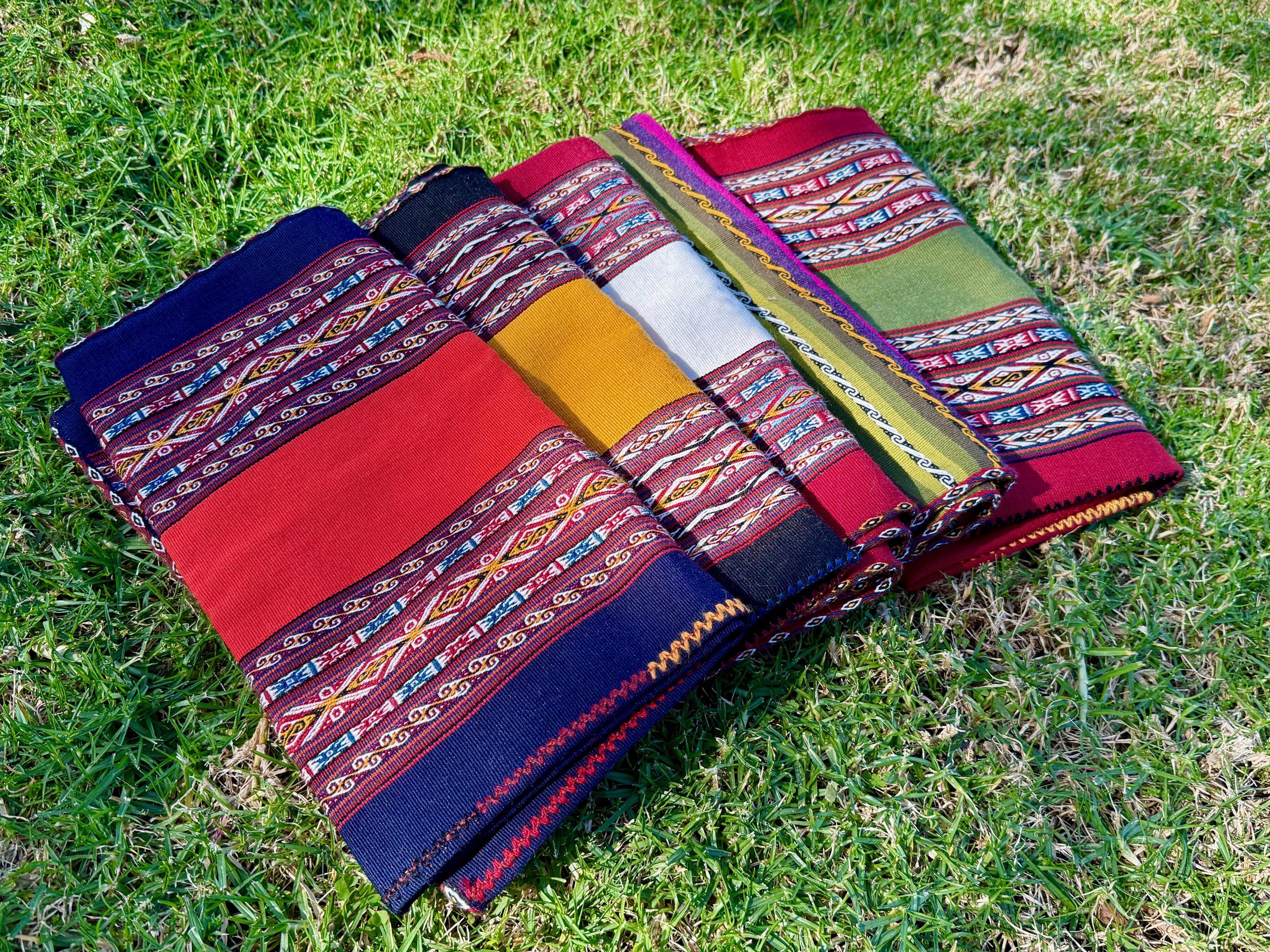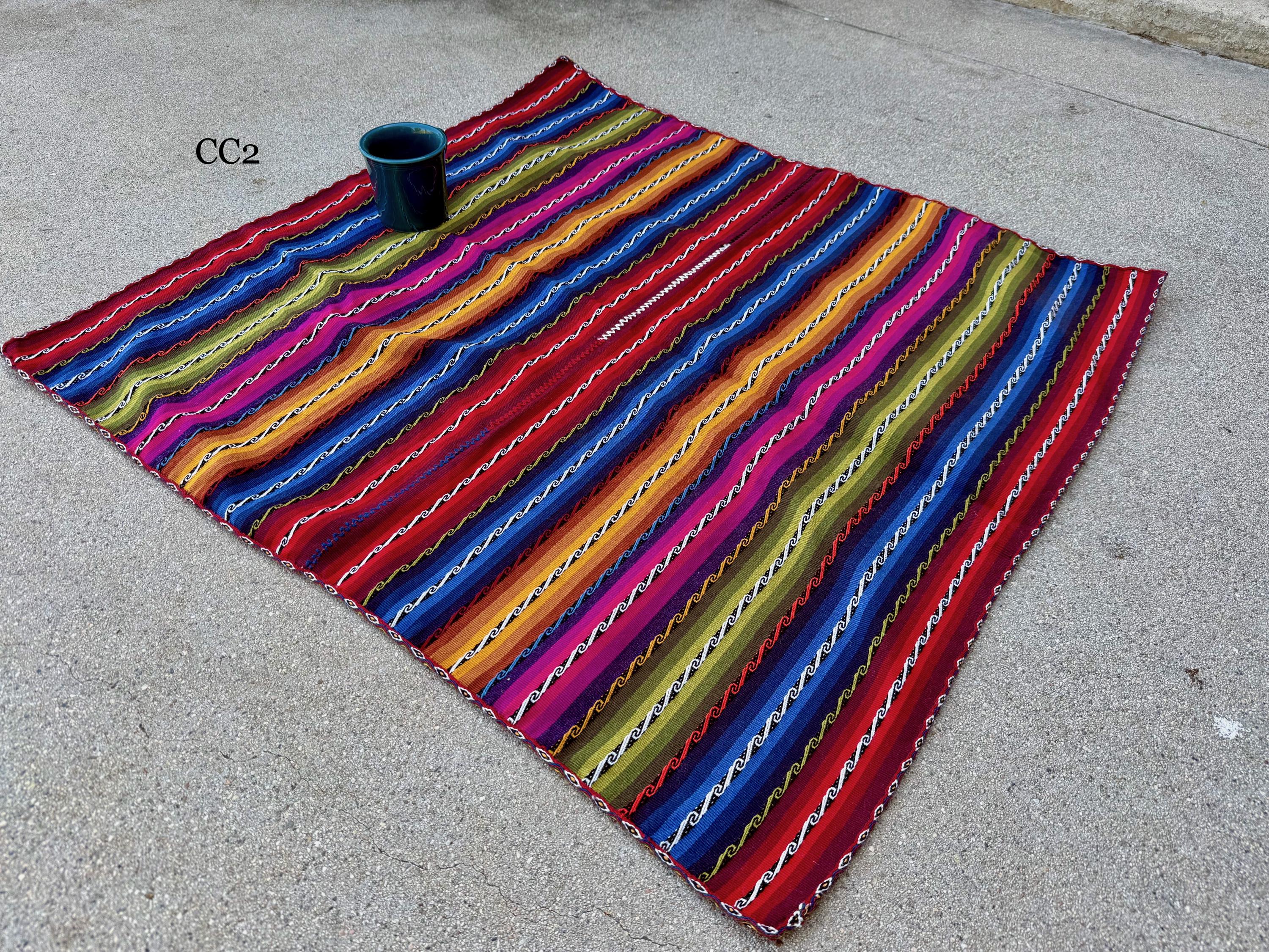 A rainbow of vibrant colors and traditional patterns adorn these magnificent shamanic manta cloths from Chinchero! These mantas are very durable and all are reversible/double-sided, making them ideal for those who follow shamanic traditions that require "bundling" one's mesa.