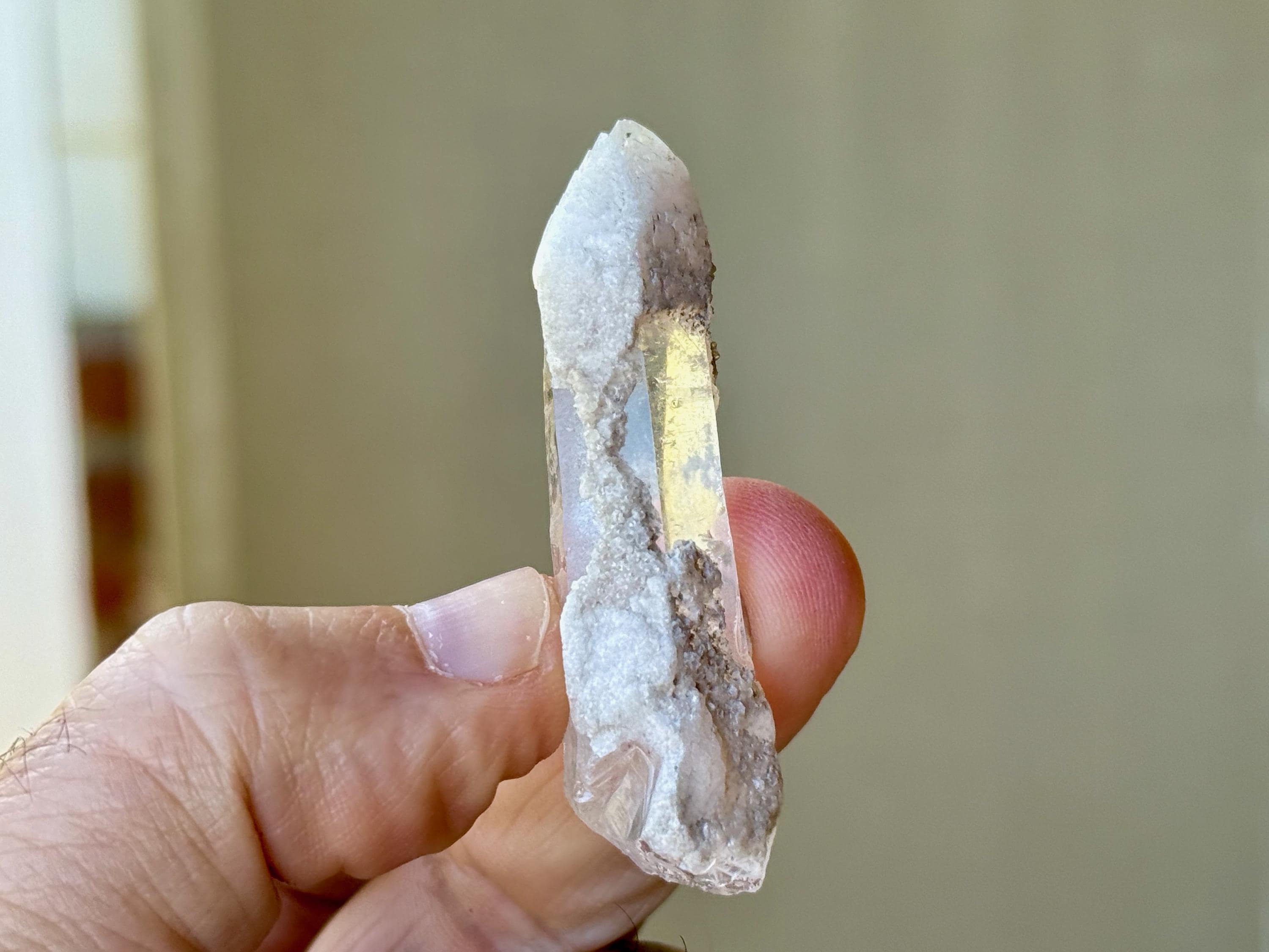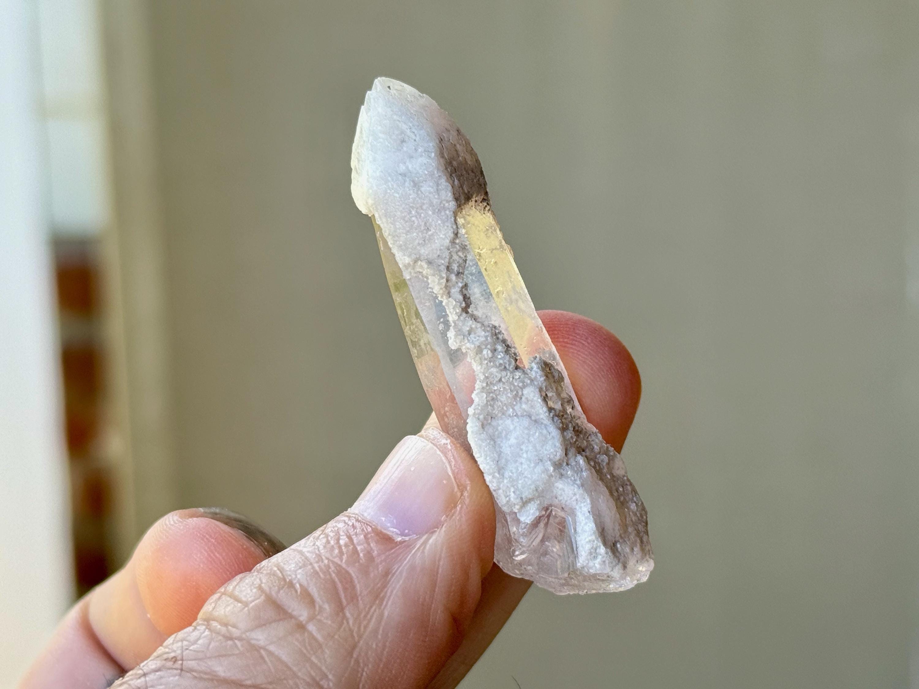 This type of Lemurian is sometimes called, "Snow Quartz," "Dreamsicle" or "Dream Coat" Lemurian, due to the partially white frosted coating on the exterior that creates a beautiful "frosted" complexion.