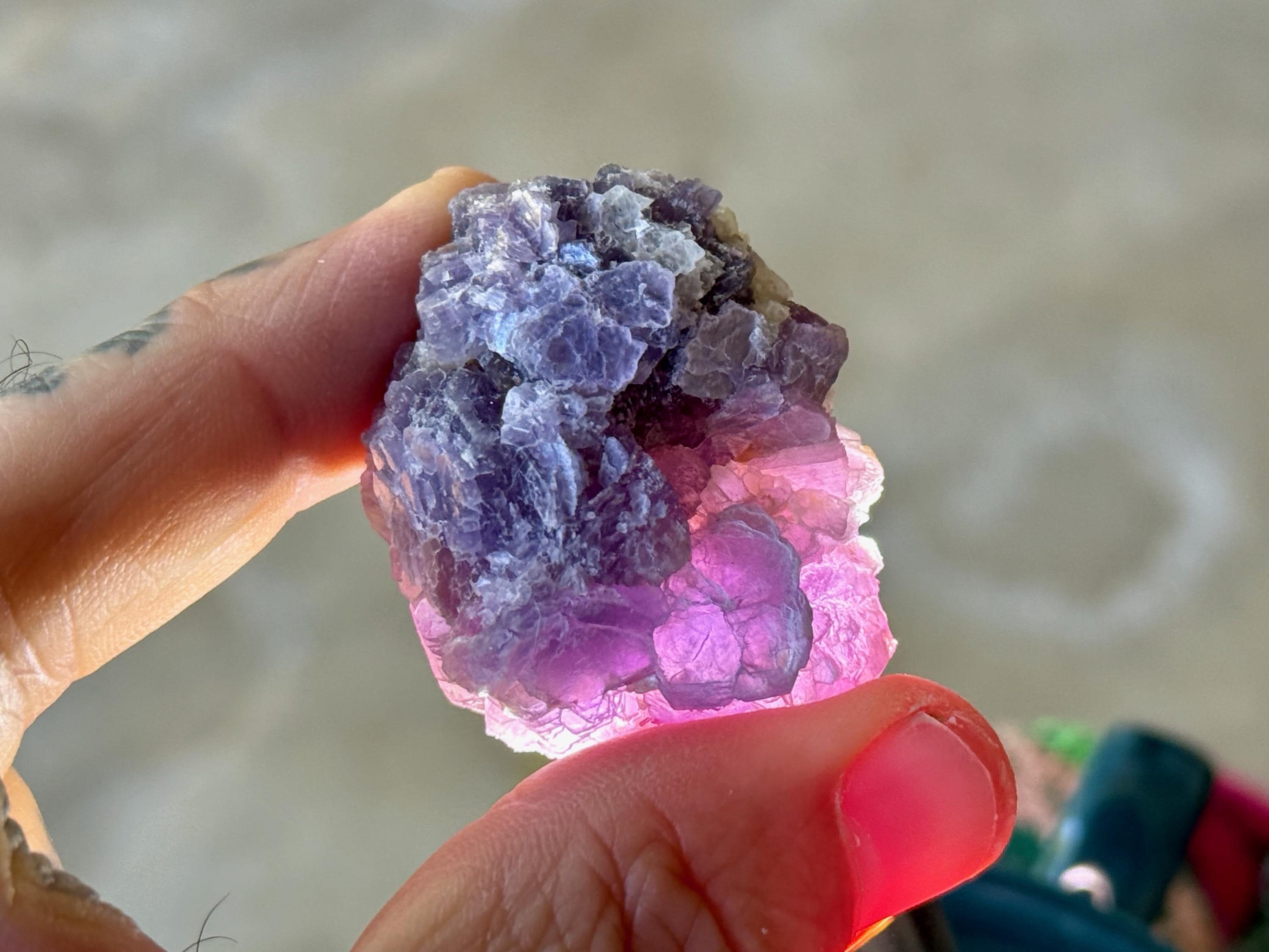 Vibrant color to this stunning Unicorn Stone crystal with a matrix of sparkling Purple Lepidolite. On the backside, there is an inclusion of Pink Tourmaline. When backlit, this piece passes light beautifully (Photos 3-4).