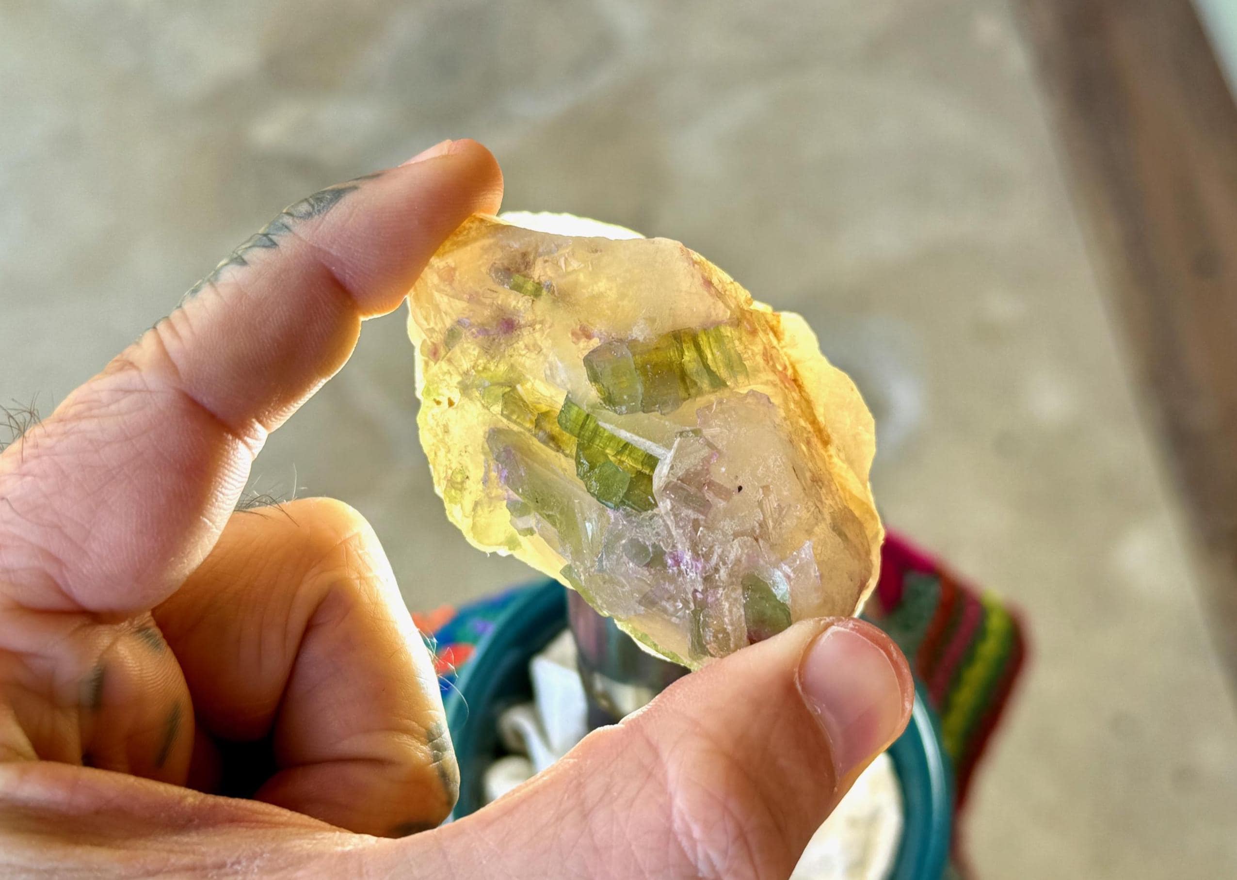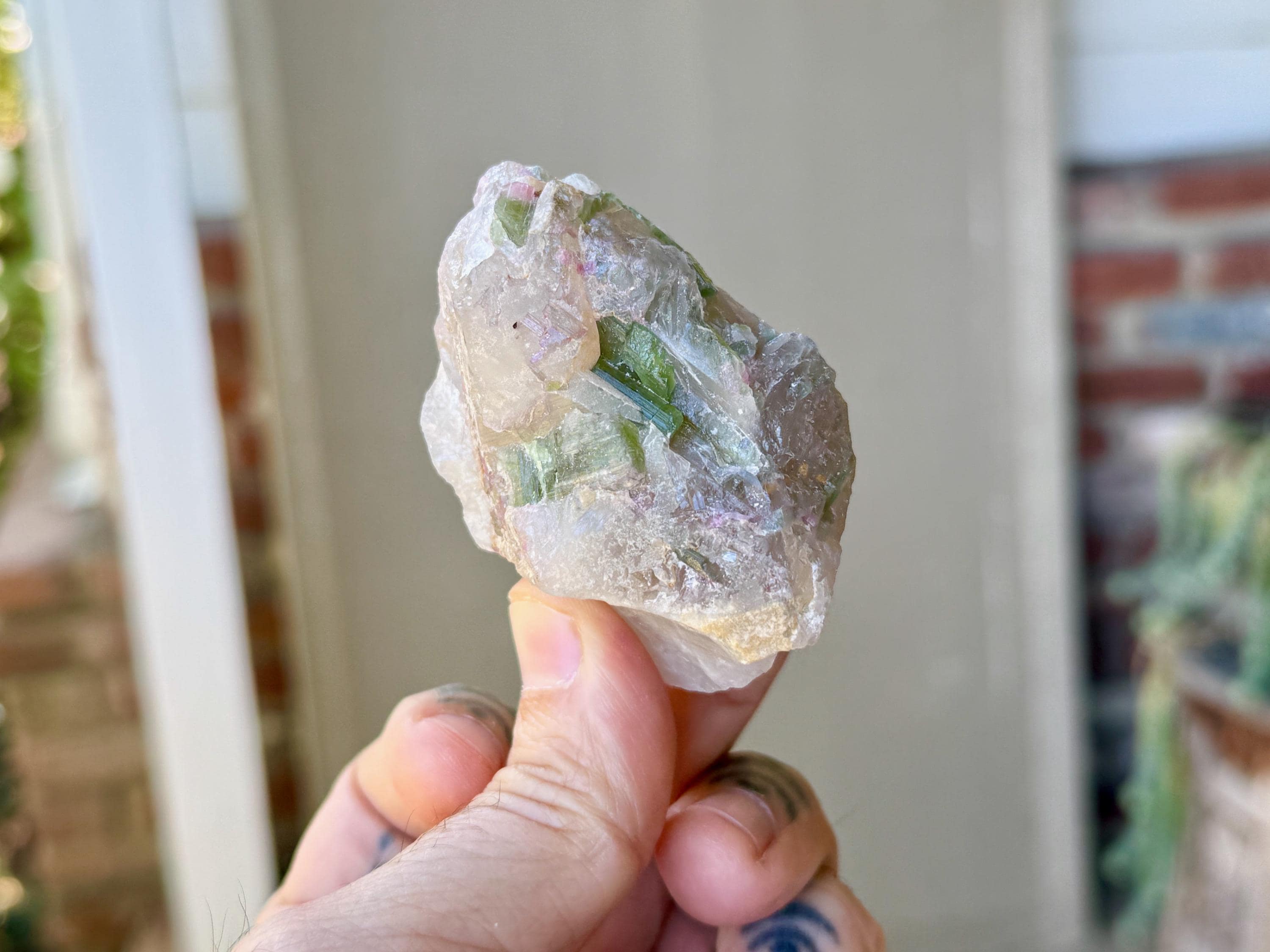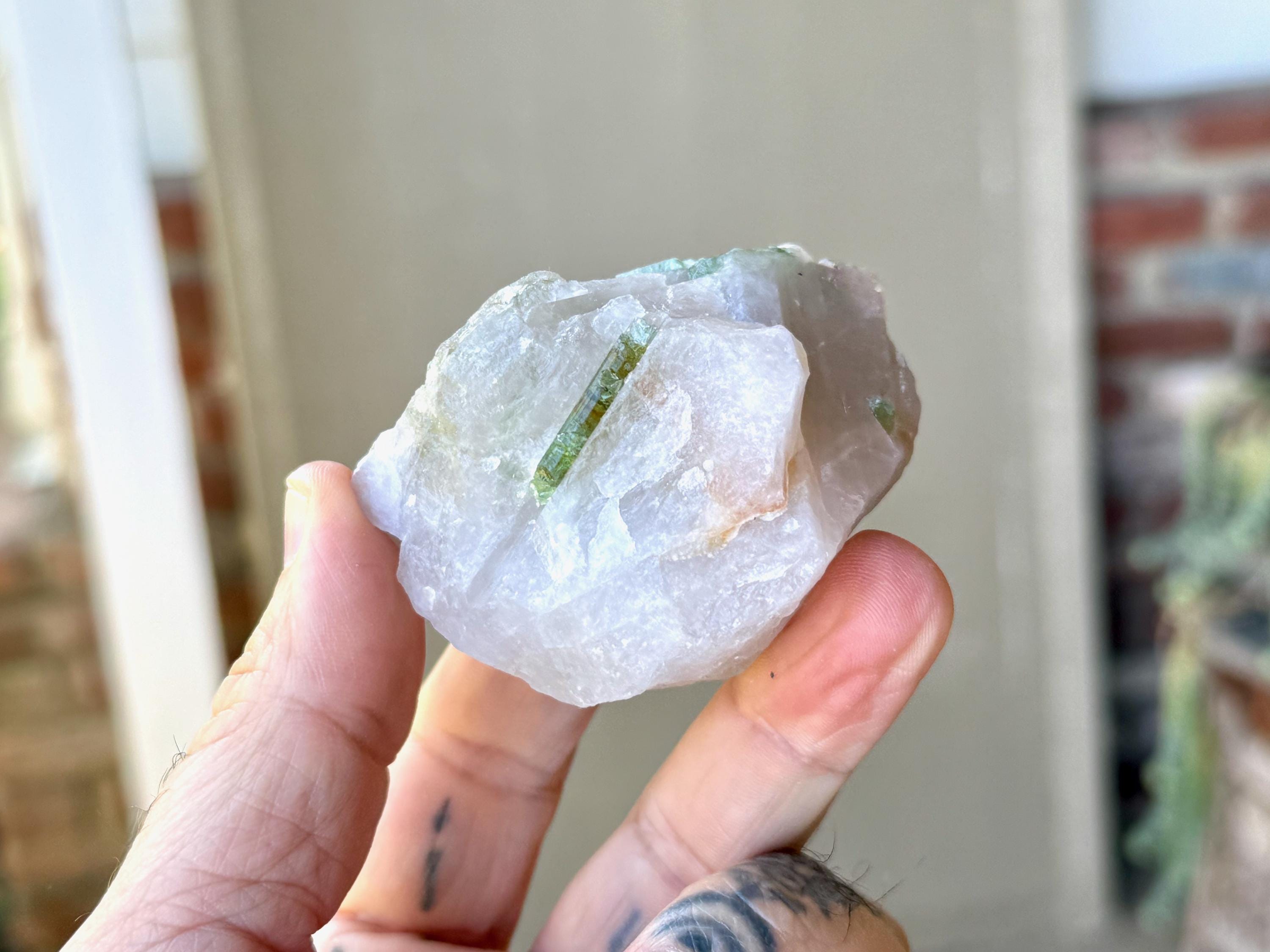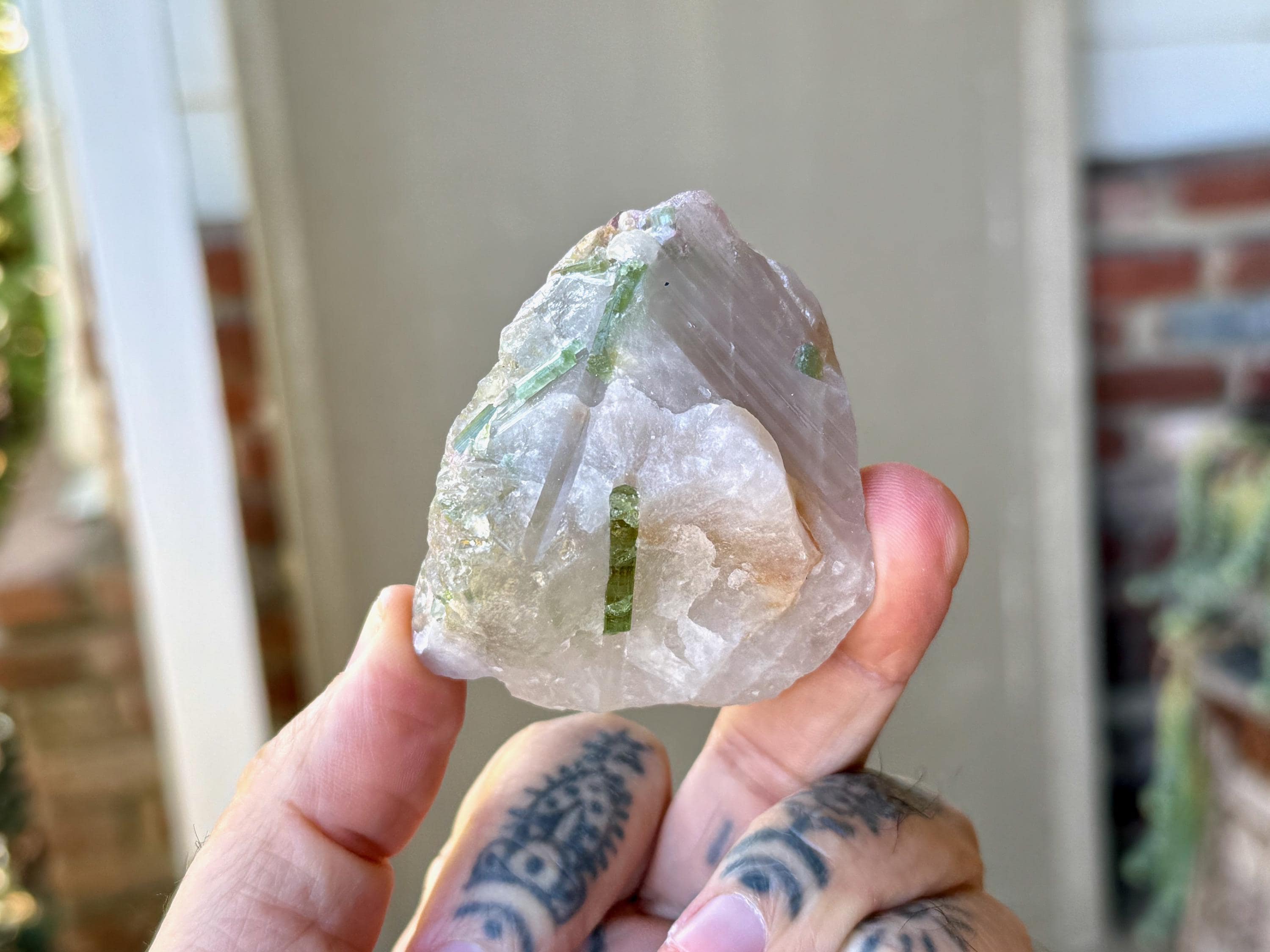 Green Tourmaline purifies and strengthens, allowing one to energetically carry greater amounts of Life Force (Prana Energy). As more energy is carried within the physical body, higher degrees of consciousness can be maintained. It is a wonderful protection stone, deal for sealing holes in the aura that leave one vulnerable to negativity.