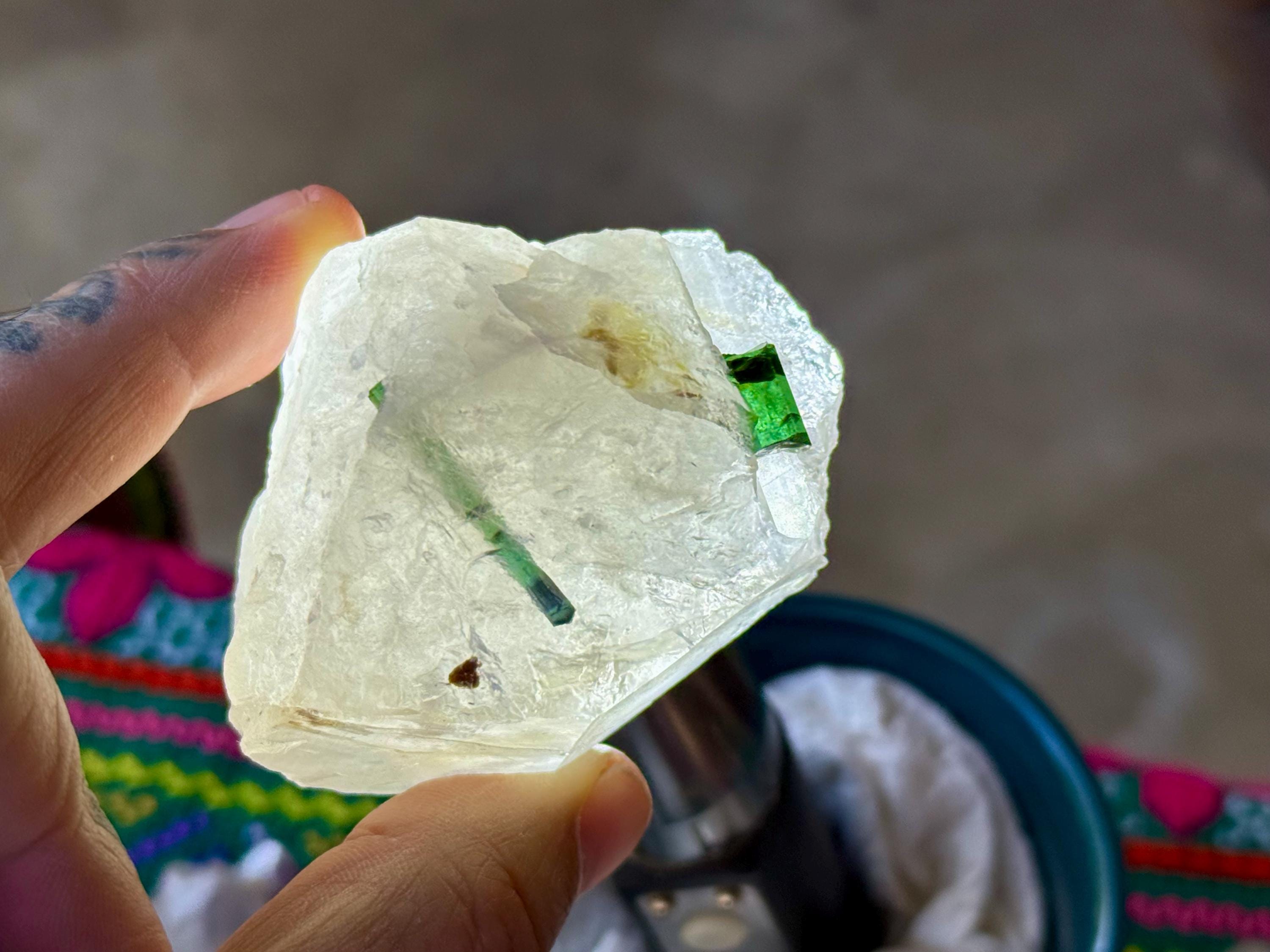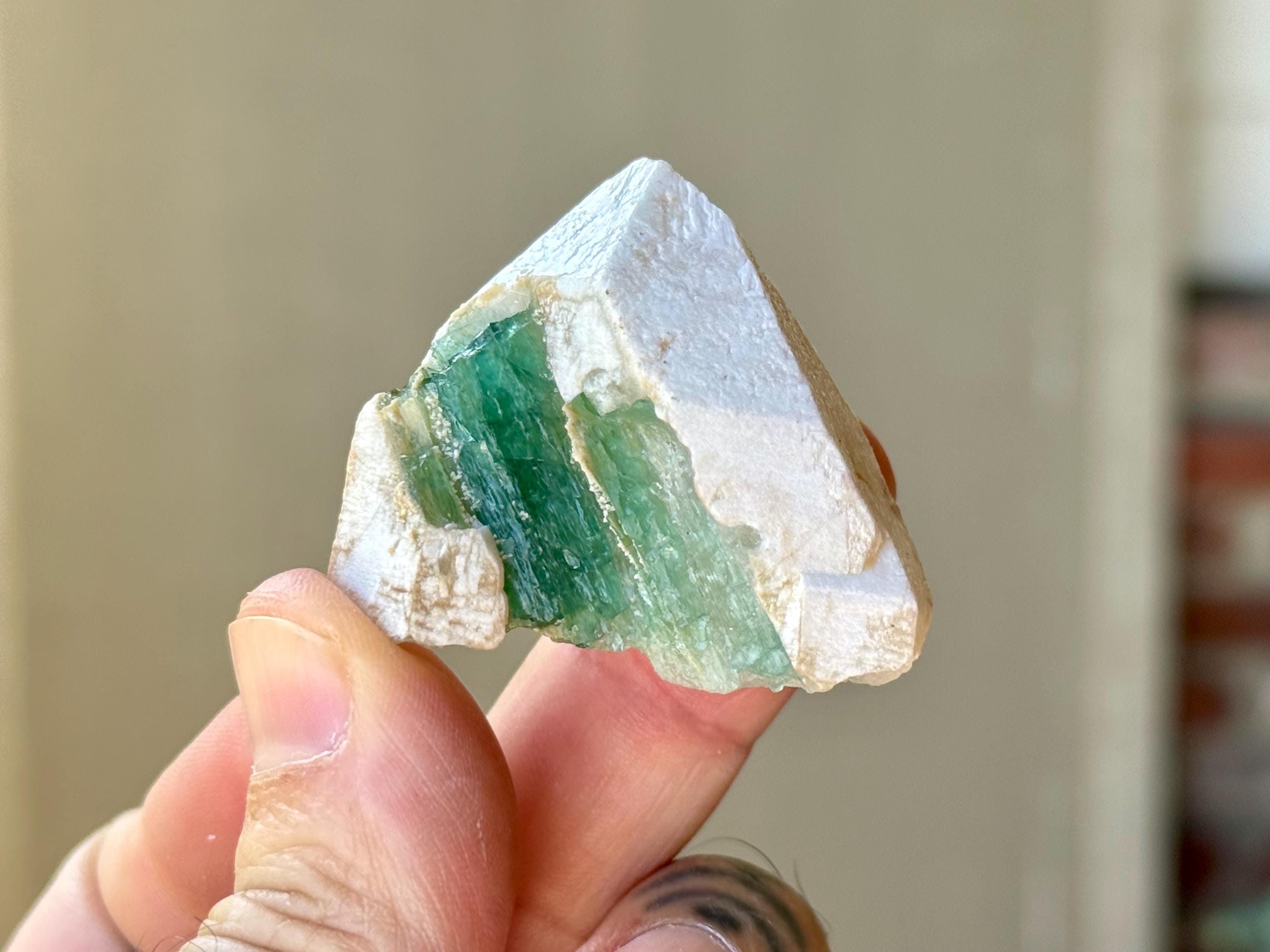 Green Tourmaline purifies and strengthens, allowing one to energetically carry greater amounts of Life Force (Prana Energy). As more energy is carried within the physical body, higher degrees of consciousness can be maintained. It is a wonderful protection stone, deal for sealing holes in the aura that leave one vulnerable to negativity.