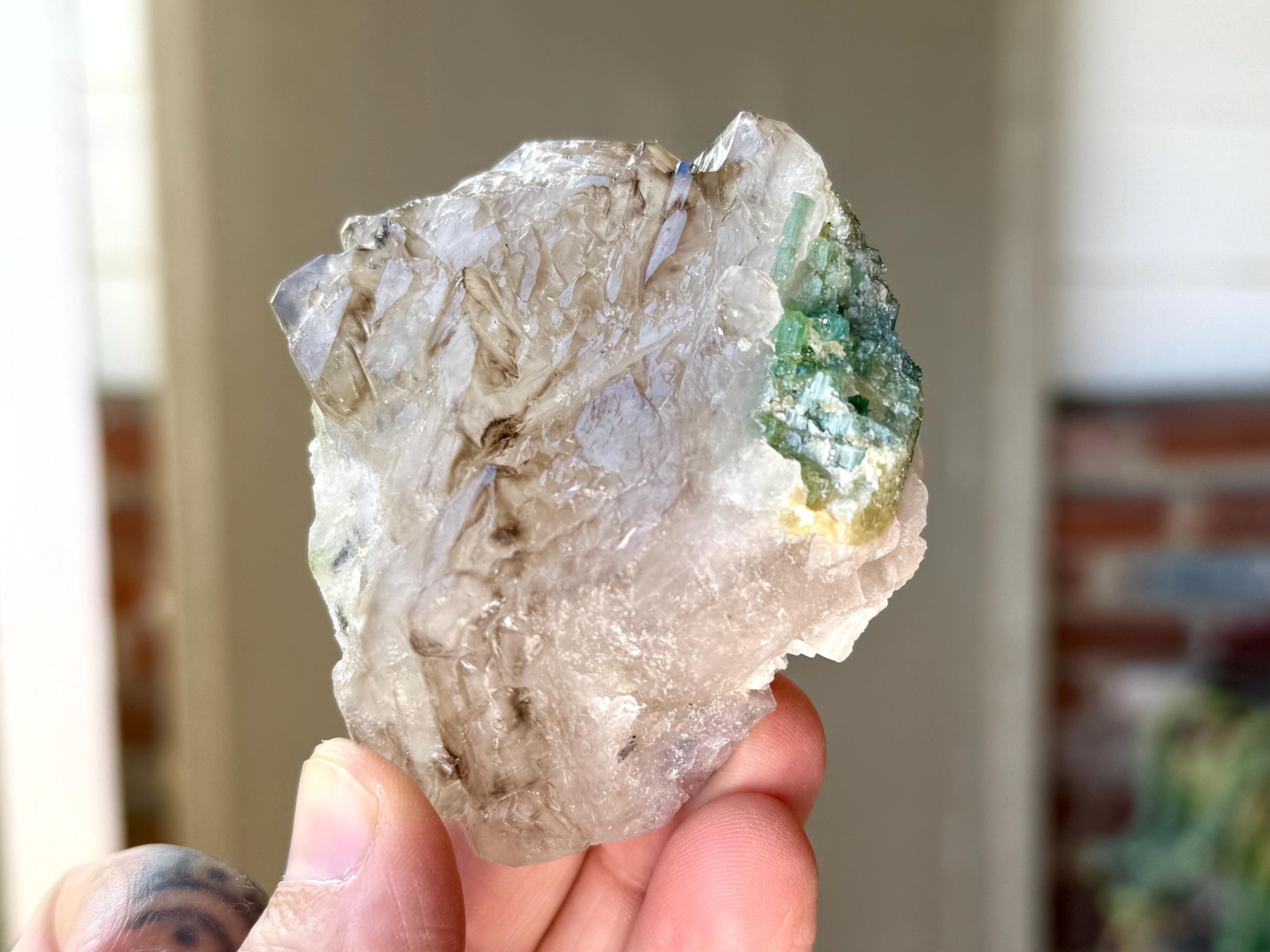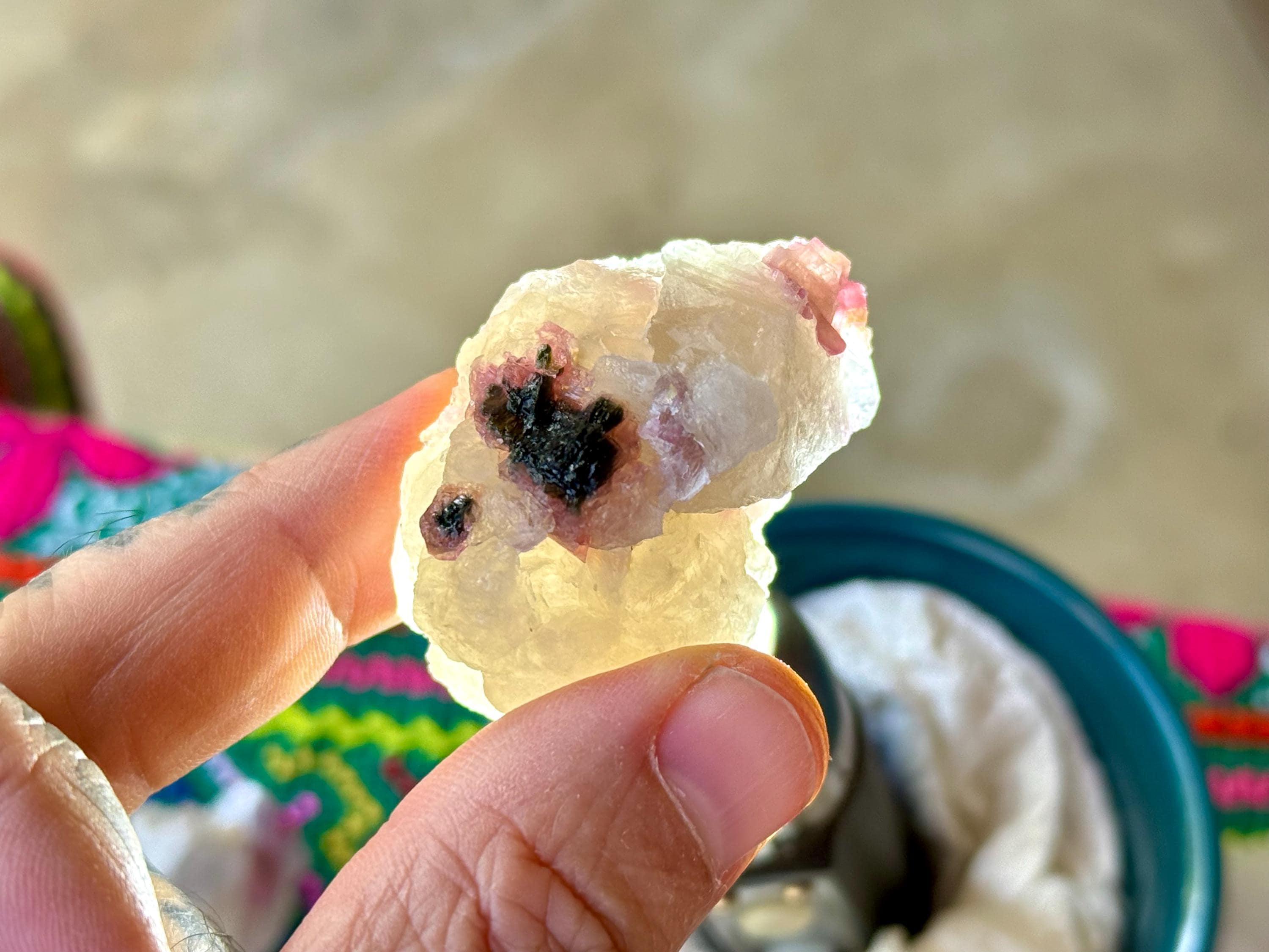 This colorful lot of Unicorn Stone Quartz with Green & Pink Tourmaline and Lepidolite comes from a recent find in Coronel Murta, Minas Gerais, Brazil.