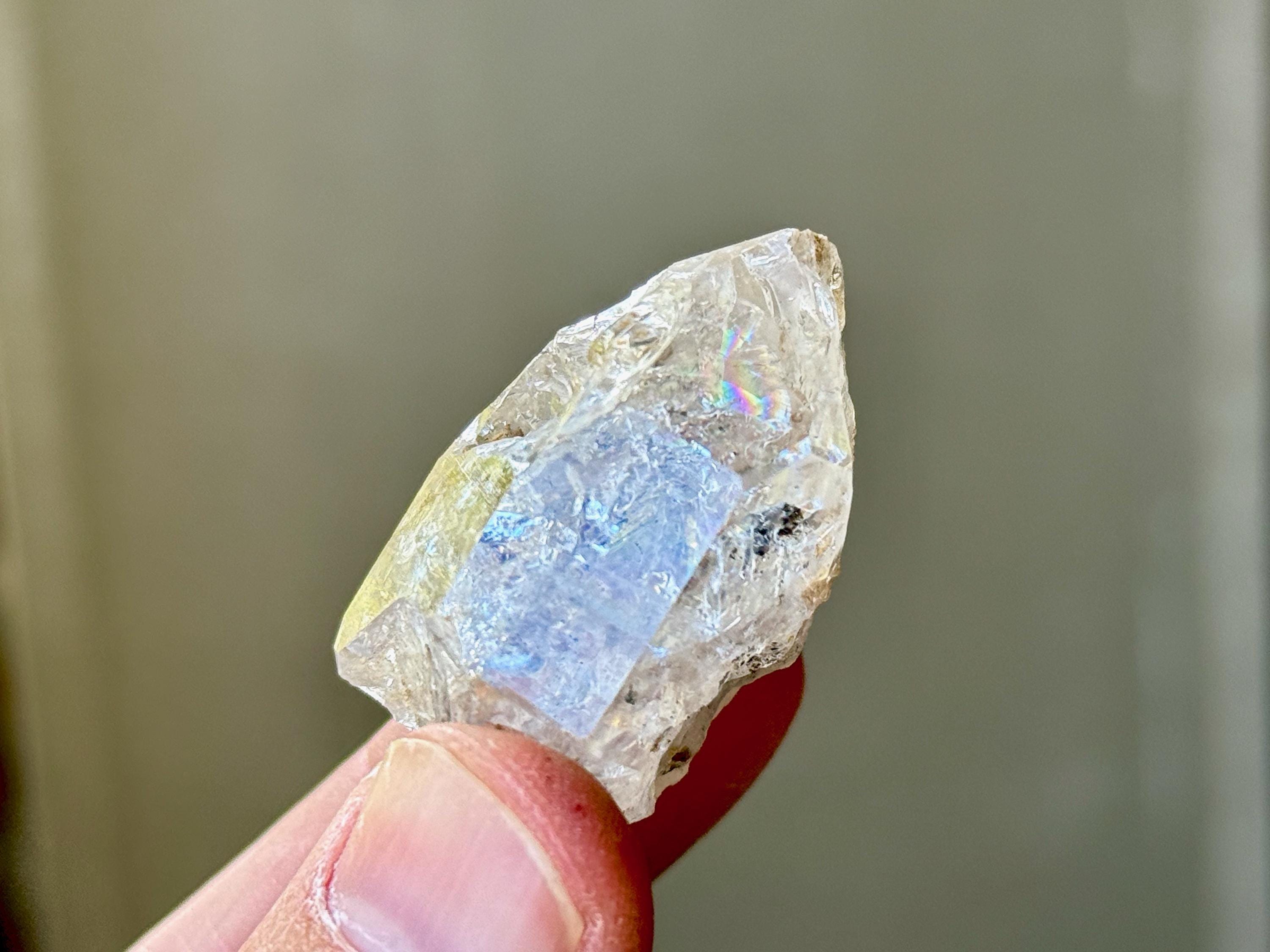 This crystal has a minor chip to the back facet and does not have a termination at the base. However, the primary termination is otherwise intact and very nice. A great rainbow-filled piece from this find!