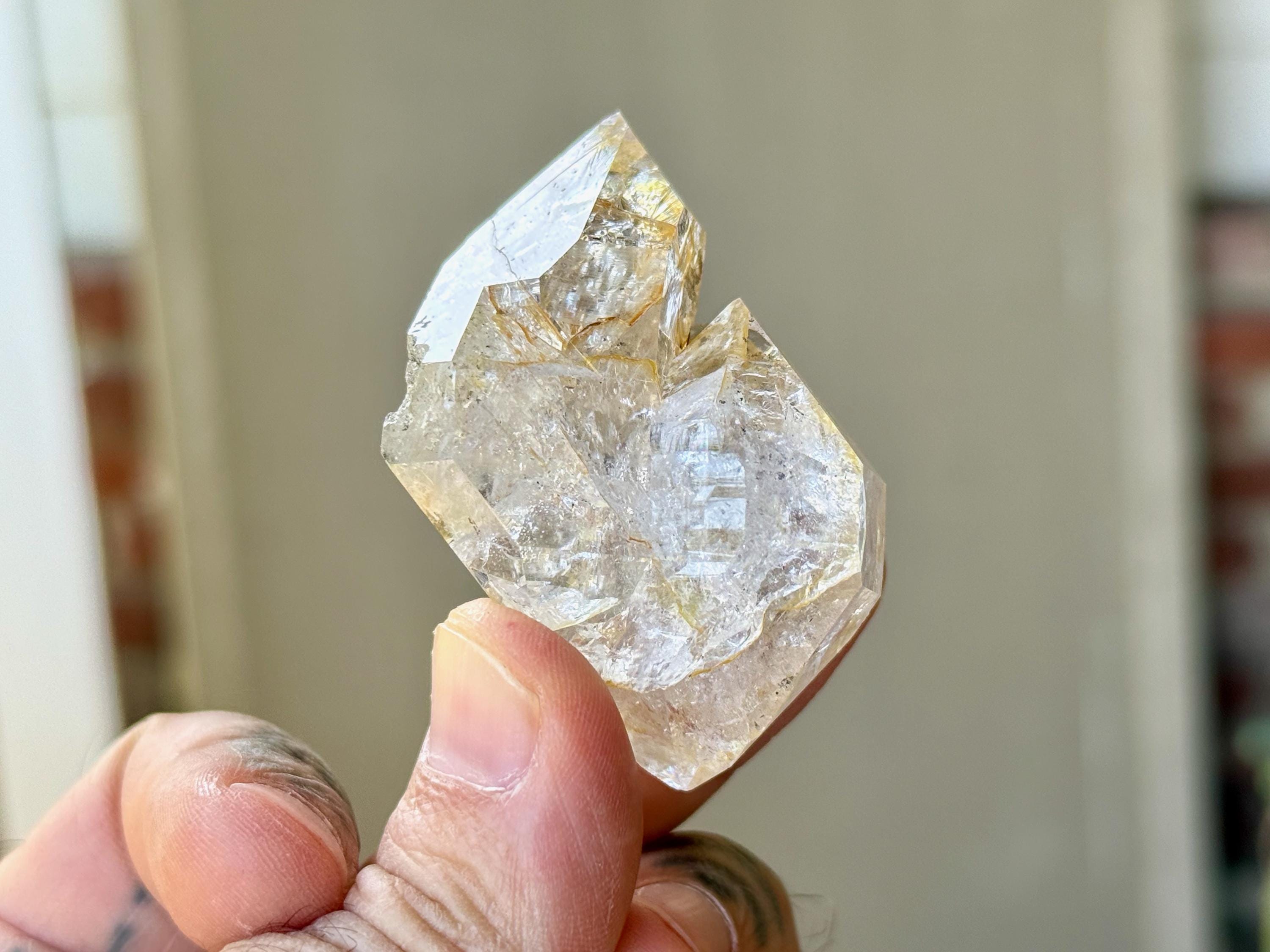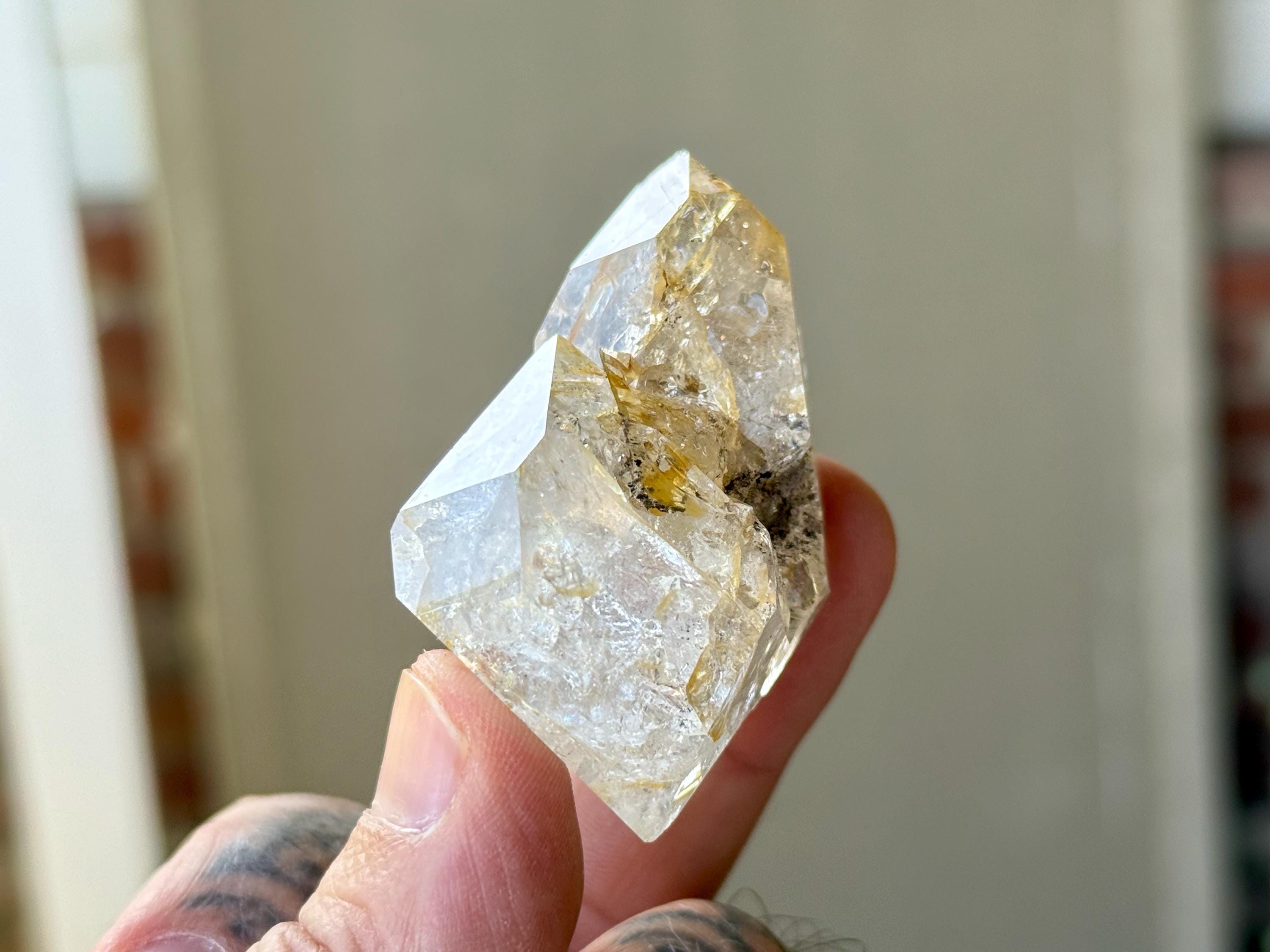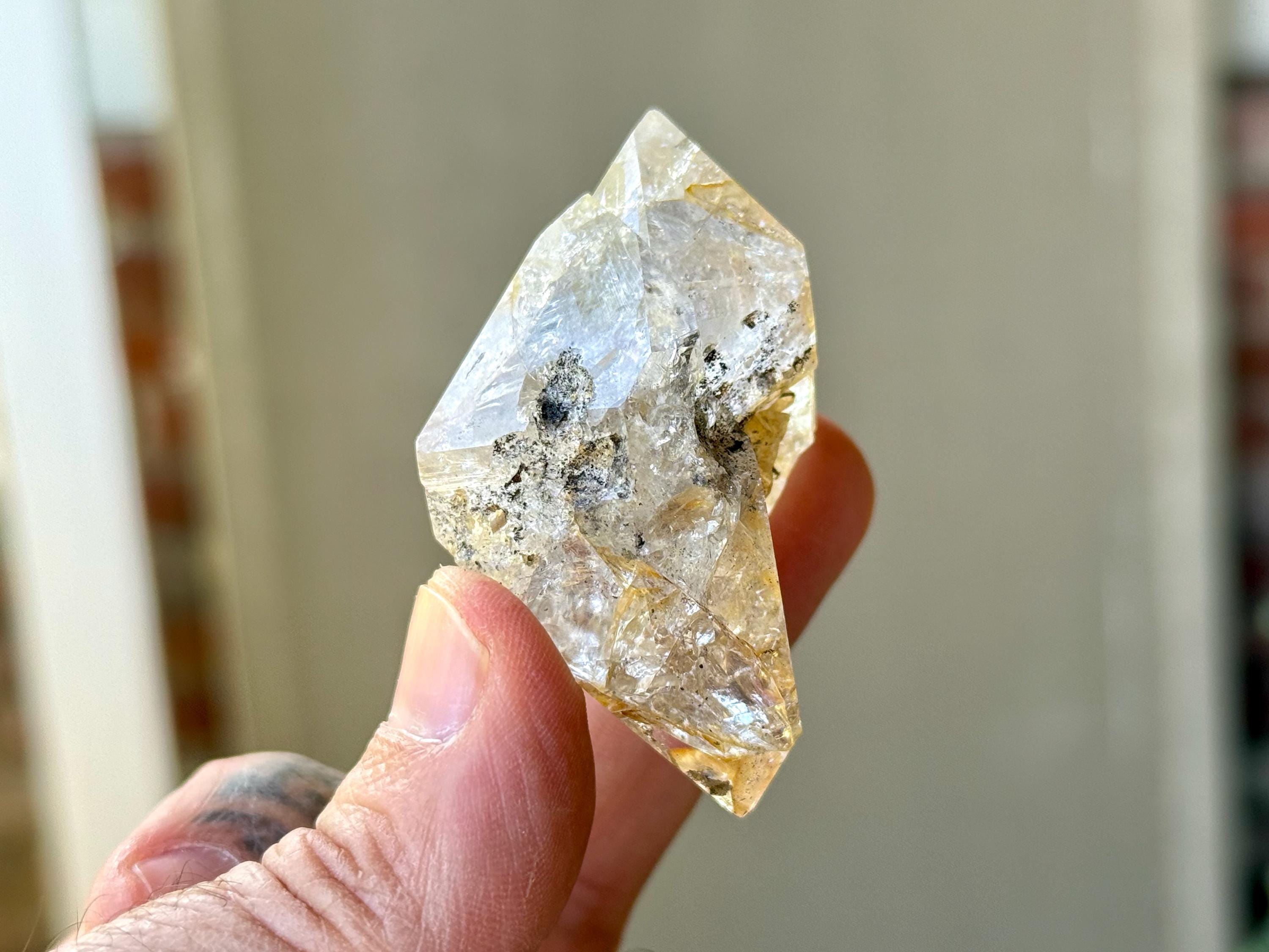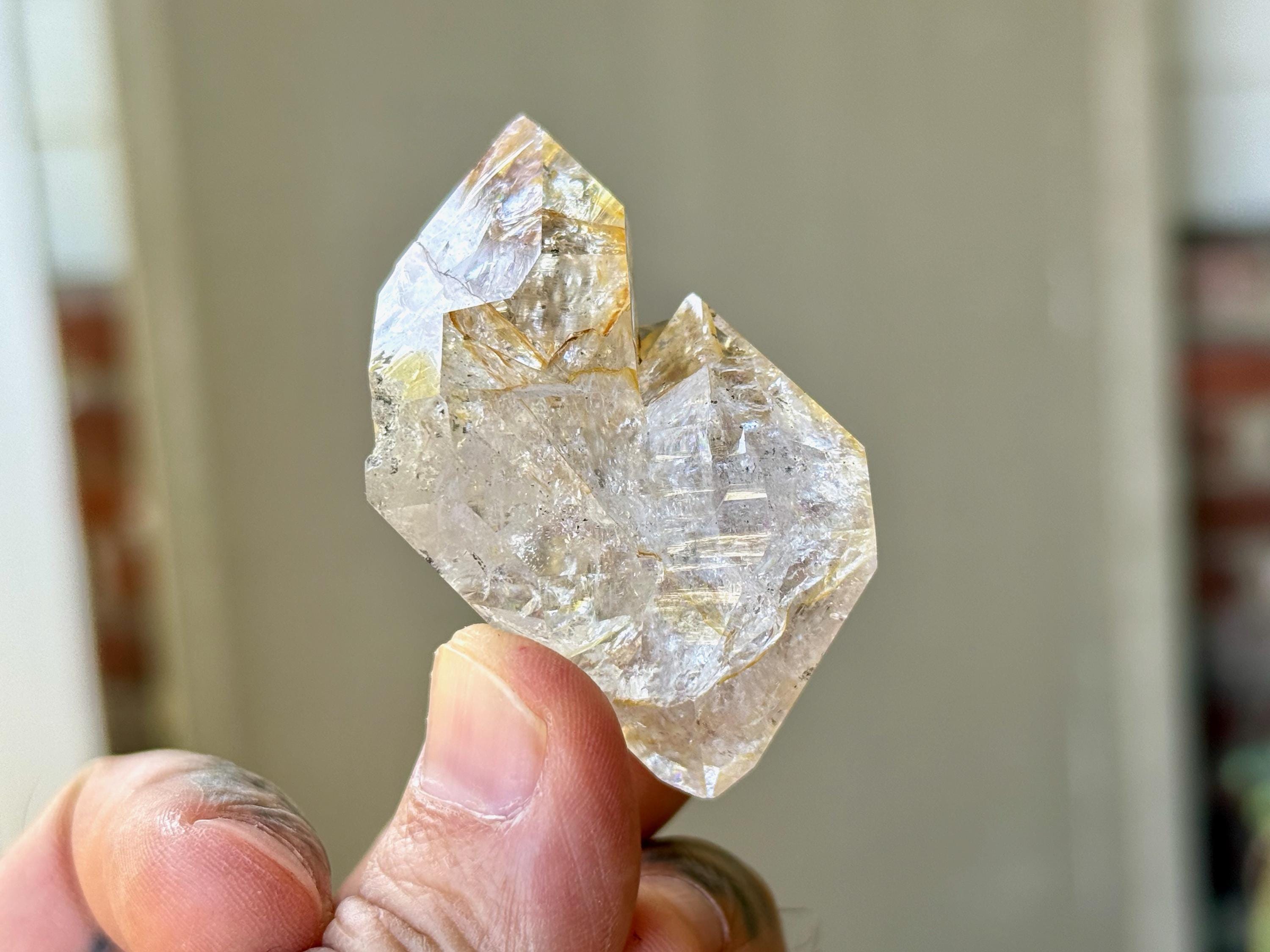 So much sparkle to this bright and vibrant Herkimer Diamond with superb clarity and some mild "golden healer" inclusions within. The clarity allows us to see all the lovely crystalline structures within.