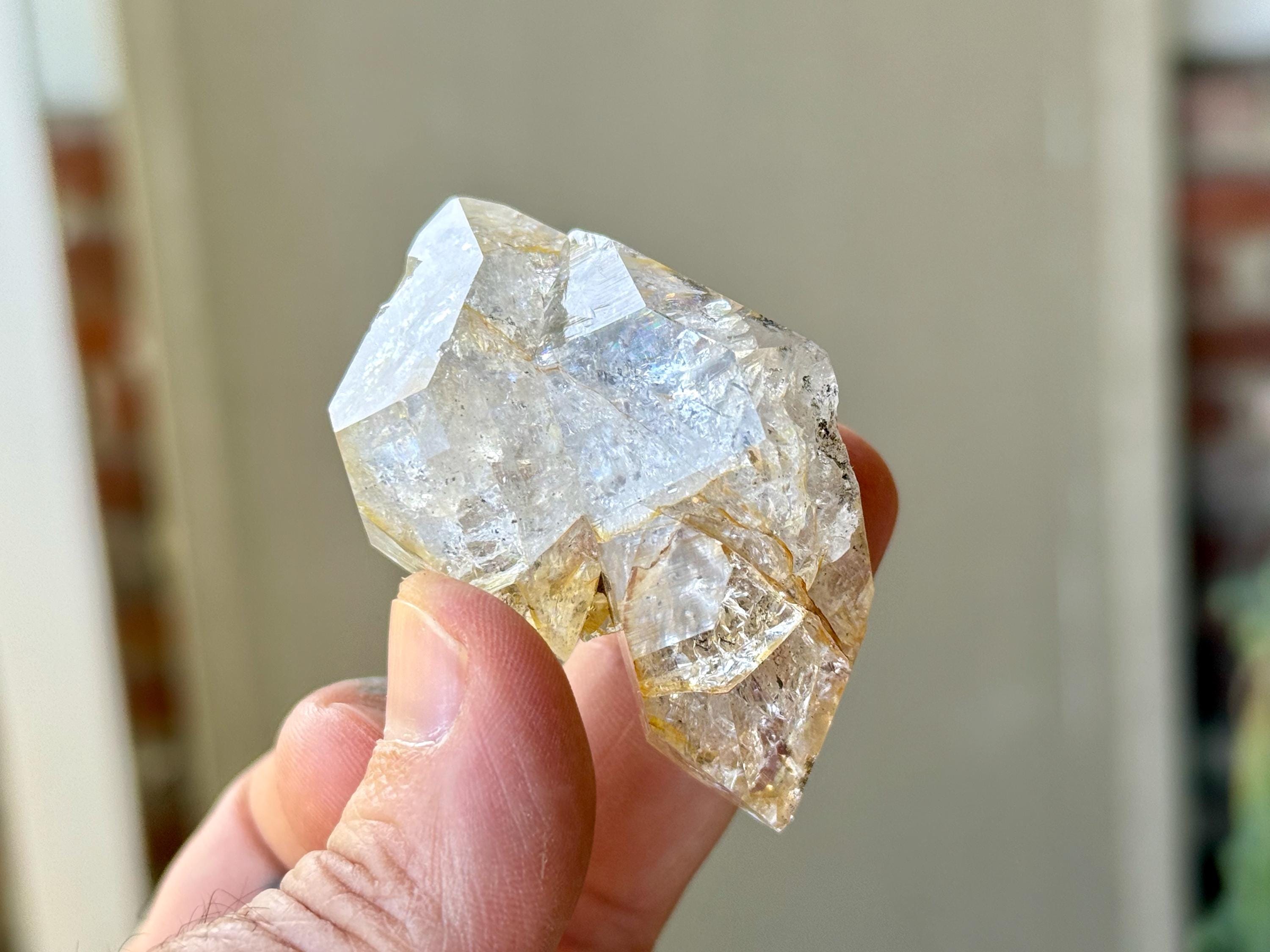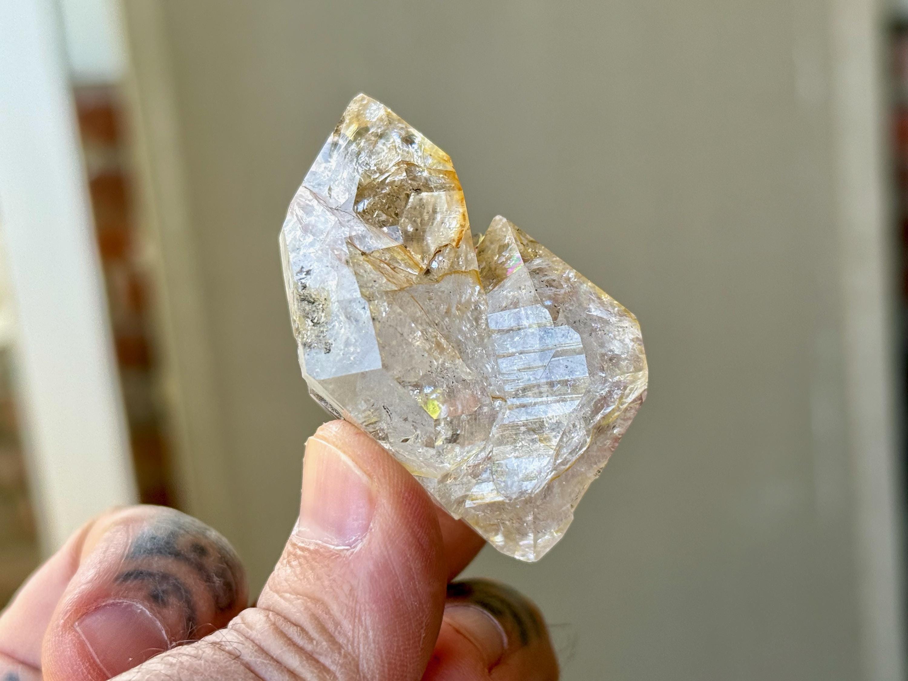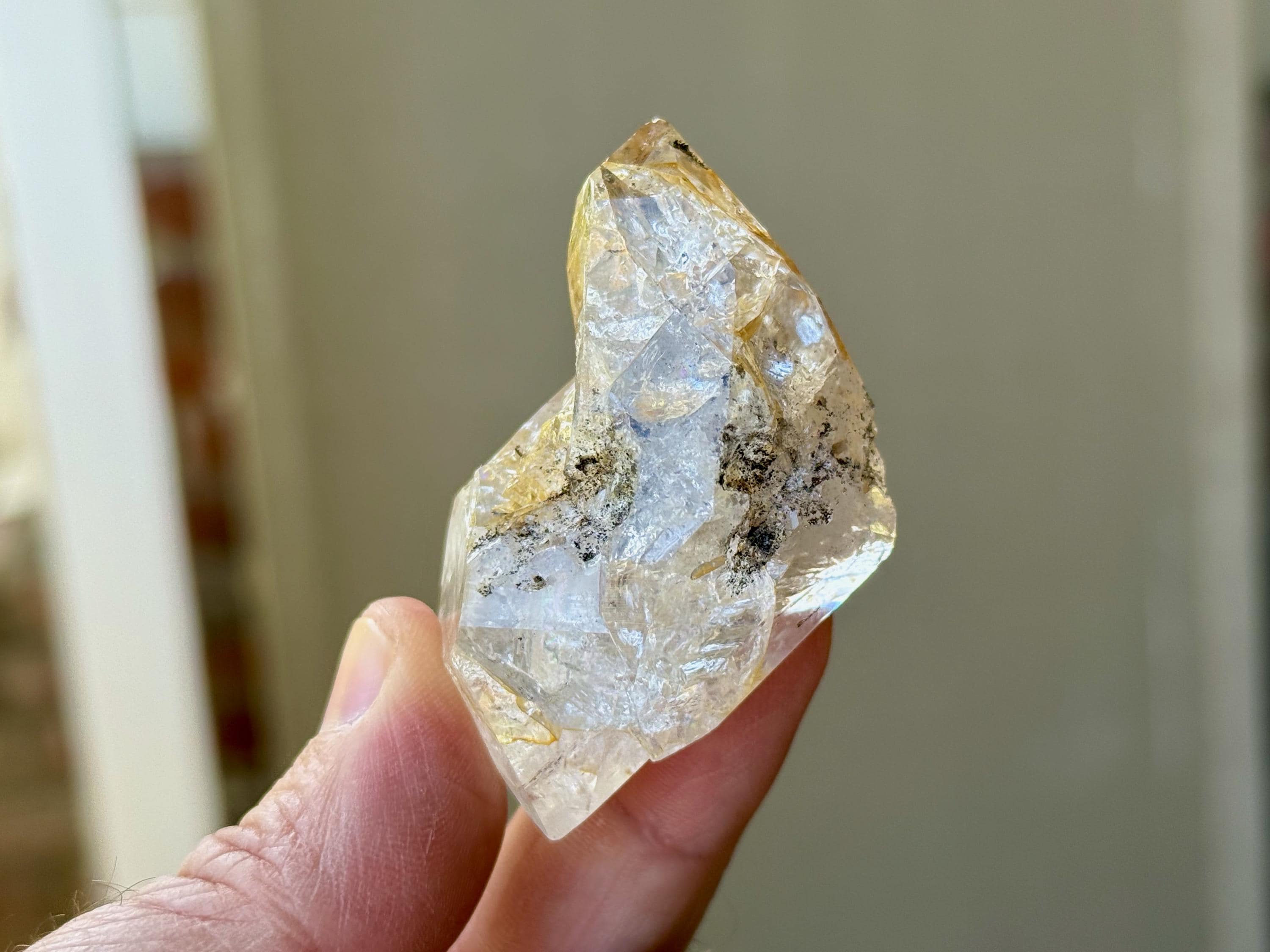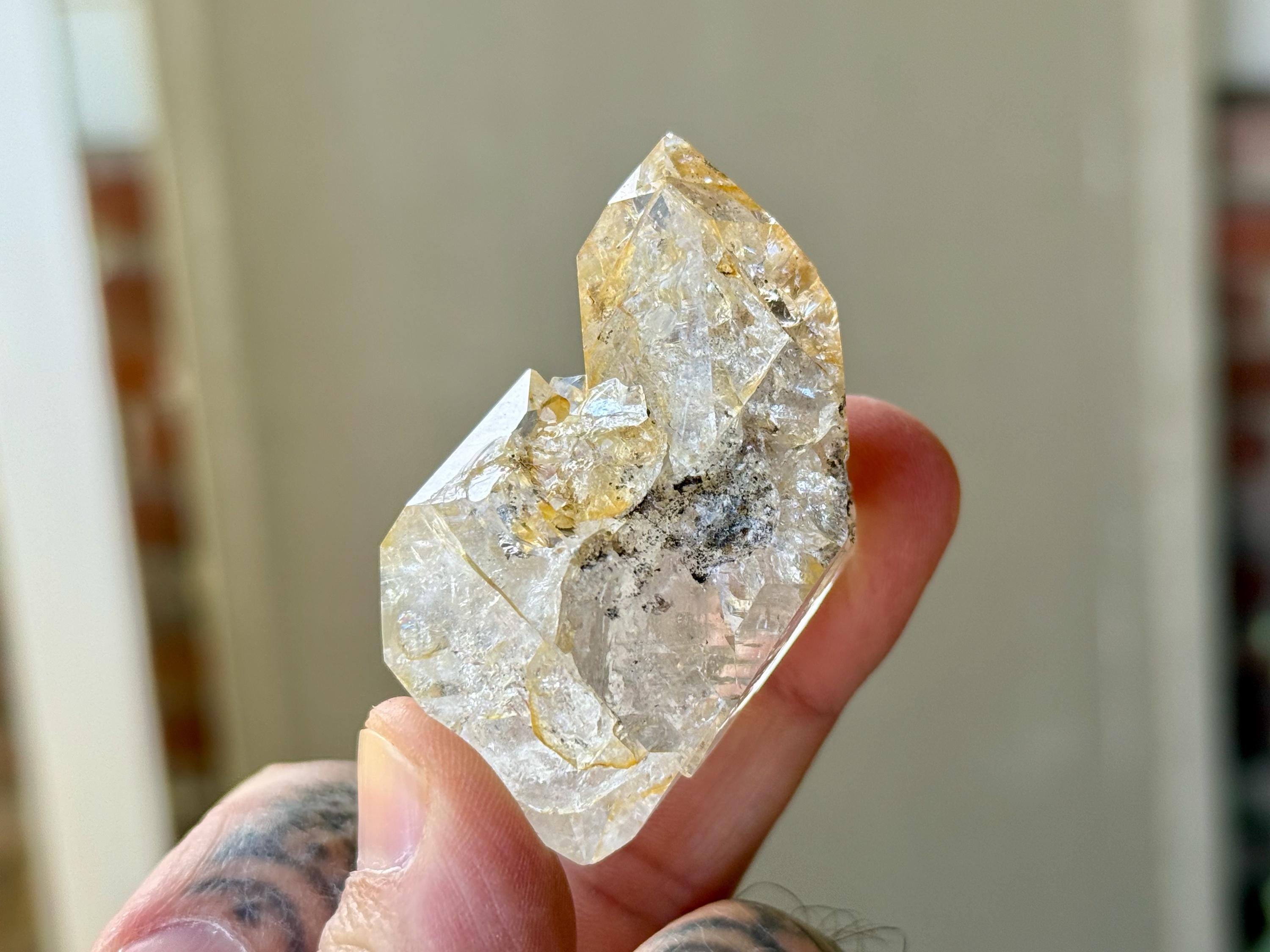 So much sparkle to this bright and vibrant Herkimer Diamond with superb clarity and some mild "golden healer" inclusions within. The clarity allows us to see all the lovely crystalline structures within.