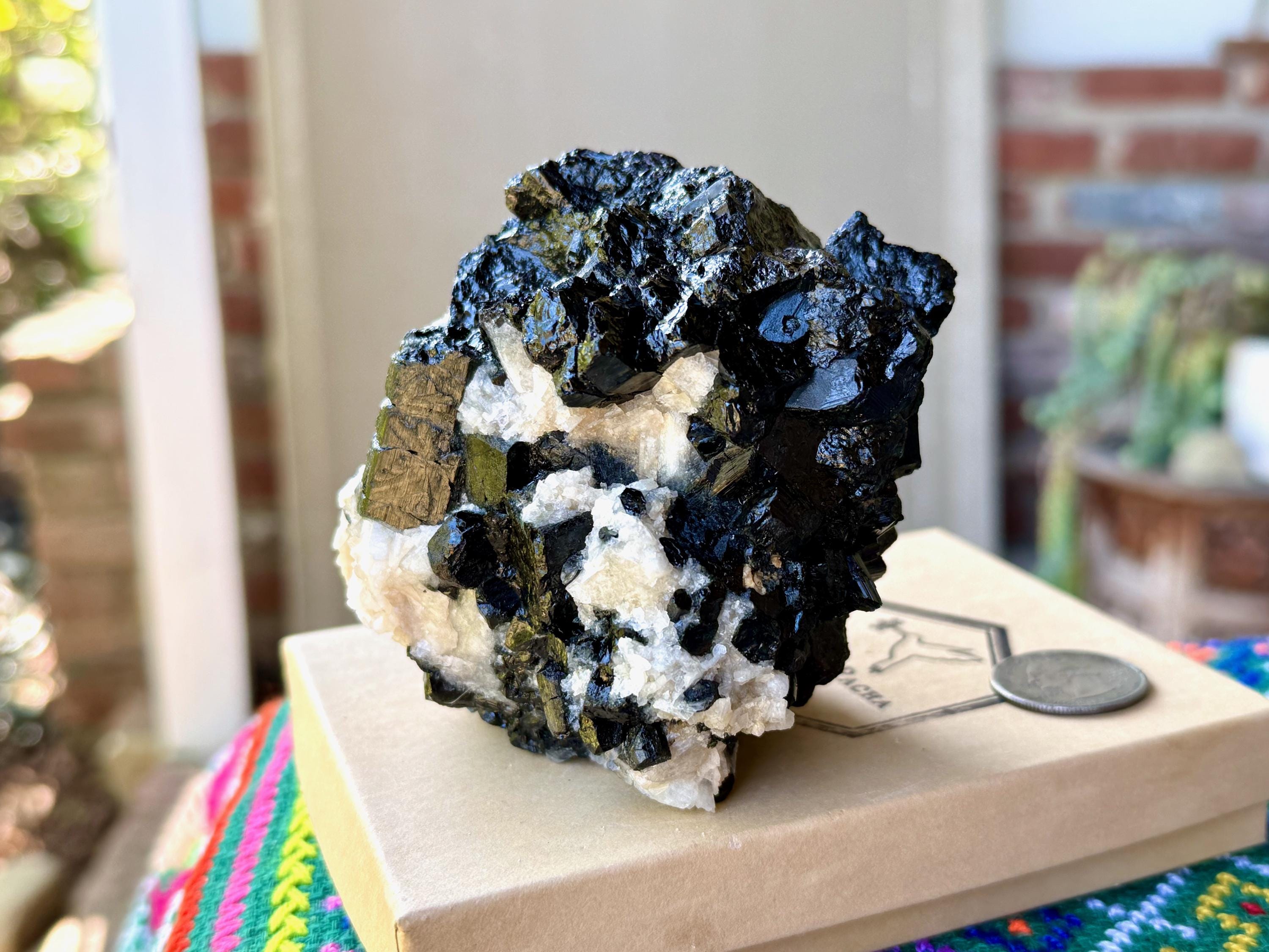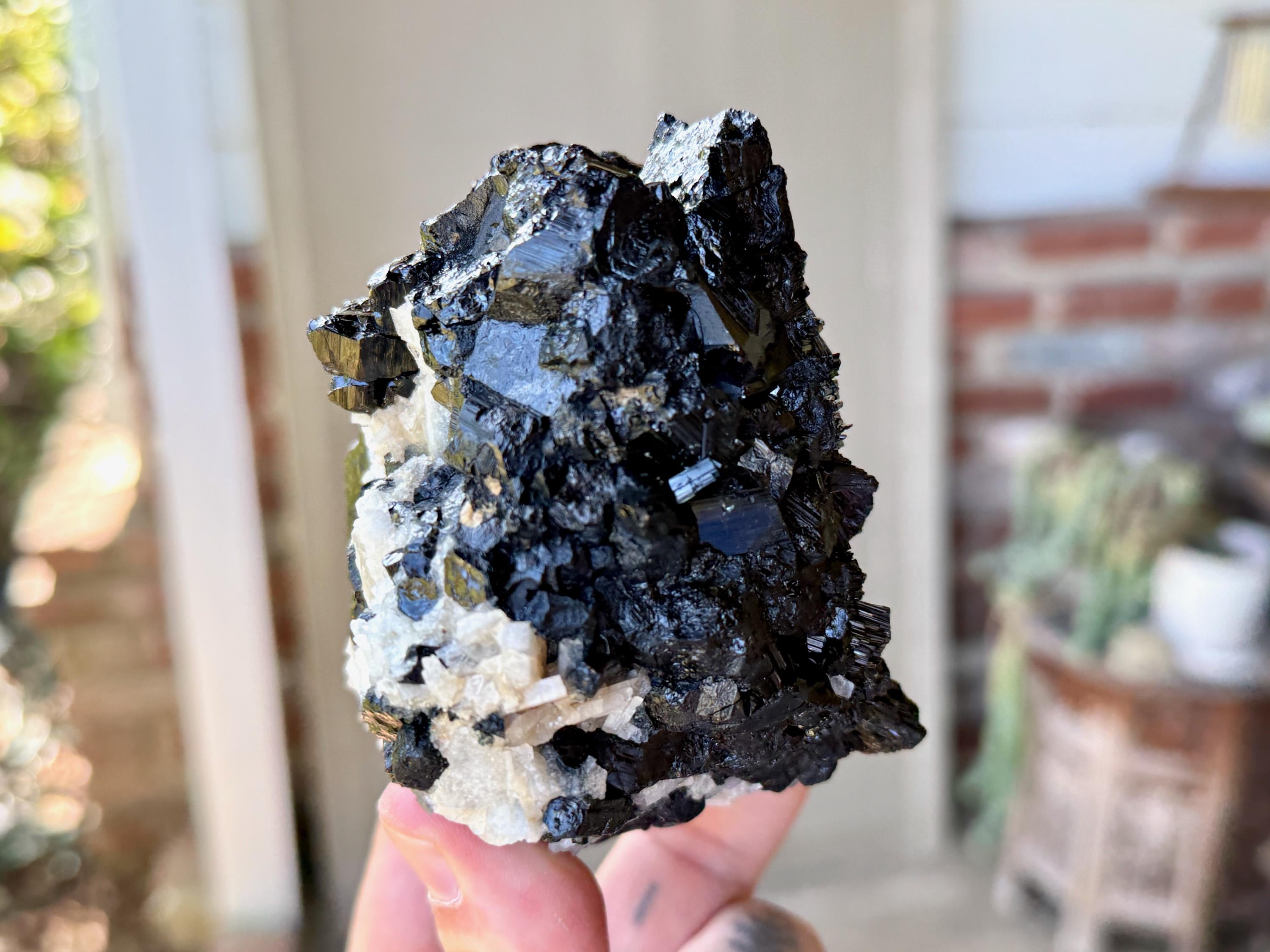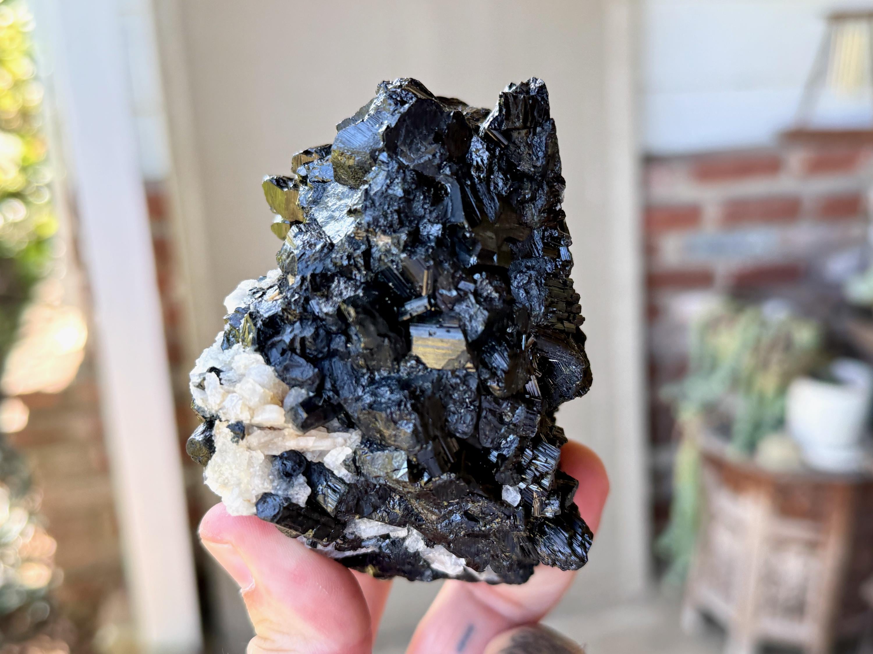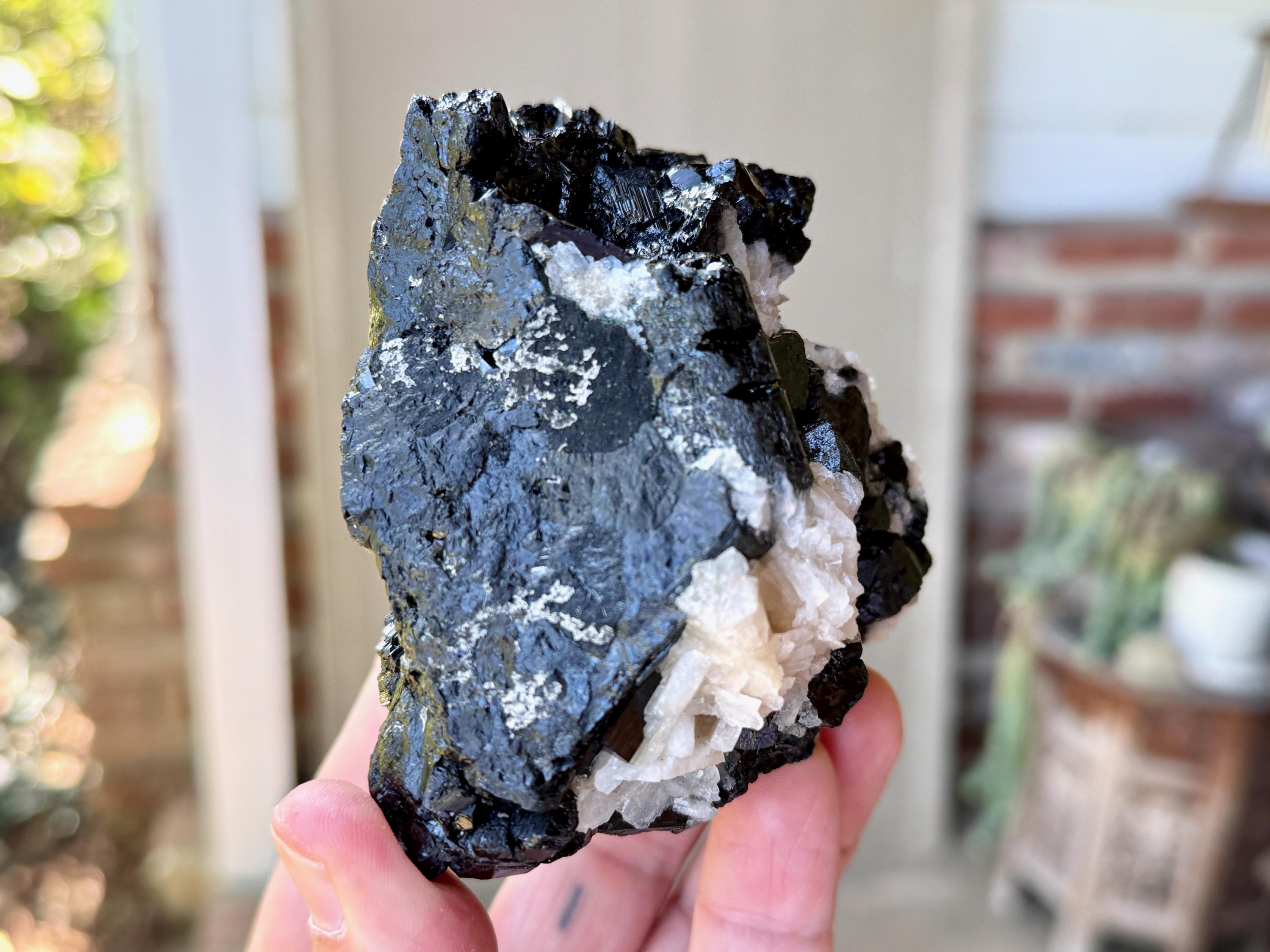 Marbled between the Black Tourmaline are inclusions of white Cleavelandite, giving this piece a wonderful contrast, and also another energetic facet (Cleavelandite is the best crystal for change and times of transition).