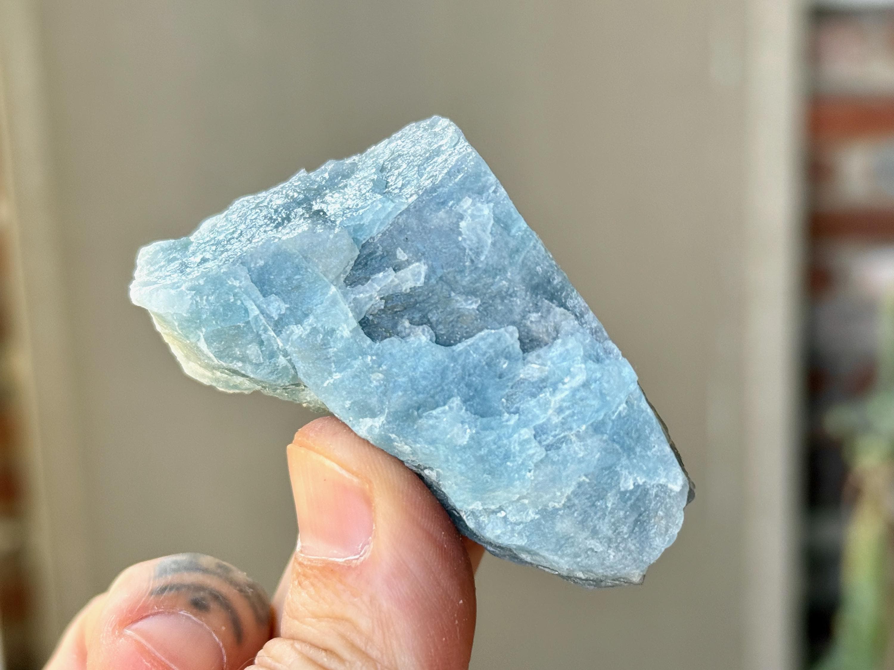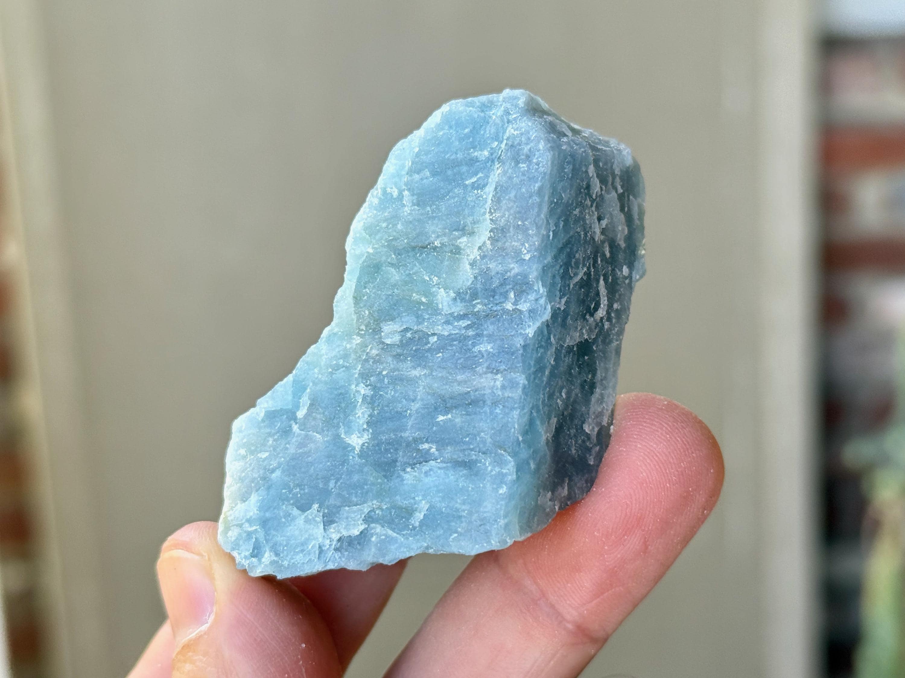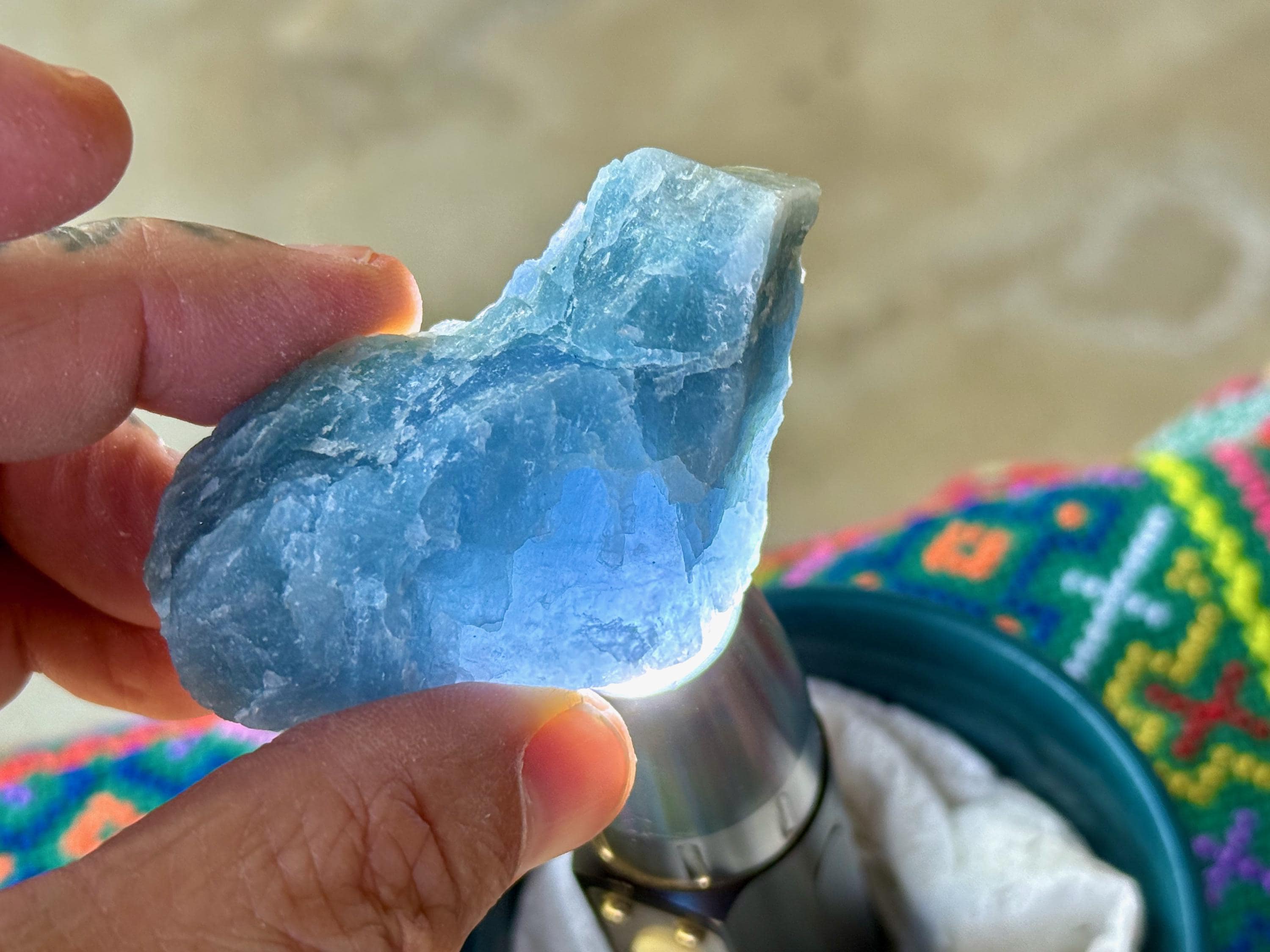 Aquamarine is the blue mineral in the Beryl family and is a powerful crystal for aiding in self-expression and emotional cleansing.