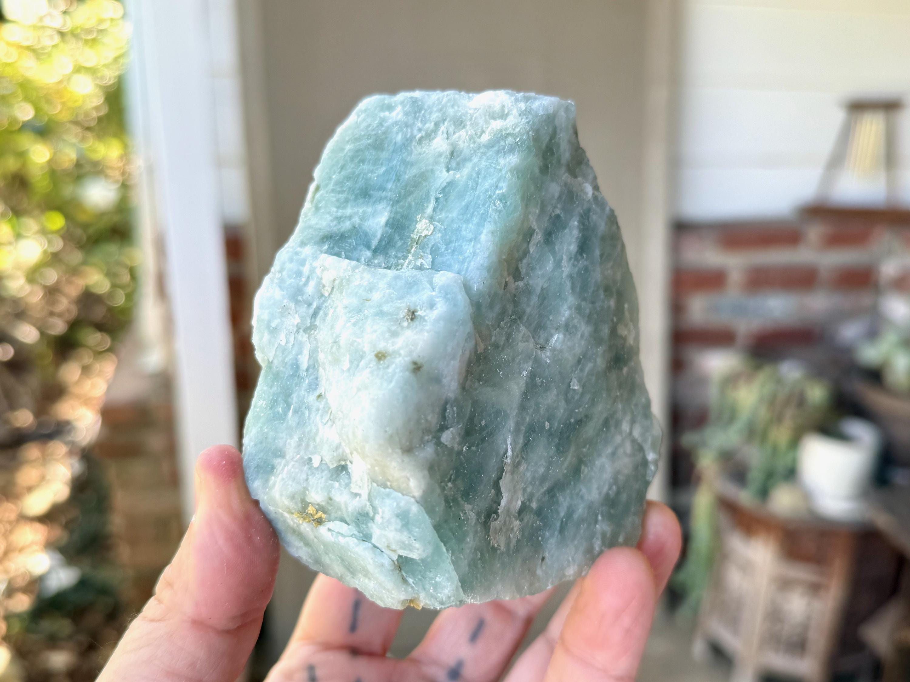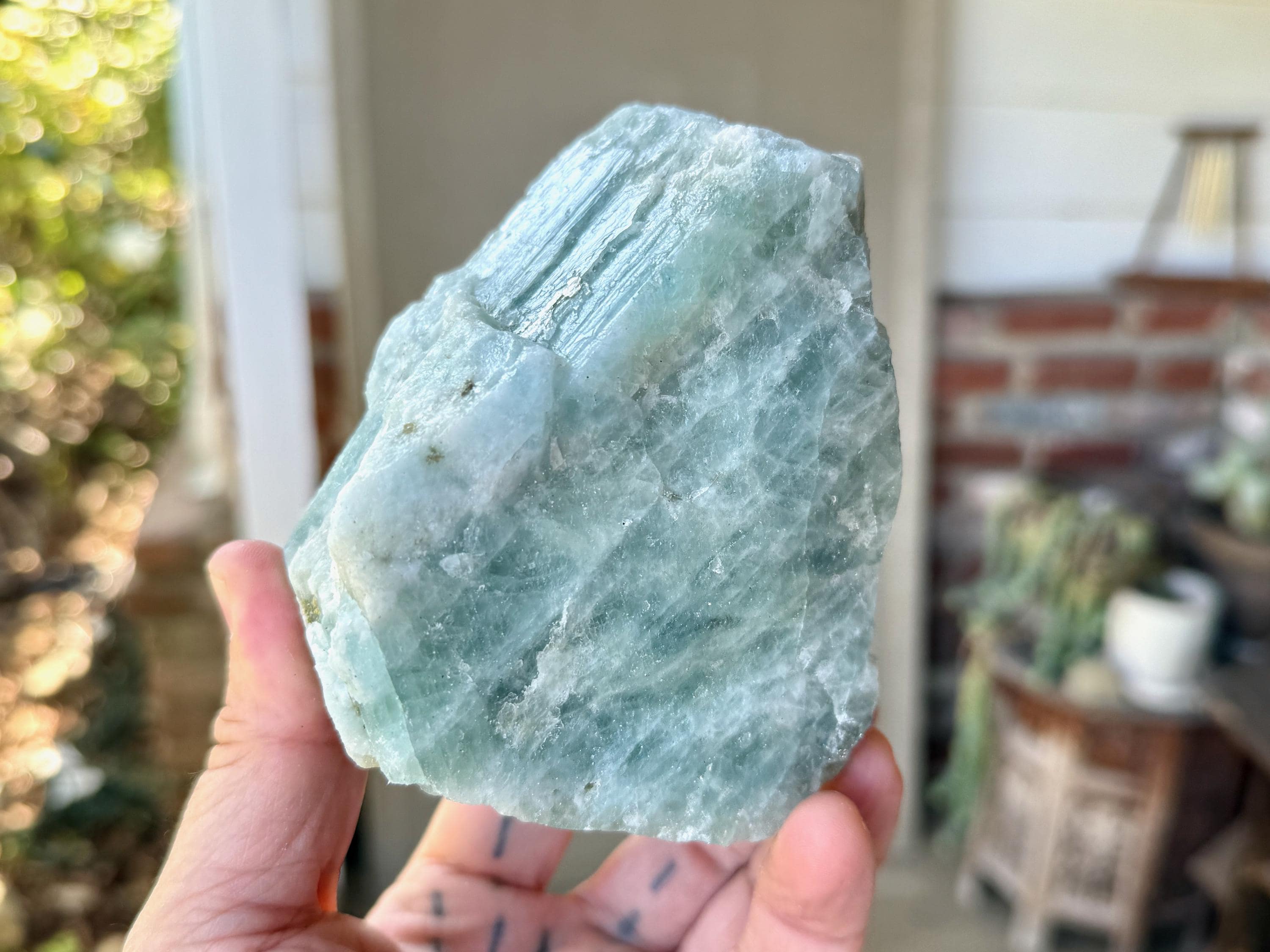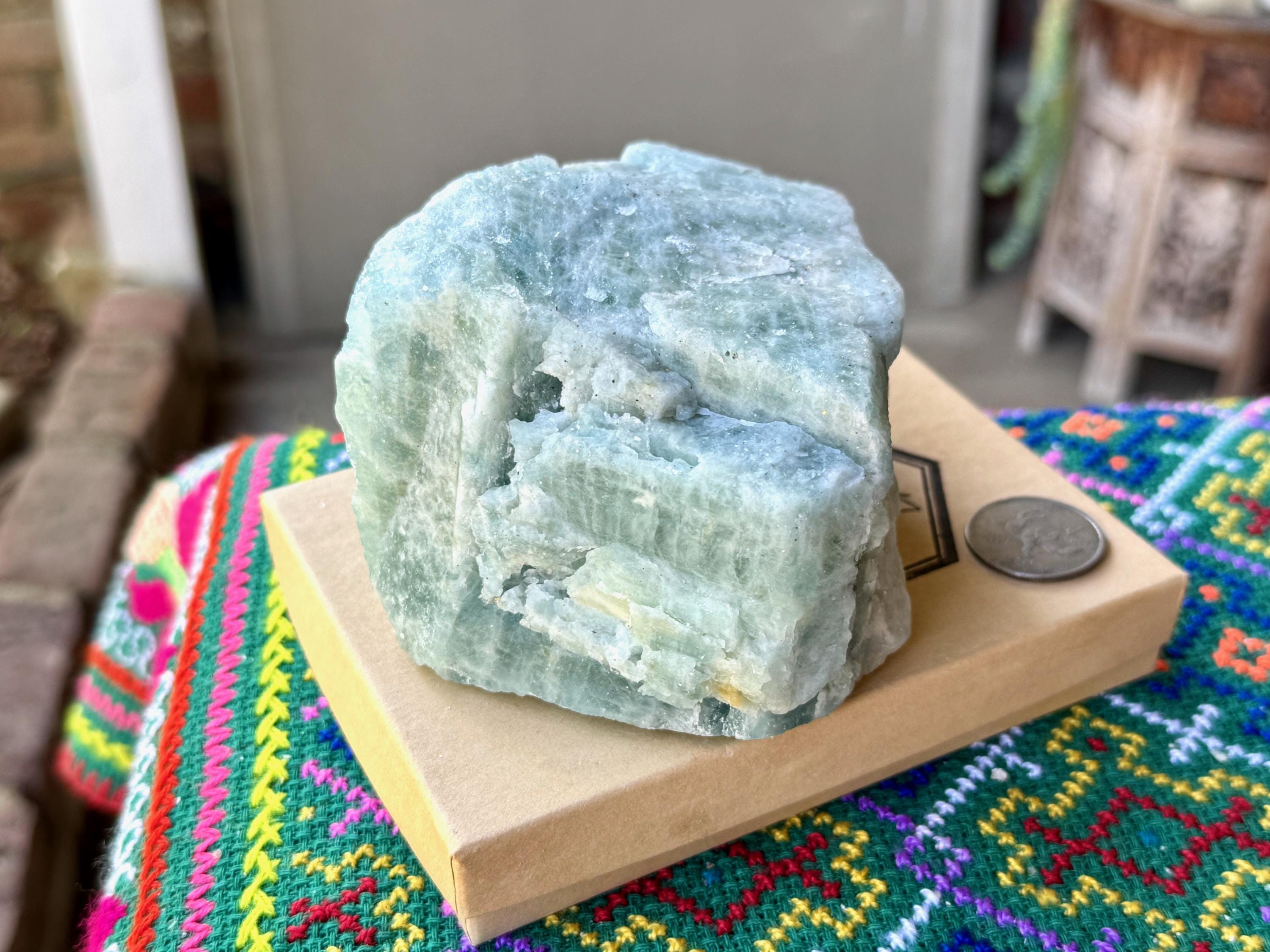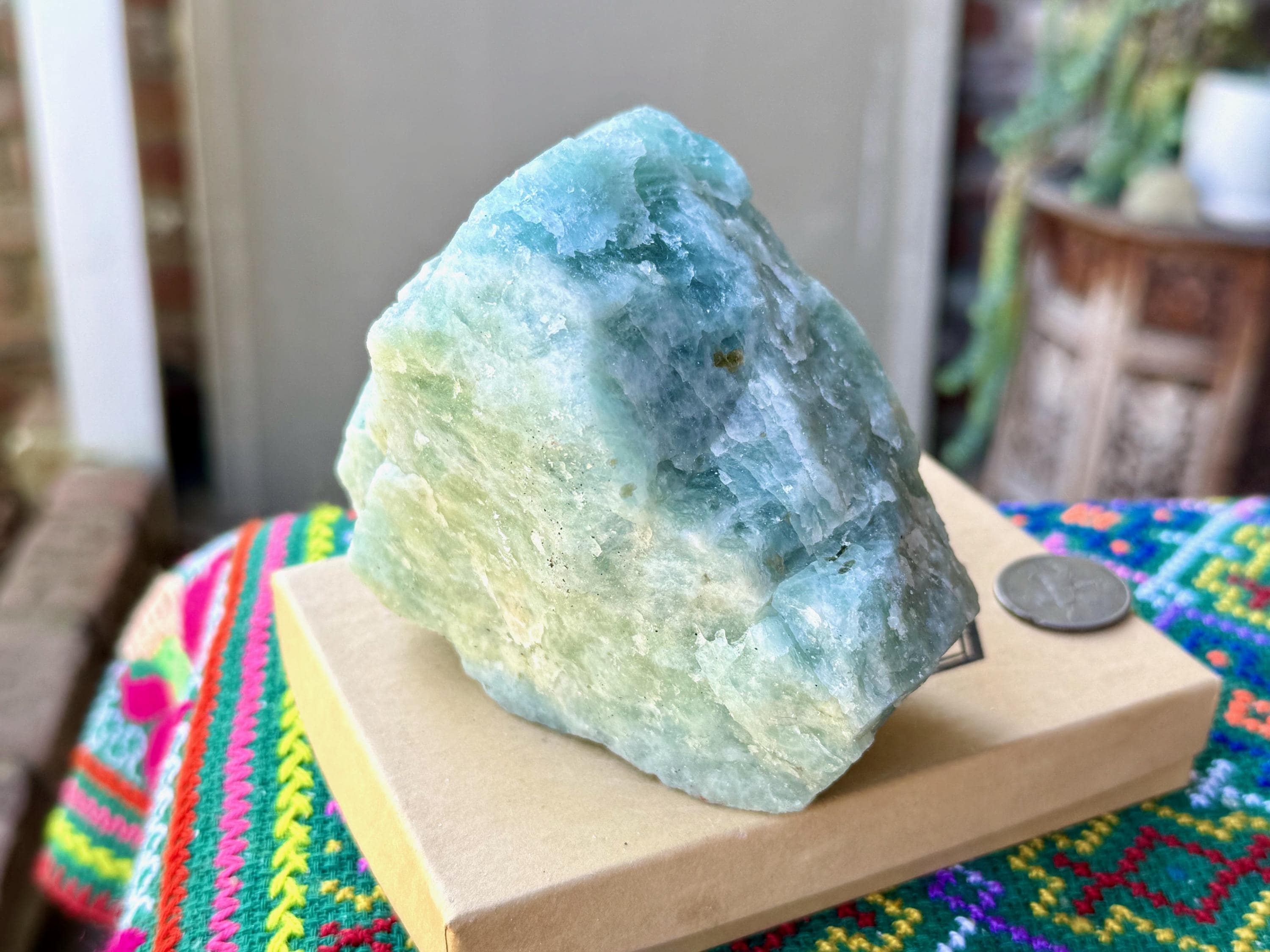This natural Aquamarine crystal comes from a recent find in Bahia, Brazil. Aquamarine is the blue mineral in the Beryl family and is a powerful crystal for aiding in self-expression and emotional cleansing.