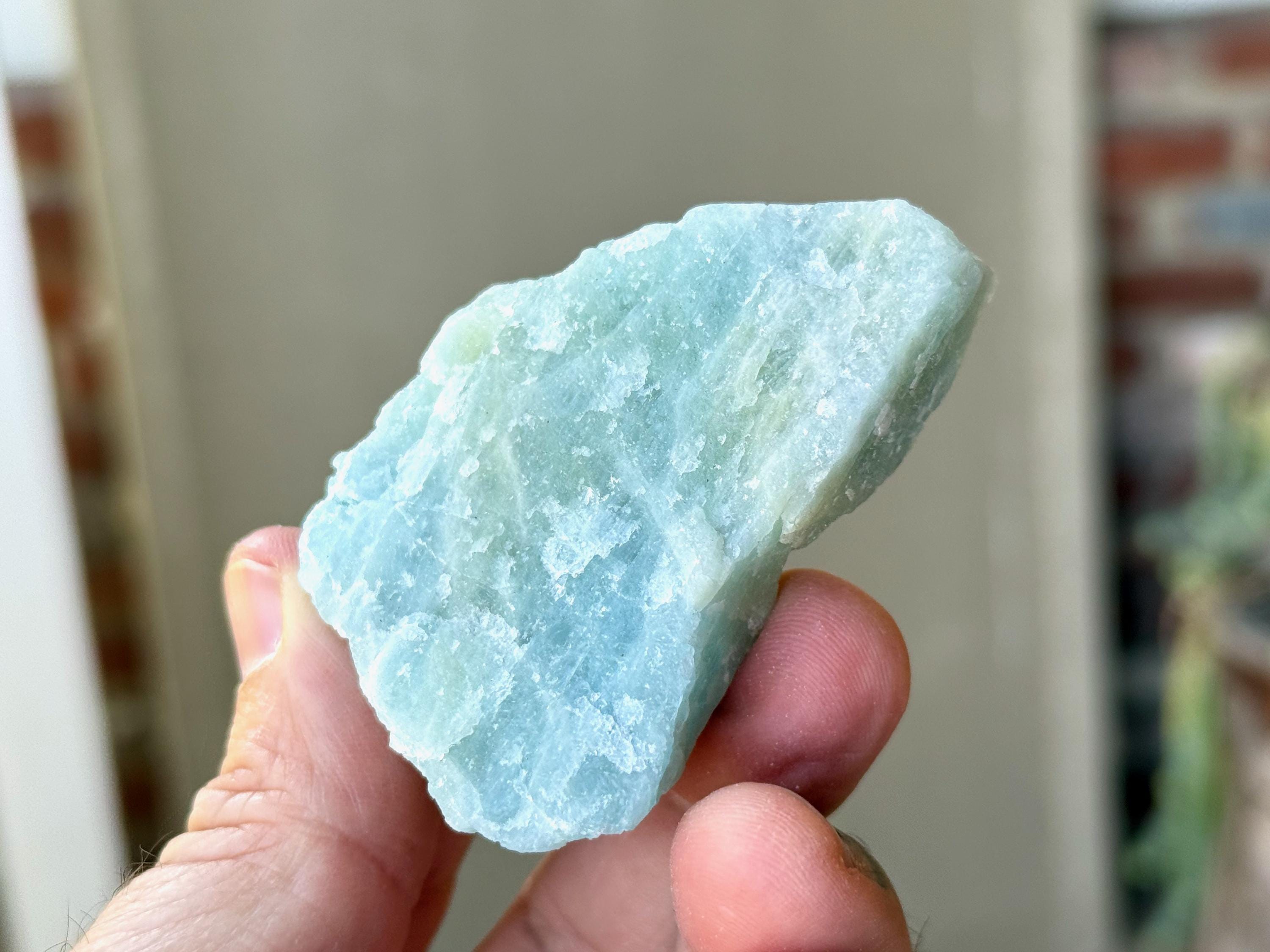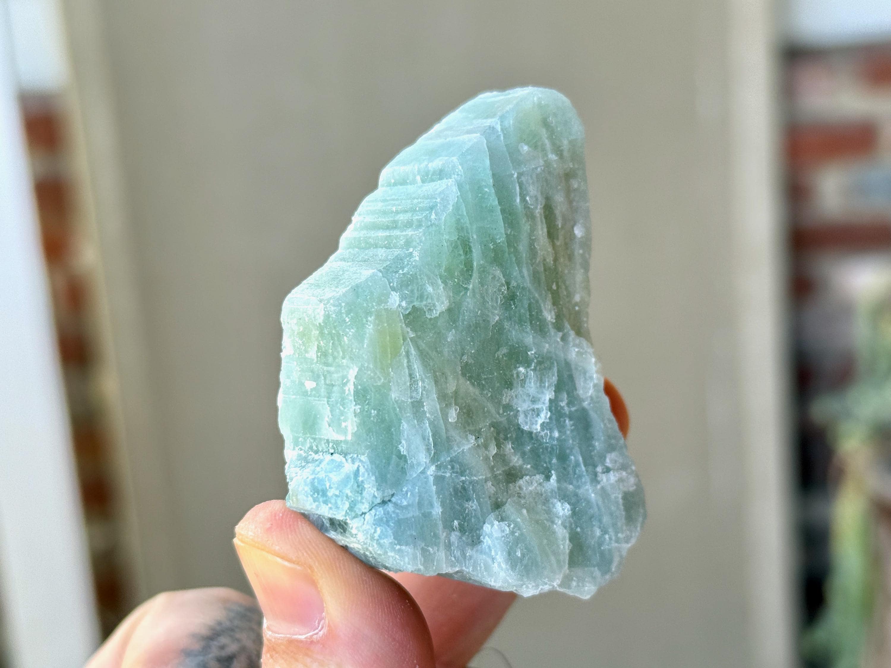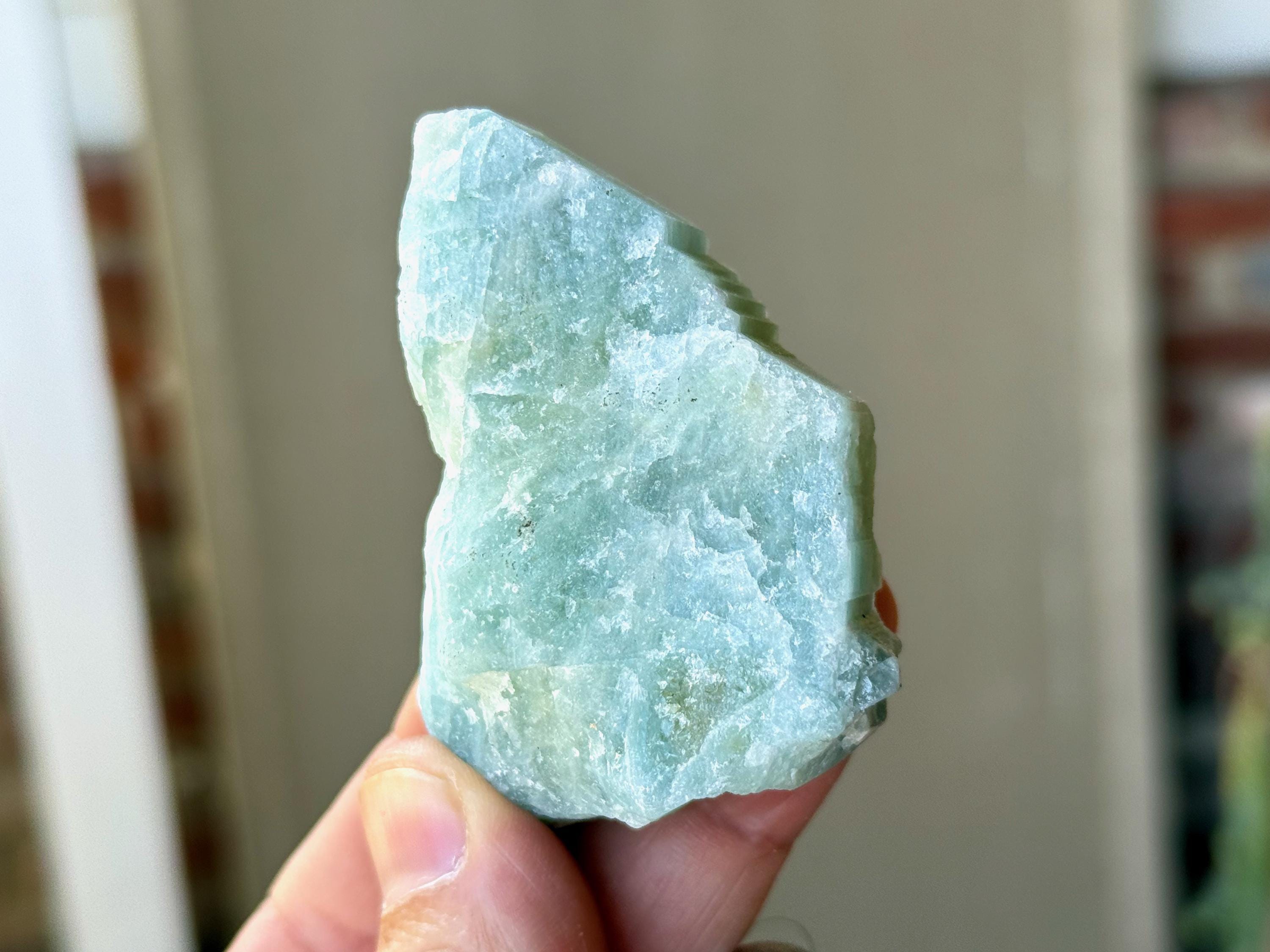 This natural, raw Aquamarine crystal comes from a recent find in Bahia, Brazil.