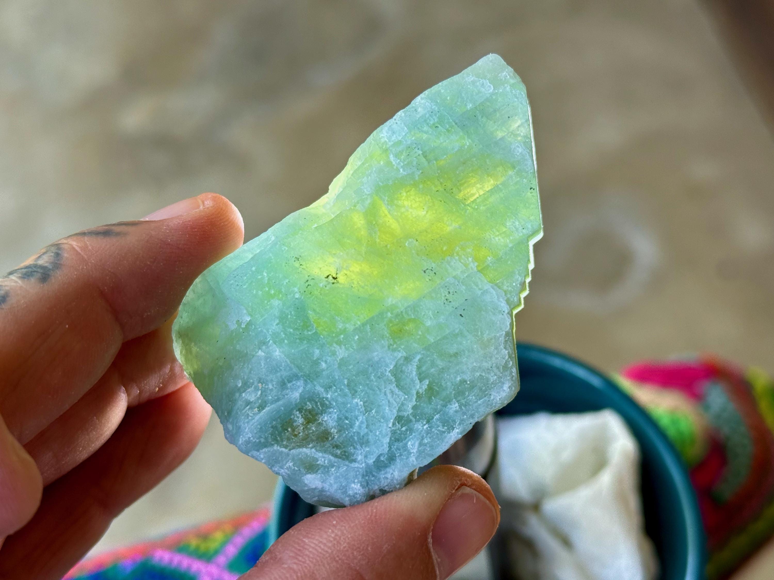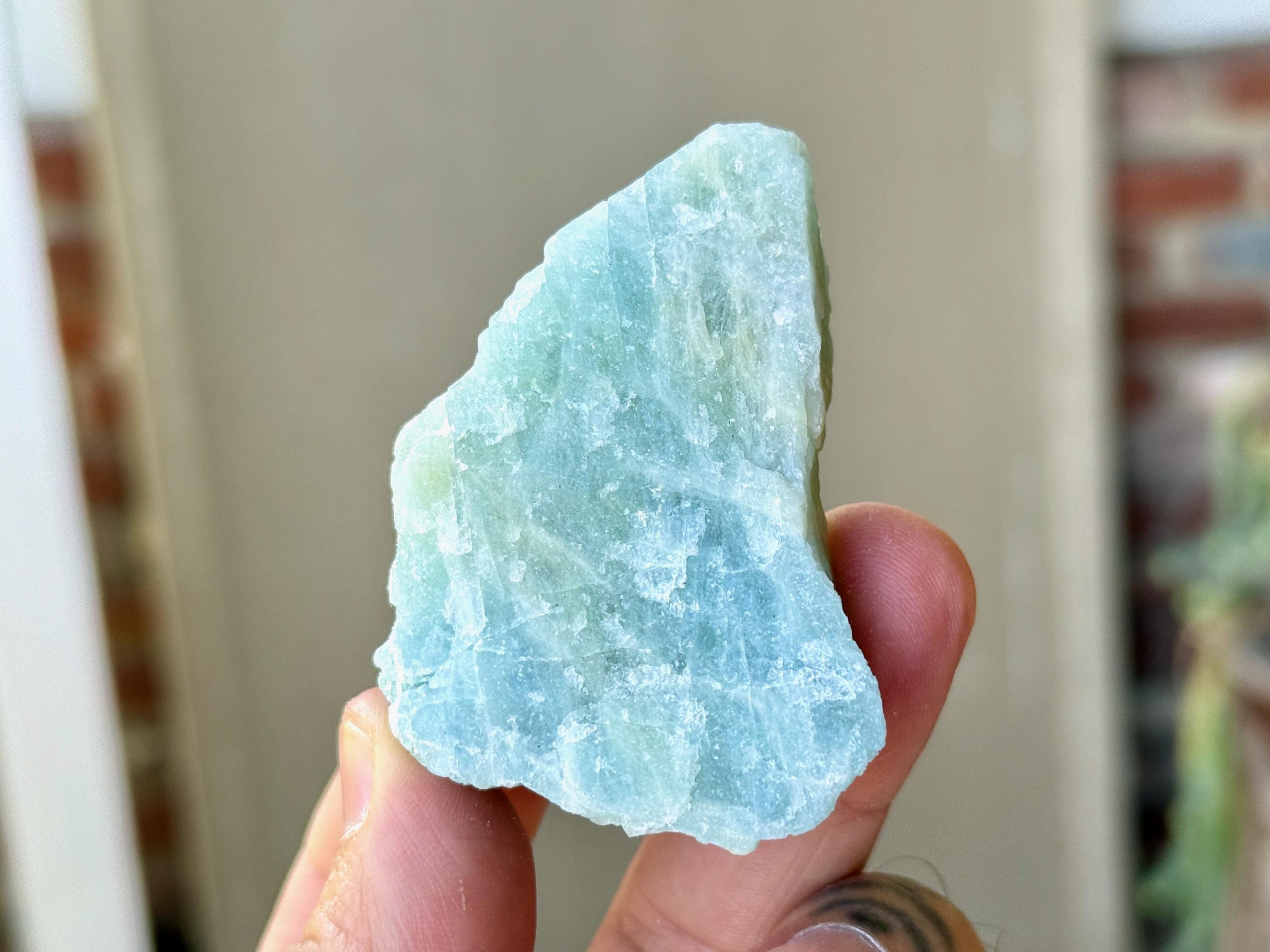Aquamarine is the blue mineral in the Beryl family and is a powerful crystal for aiding in self-expression and emotional cleansing.