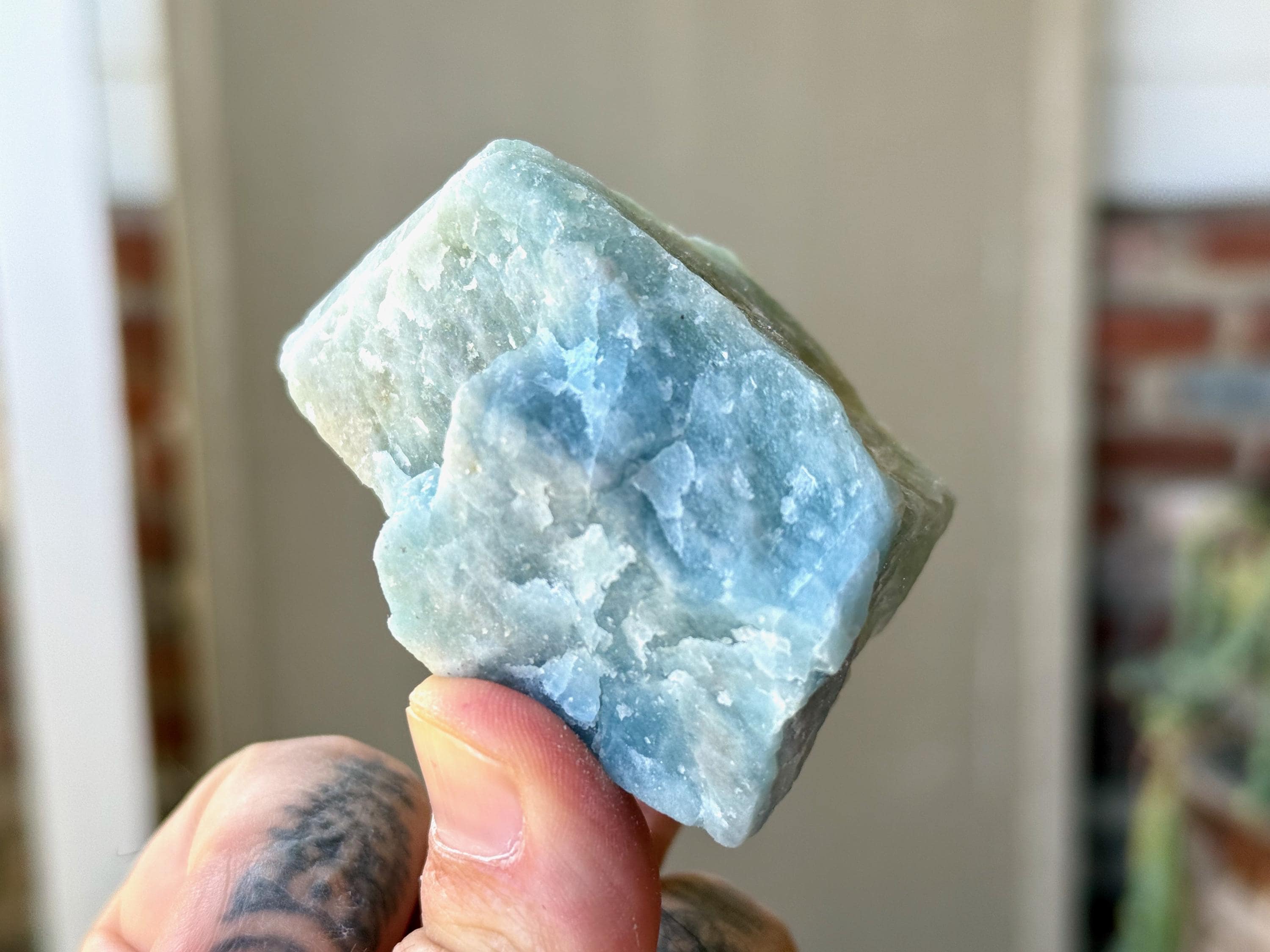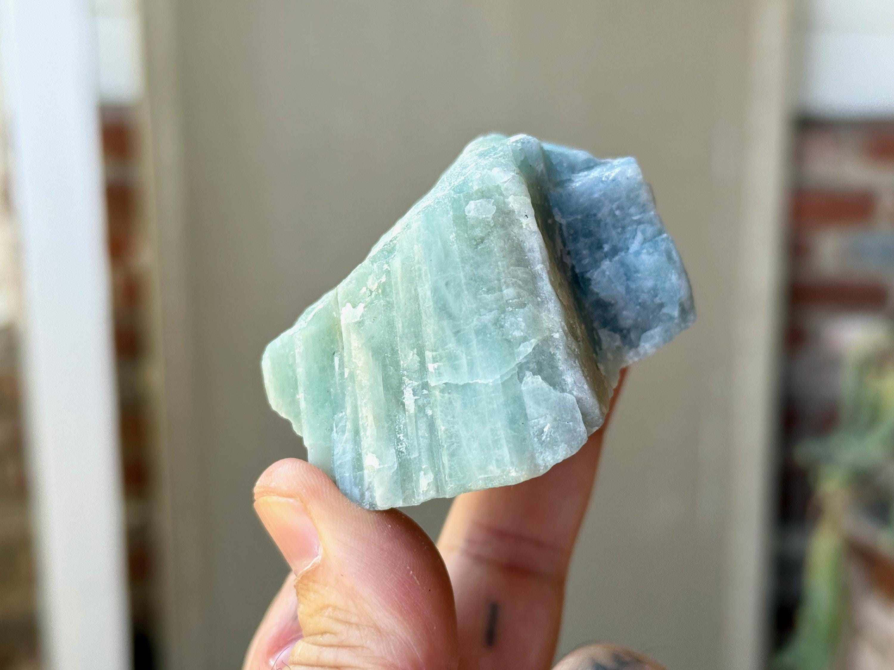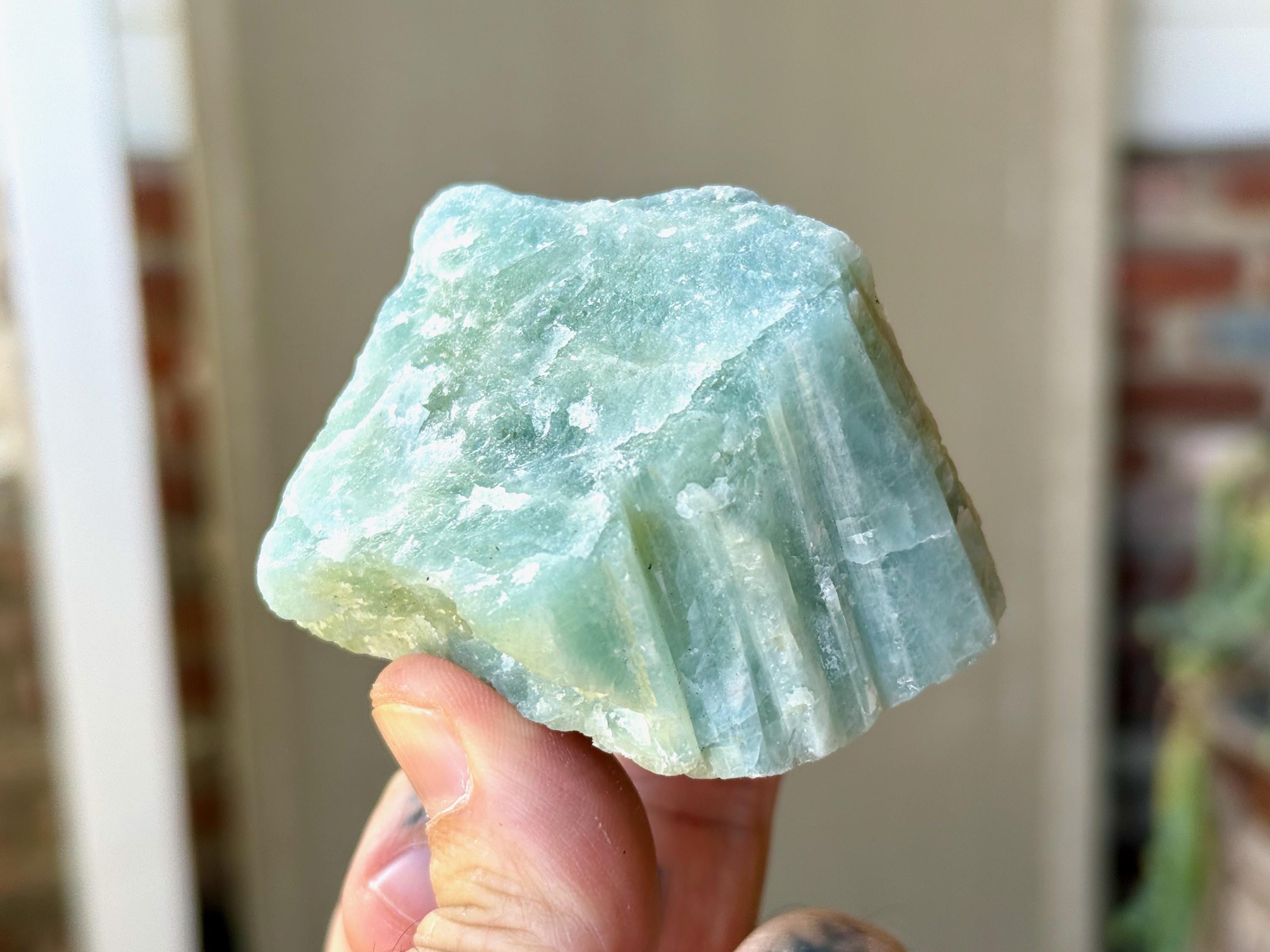 Aquamarine is the blue mineral in the Beryl family and is a powerful crystal for aiding in self-expression and emotional cleansing.