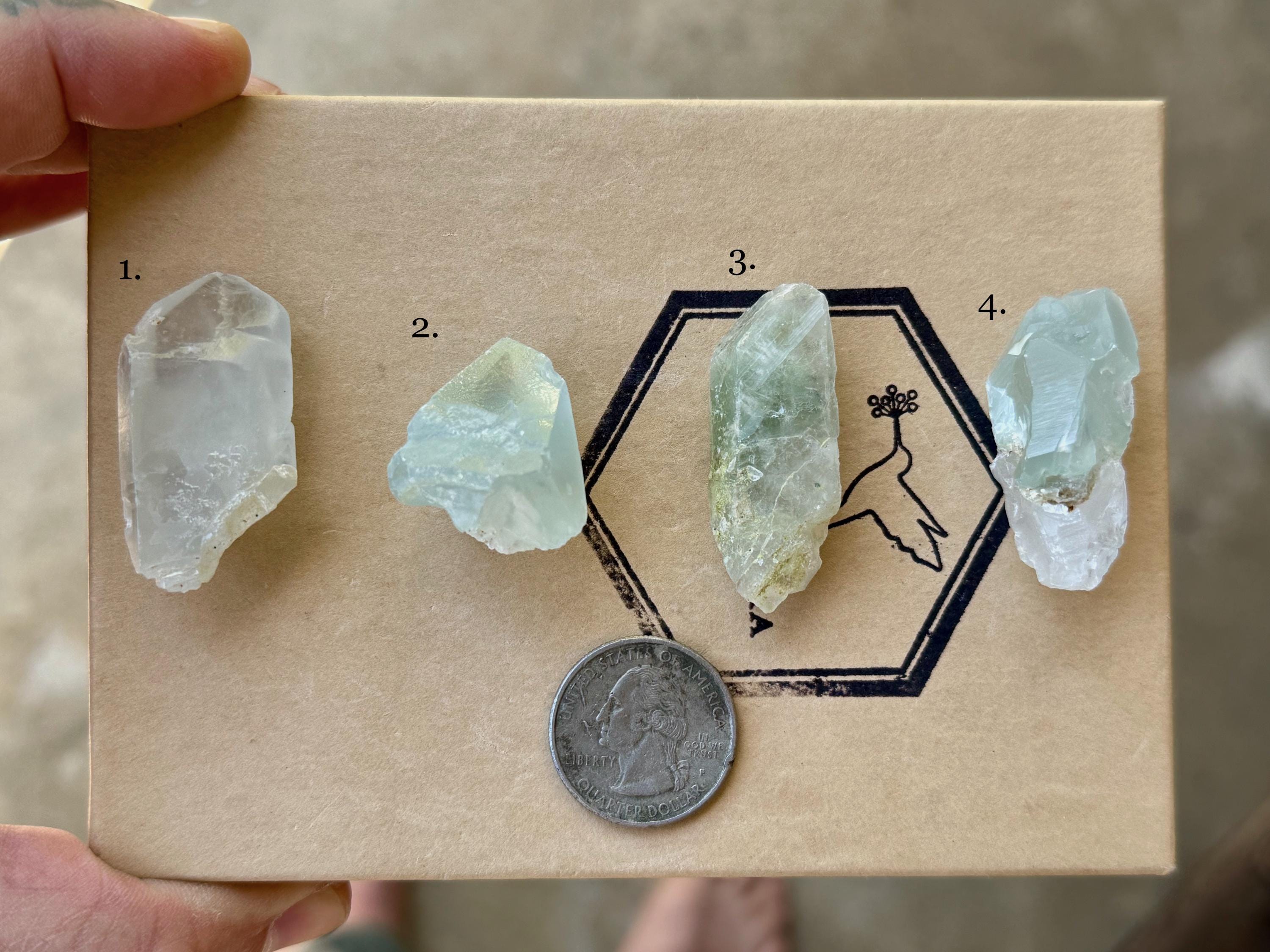 Simply select the crystal(s) of your preference from the dropdown menu (#1-4). The crystals are numbered in Photos 1-2, as well as in each subsequent photo. Each photo in the dropdown correlates to the actual crystal purchased.