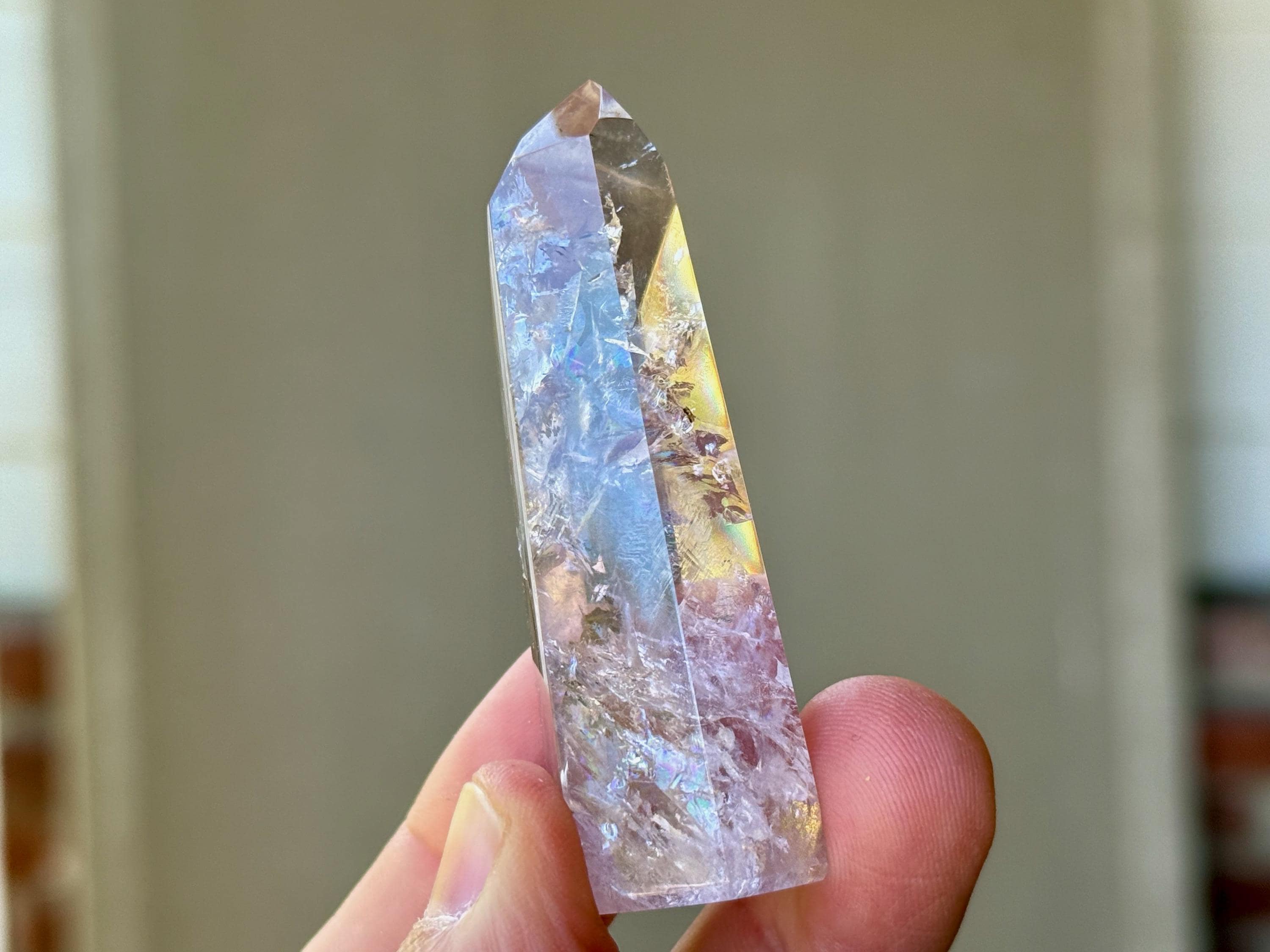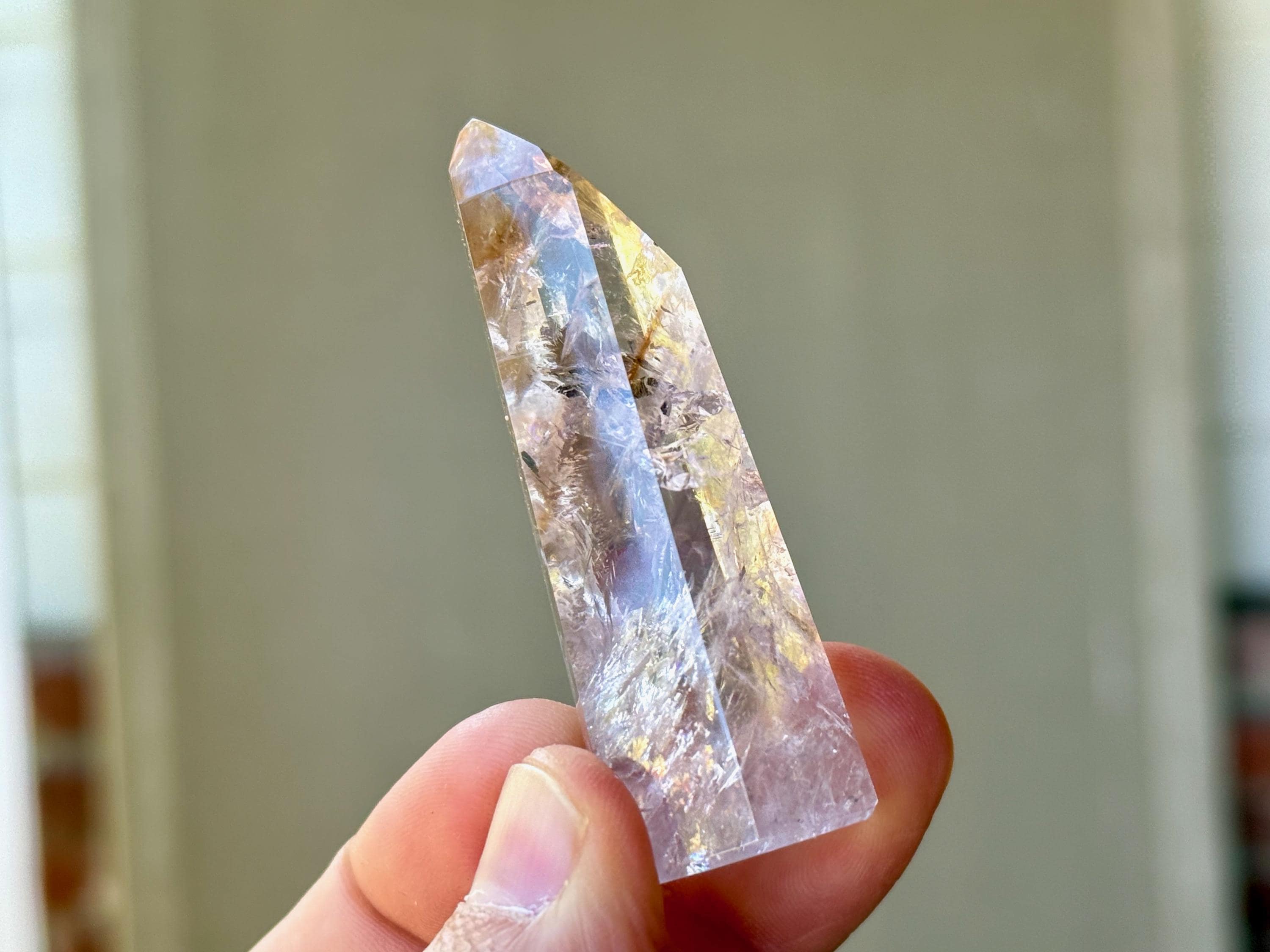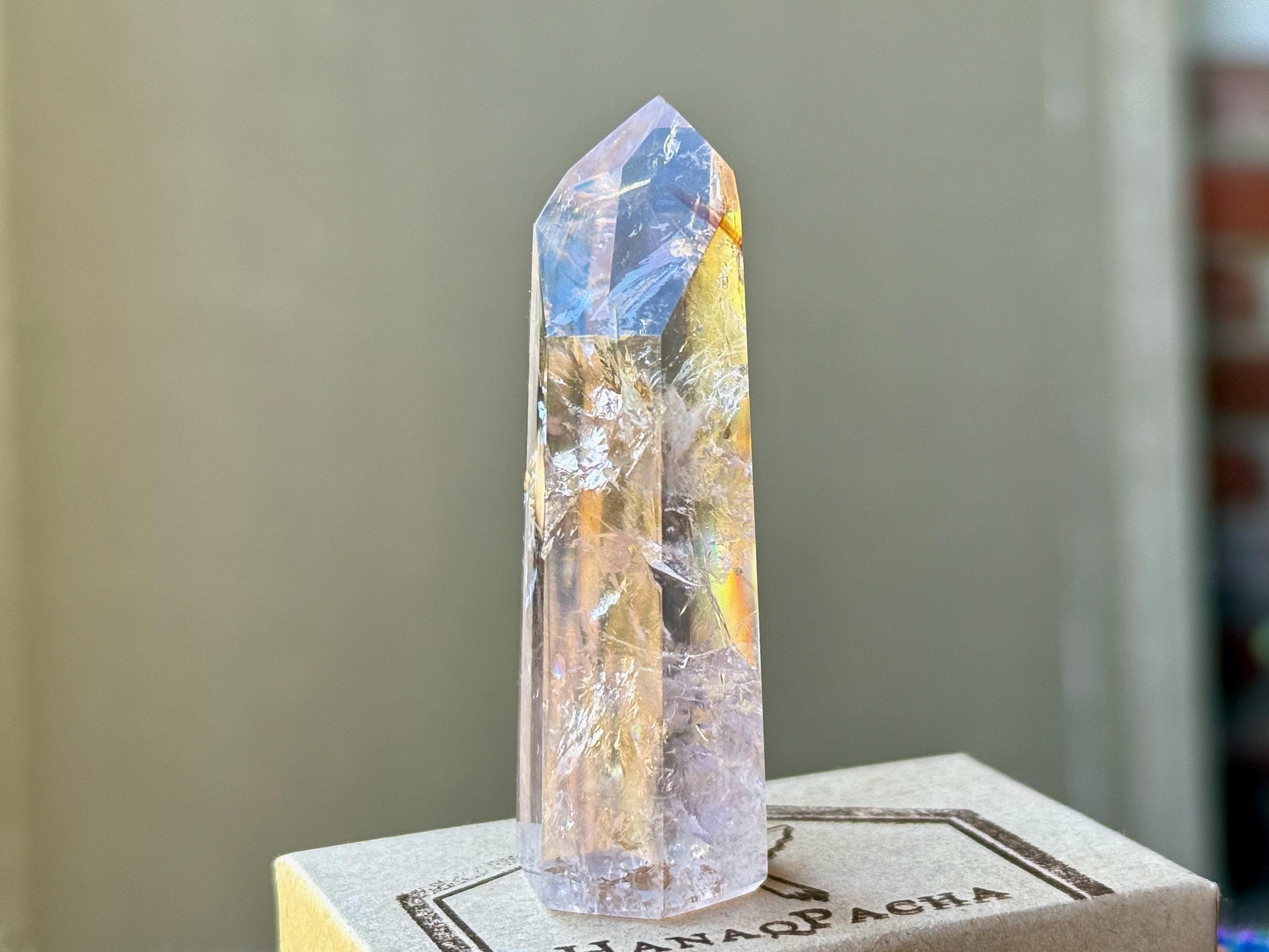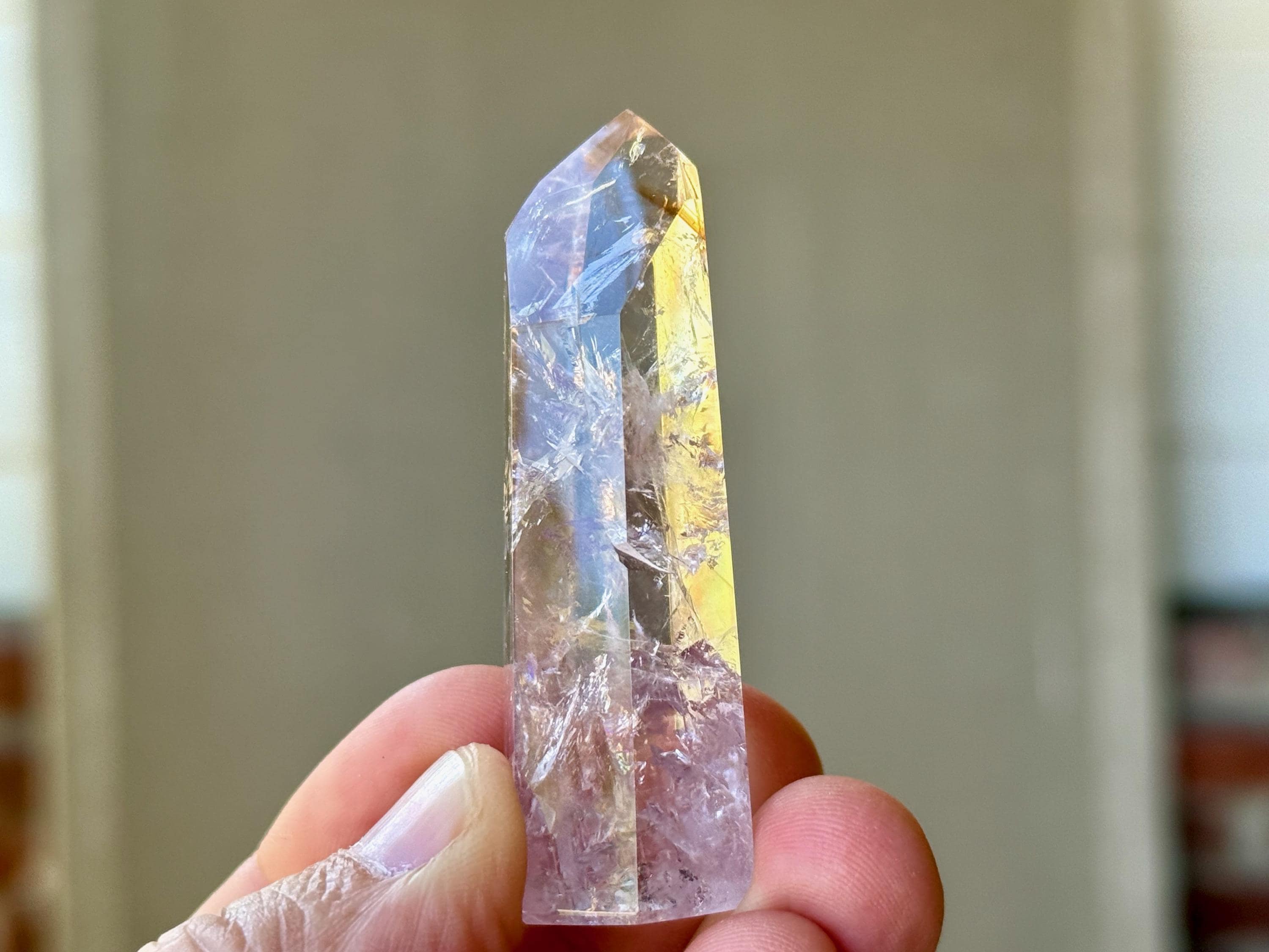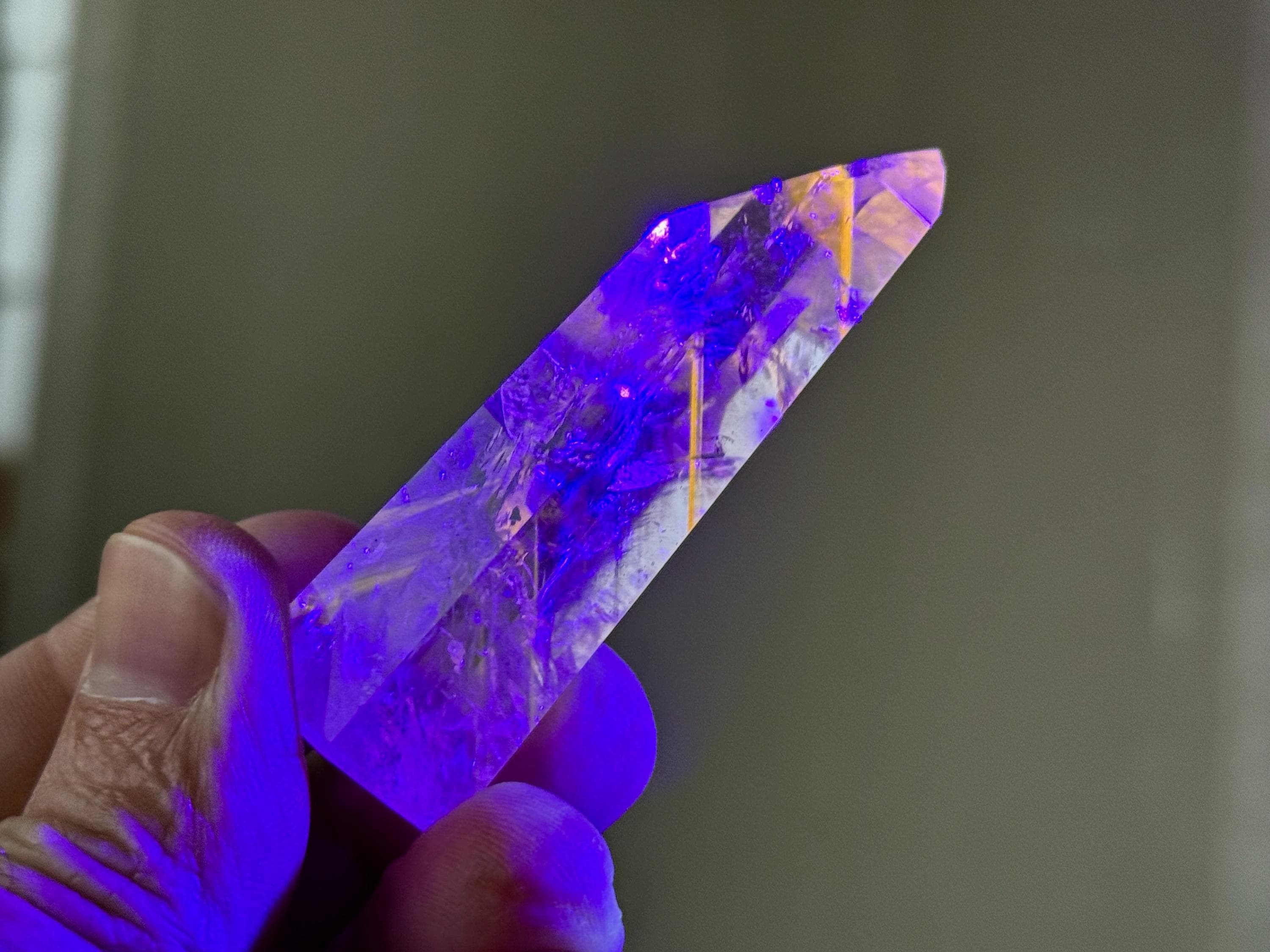 **Please note, the inclusions in this crystal are all natural/untreated, but the exterior is polished and the base is cut to allow for self-standing. A UV light is necessary to see the phantoms glow, and they can be found affordably at Amazon or any other online outlet. Also, please note that the dark purple hues in the UV-lit photos are a result of the UV light itself and not the color of the crystal. The natural color is shown in the natural-light photos included in this listing.