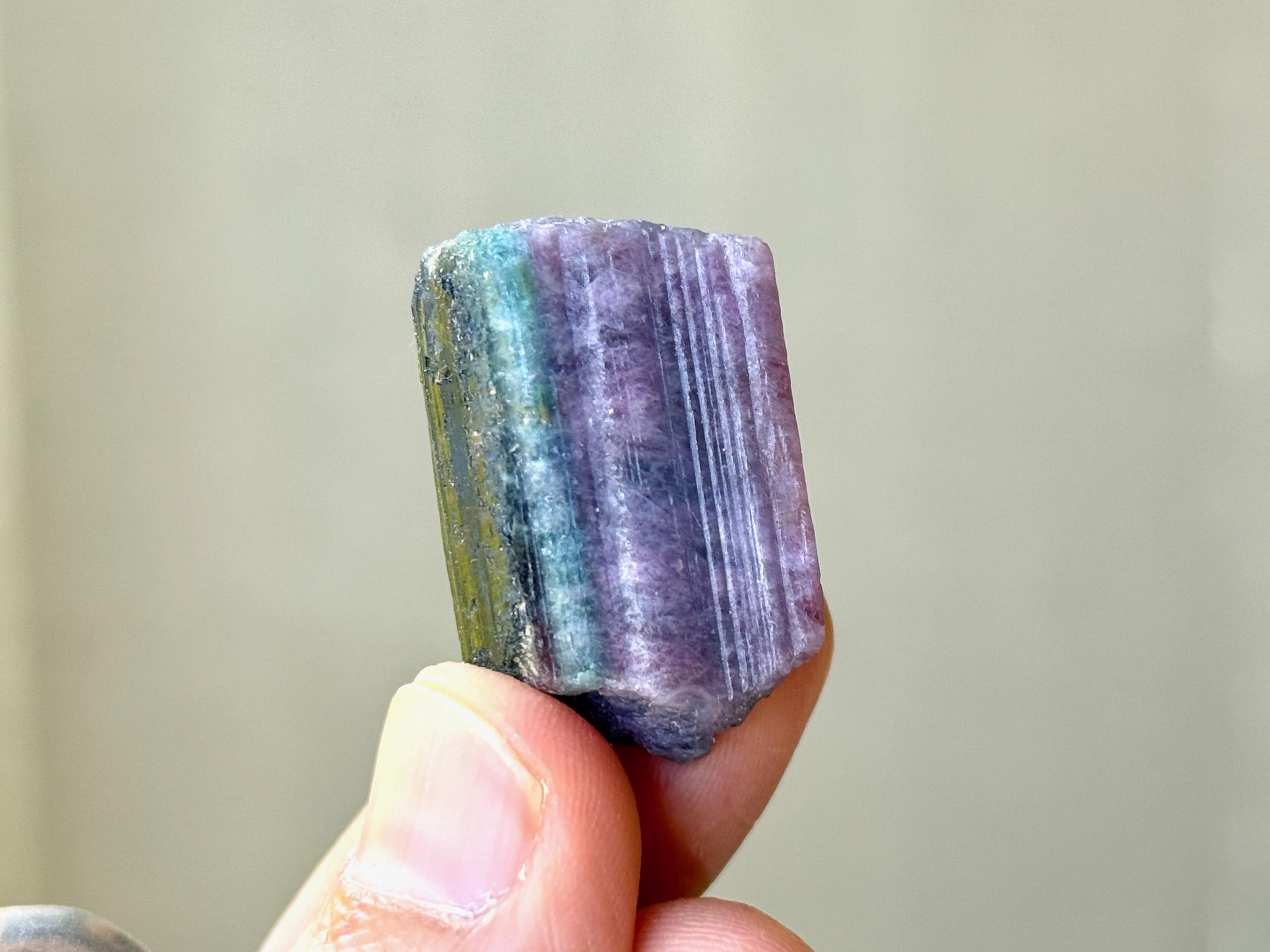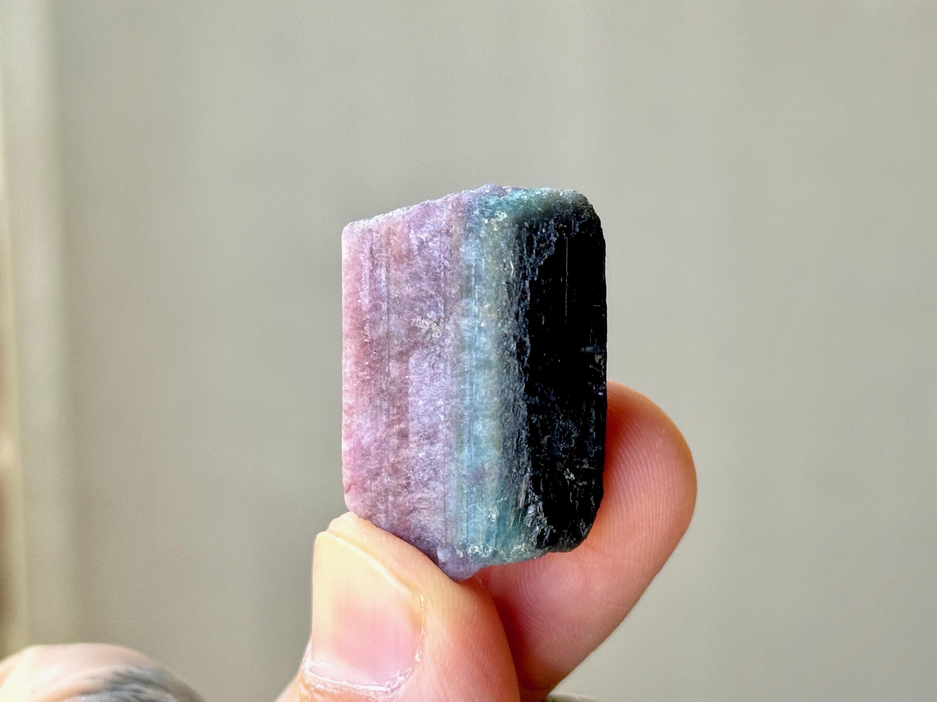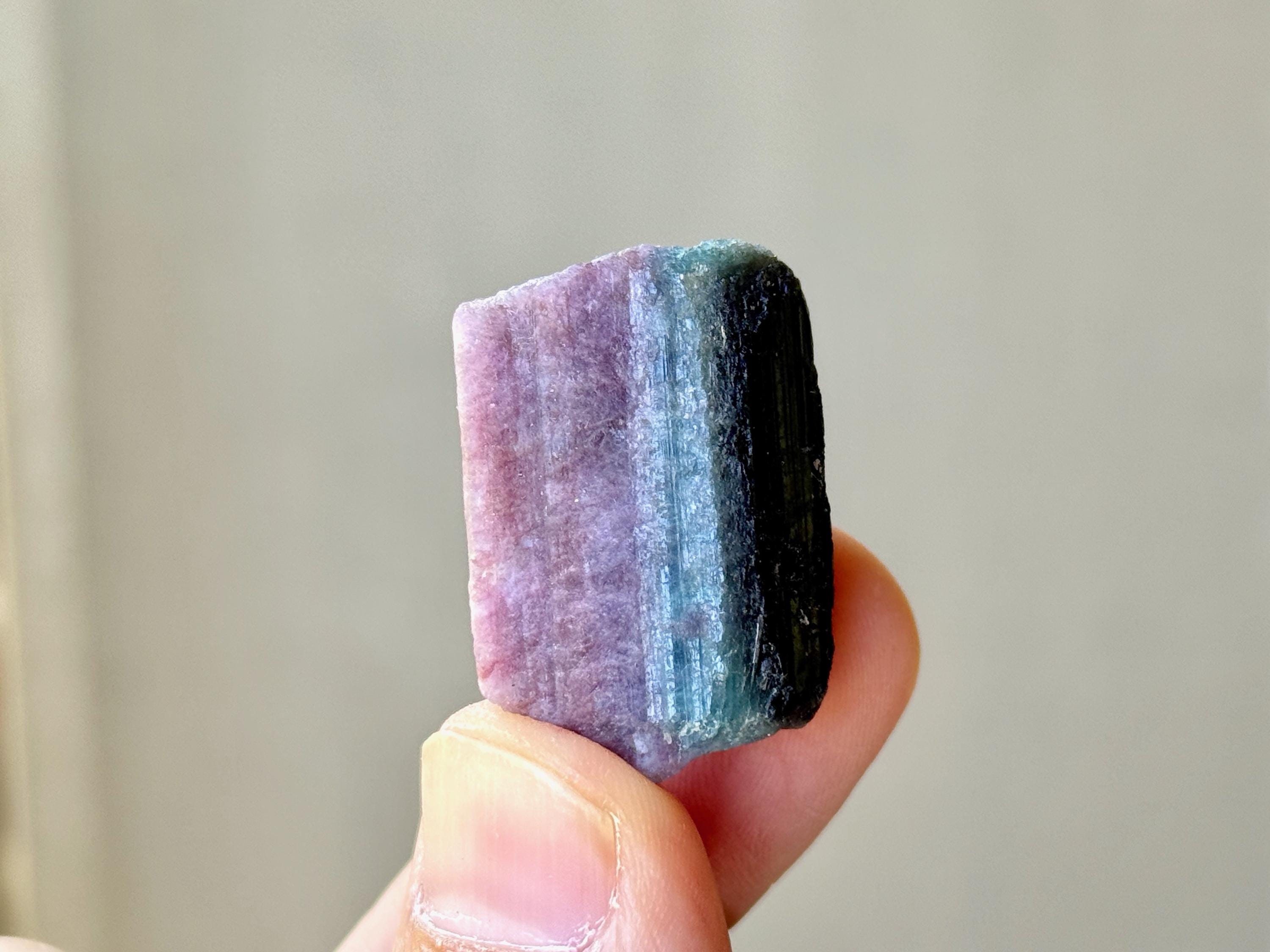 Purple Tourmaline is among the rarest color of Tourmaline, and carries a powerful energy that correlates to the Third Eye and Crown Chakras, working to enhance psychic abilities and facilitate connection with angelic beings. However it is also known to provide a gentle, but powerful, centering energy, as well as help to heal wounds of the heart.
