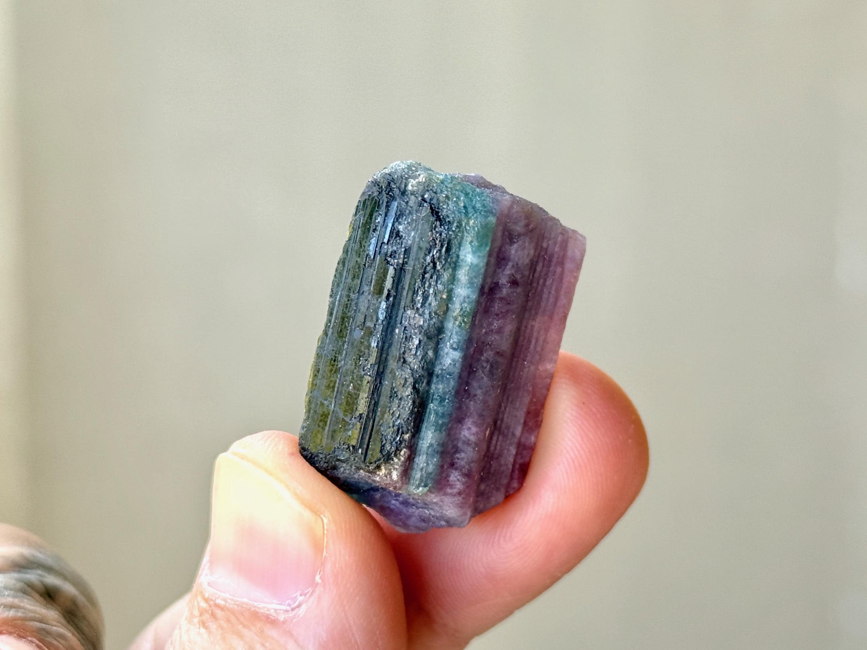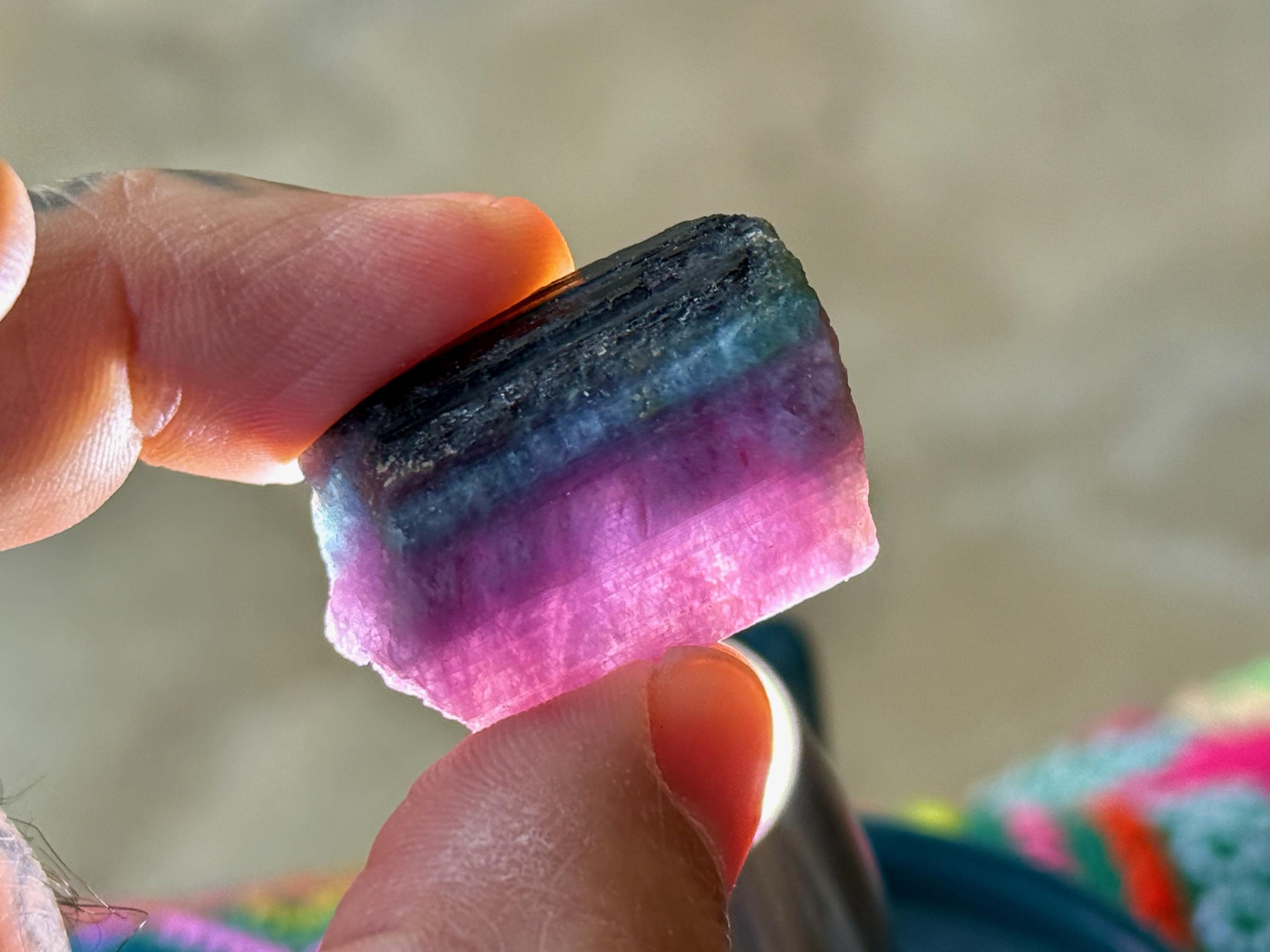 Vibrant contrasting colors to this beautifully formed Paraiba Tourmaline. These pastel hues meld together like a sunset, so beautiful!