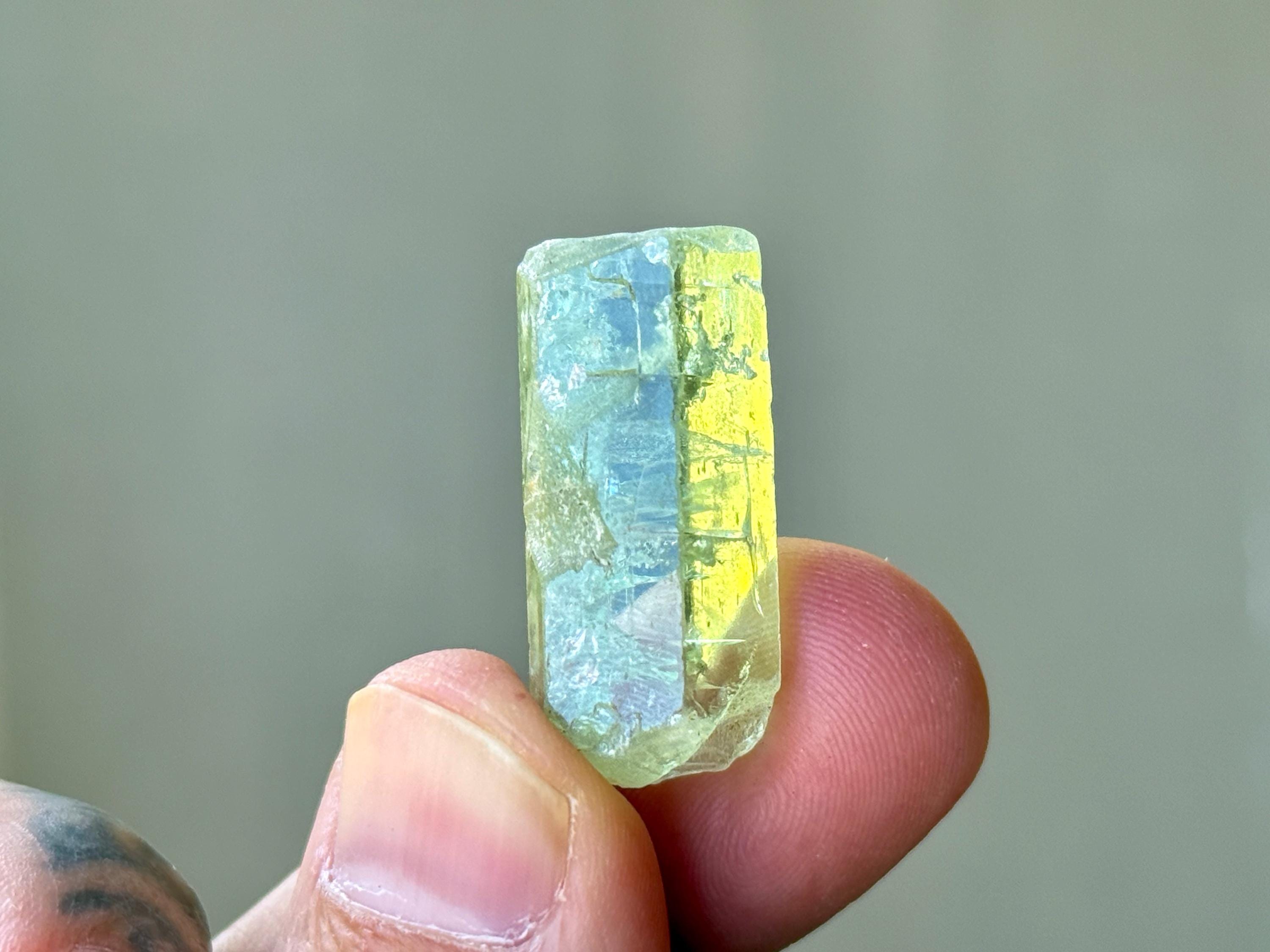 Aquador crystals are hybrids of golden beryl (Heliodor) and blue beryl (Aquamarine). Metaphysically, they possess both the properties of Heliodor and Aquamarine (see end of this listing).