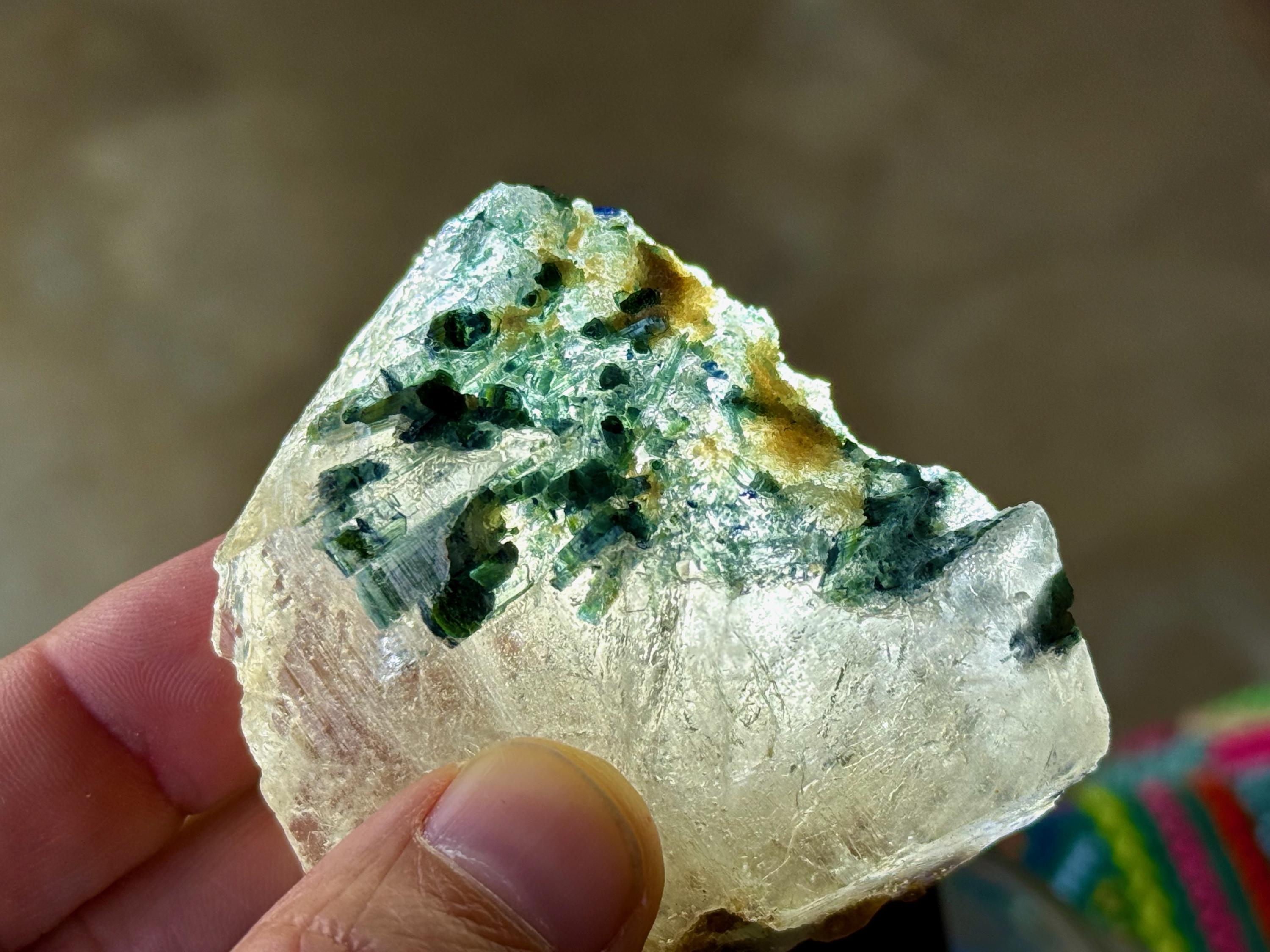 This natural Blue-Green Tourmaline Quartz comes from a recent find in Coronel Murta, Minas Gerais, Brazil.