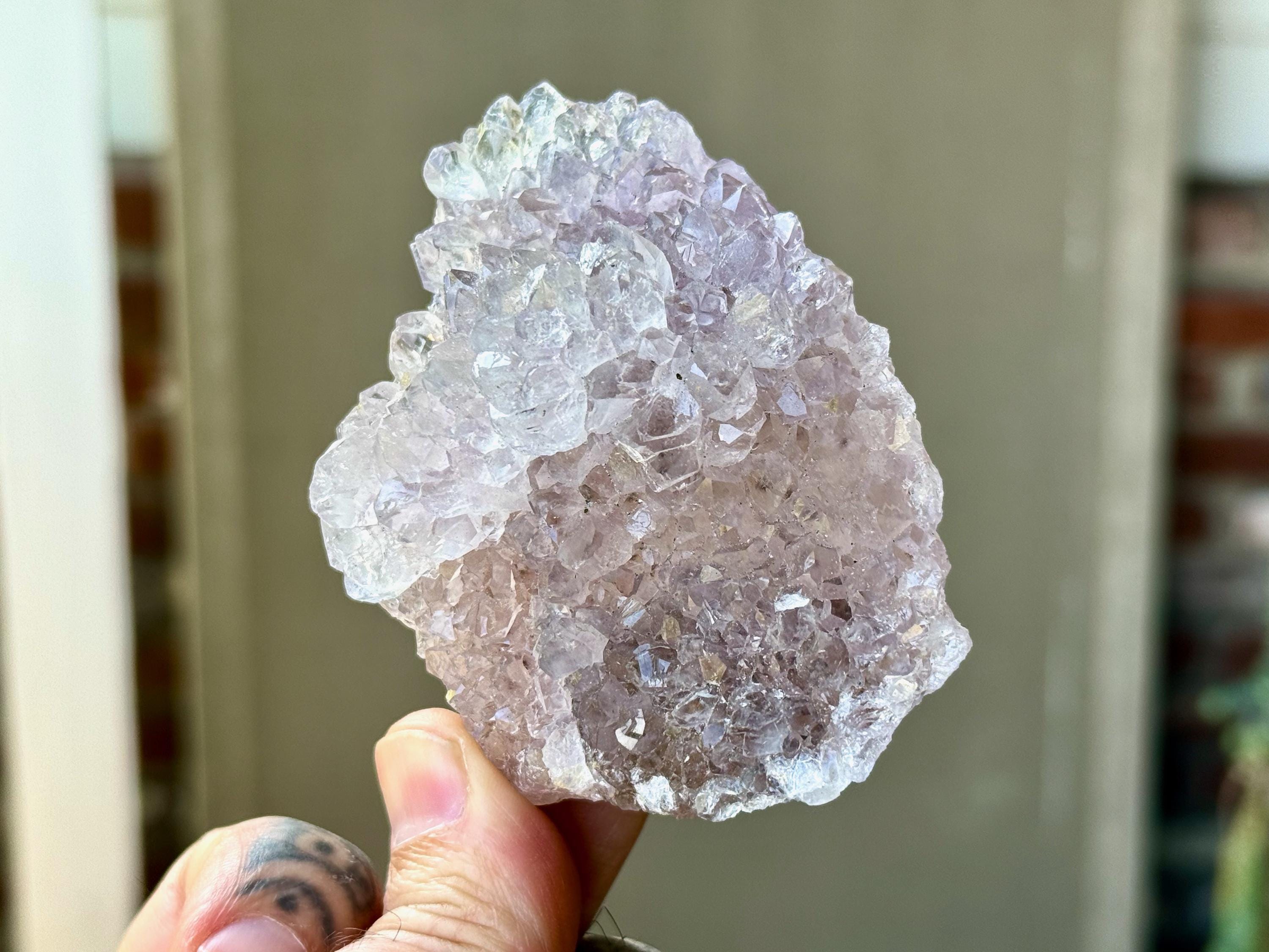 Magnificent luster and a sweet lilac color to this elegant Amethyst "Flower" Quartz with an array of crystalline formations.