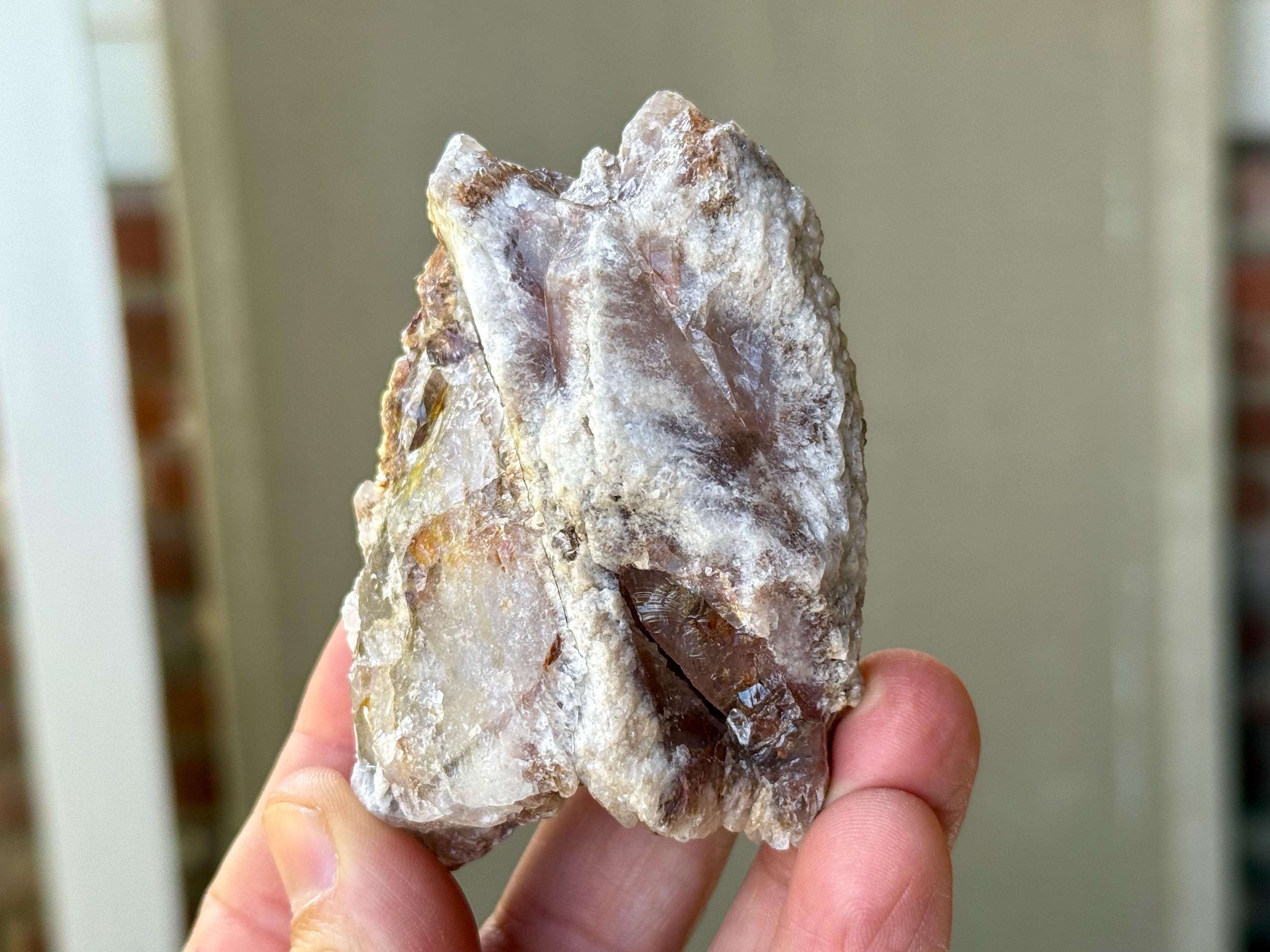 This variation is sometimes called "Dreamsicle" or "Dream Coat" Lemurian, due to the partially white frosted coating on the exterior that creates a beautiful marbled effect. Energetically similar to standard Pink Lemurians, these crystals are known to resonate and align/clear all chakras, but are also associated specifically with the Crown Chakra. Their likeness to the Scarlets also gives them a bit of that Heart Healer energy as well.