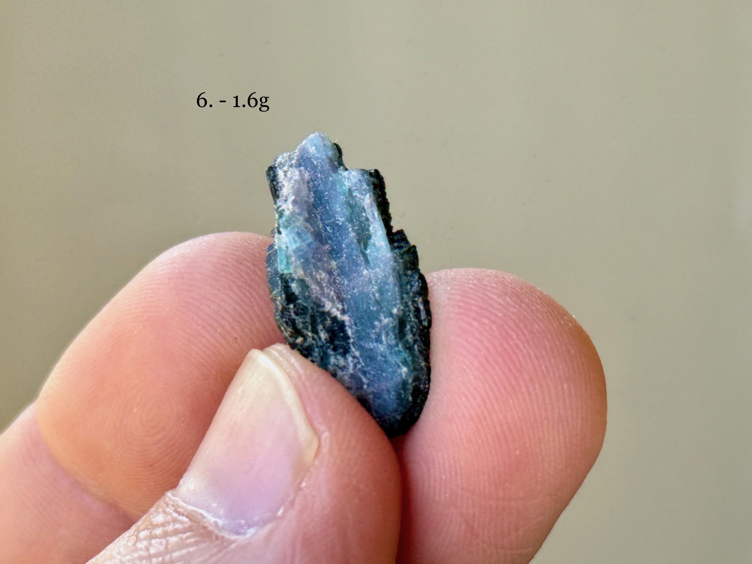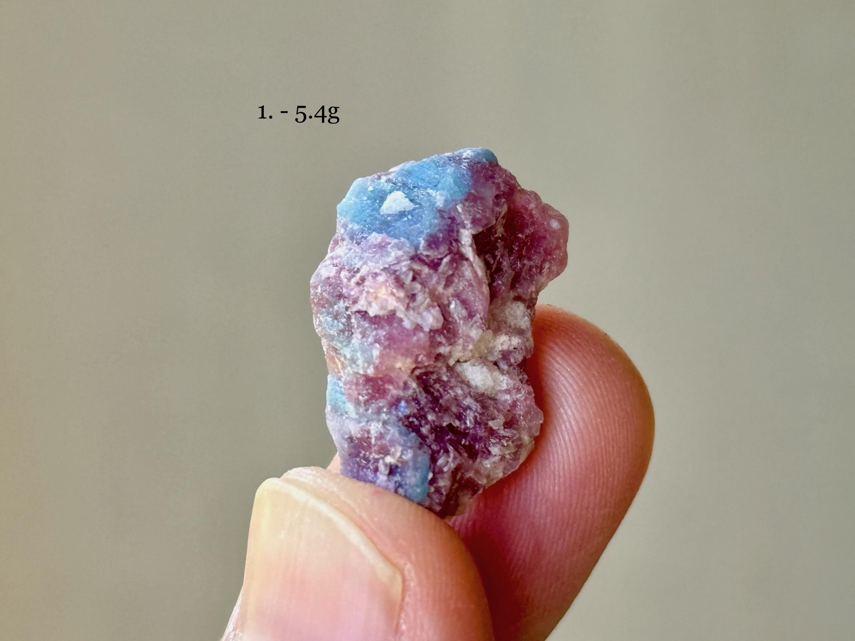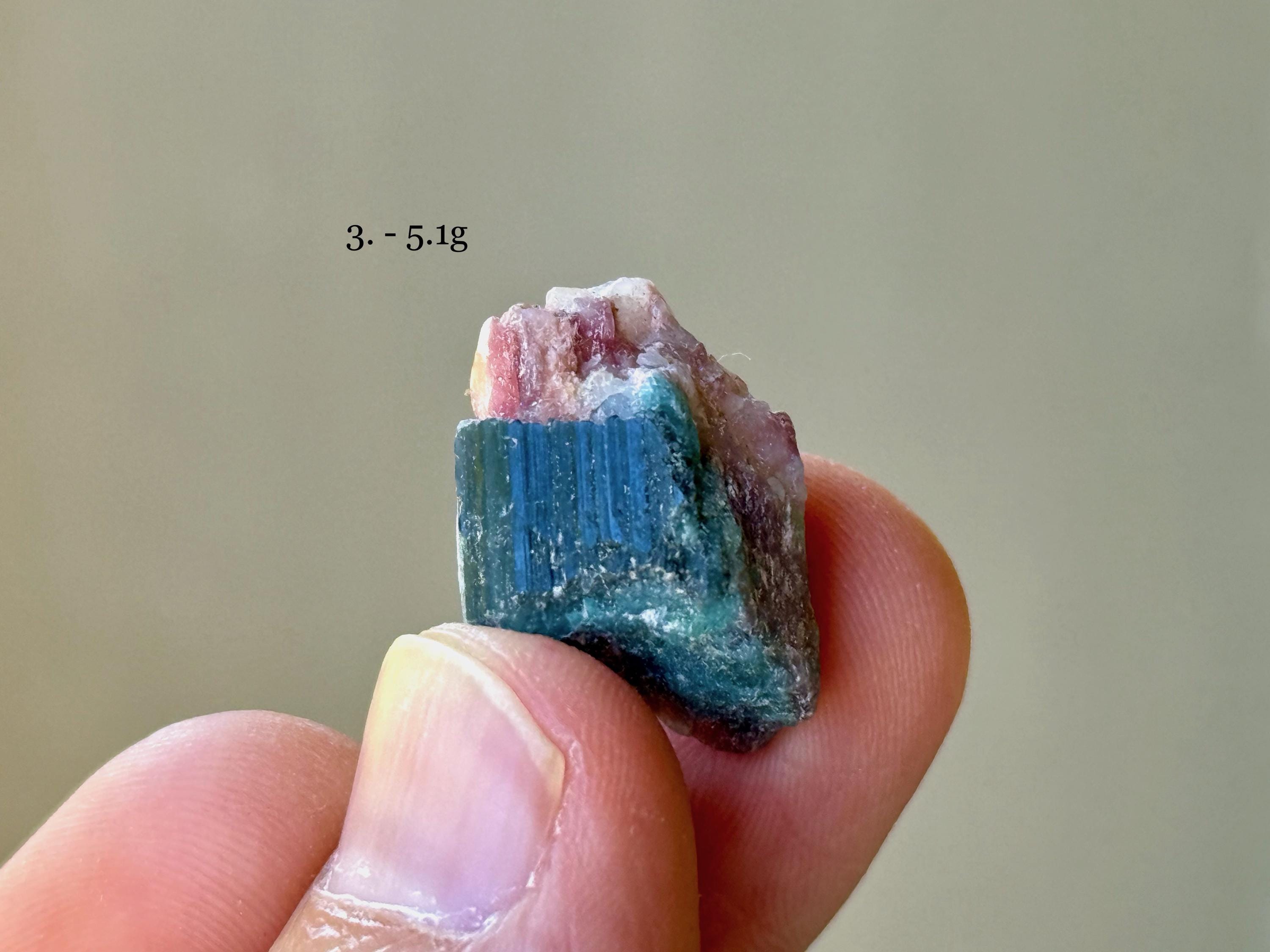 Each crystal is between 1.5 cm - 3 cm tall and weighs between 1.6g - 5.4g.