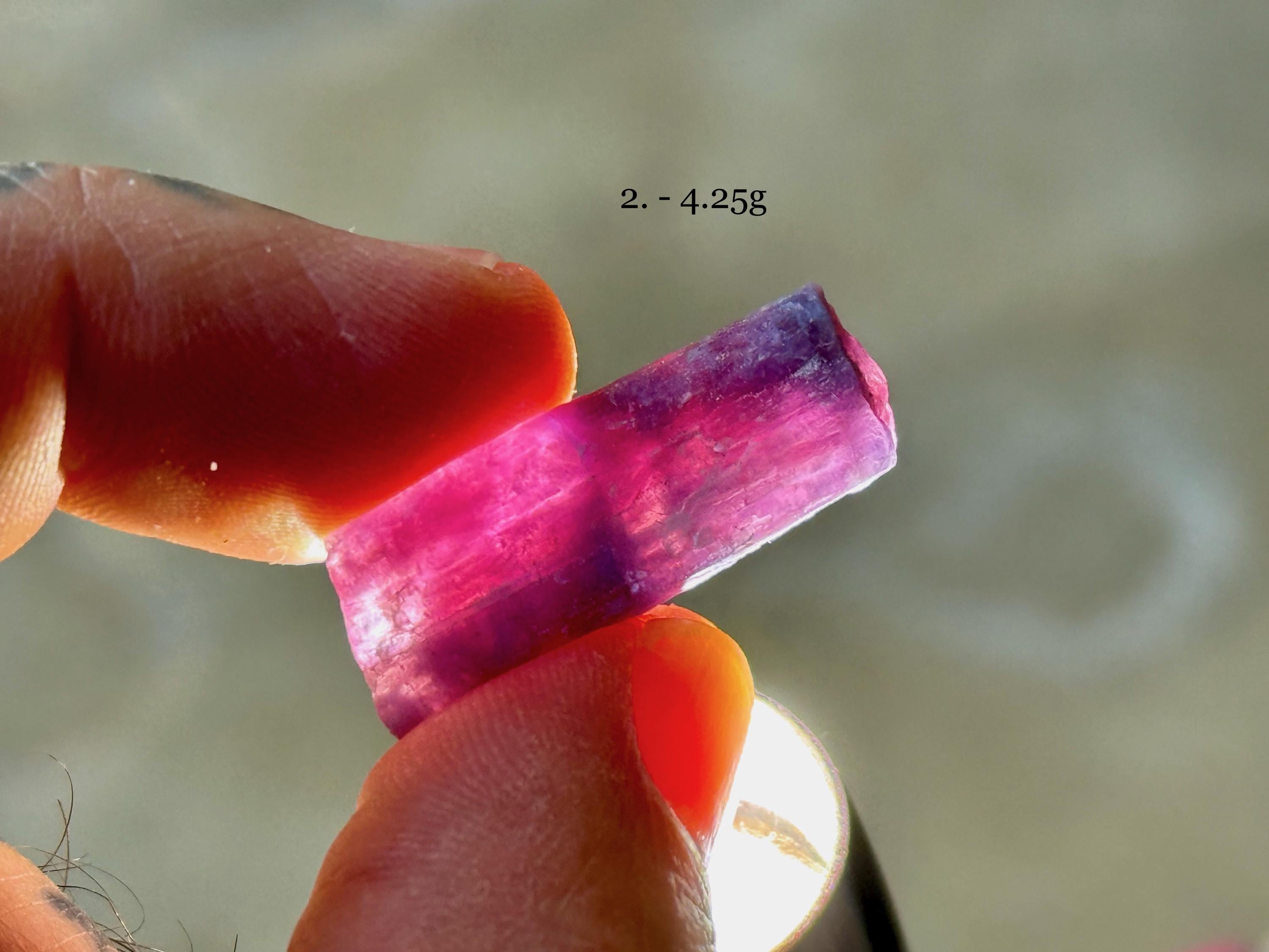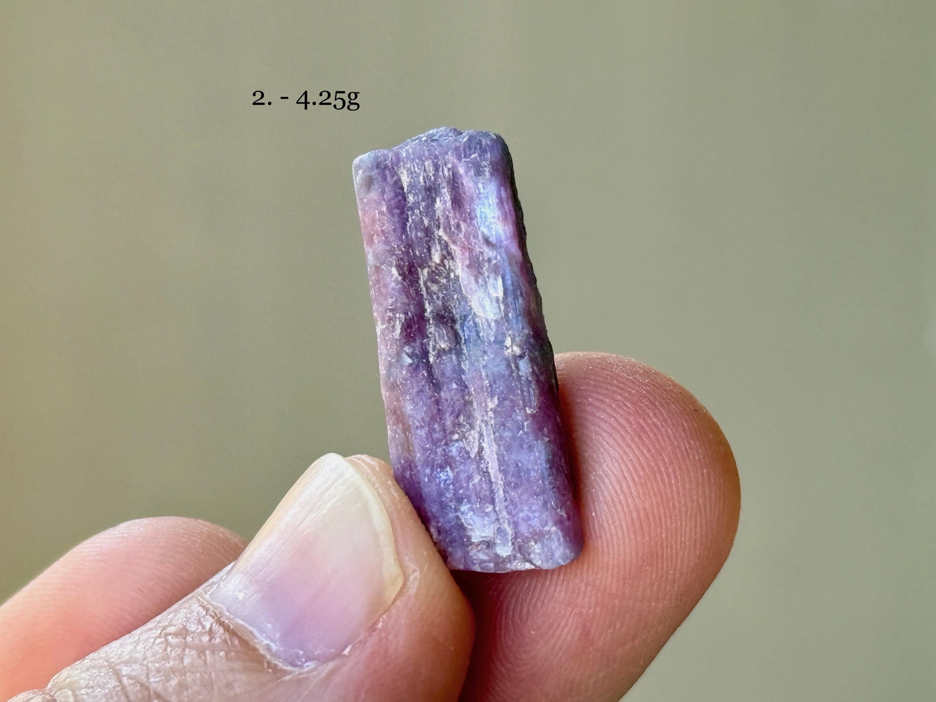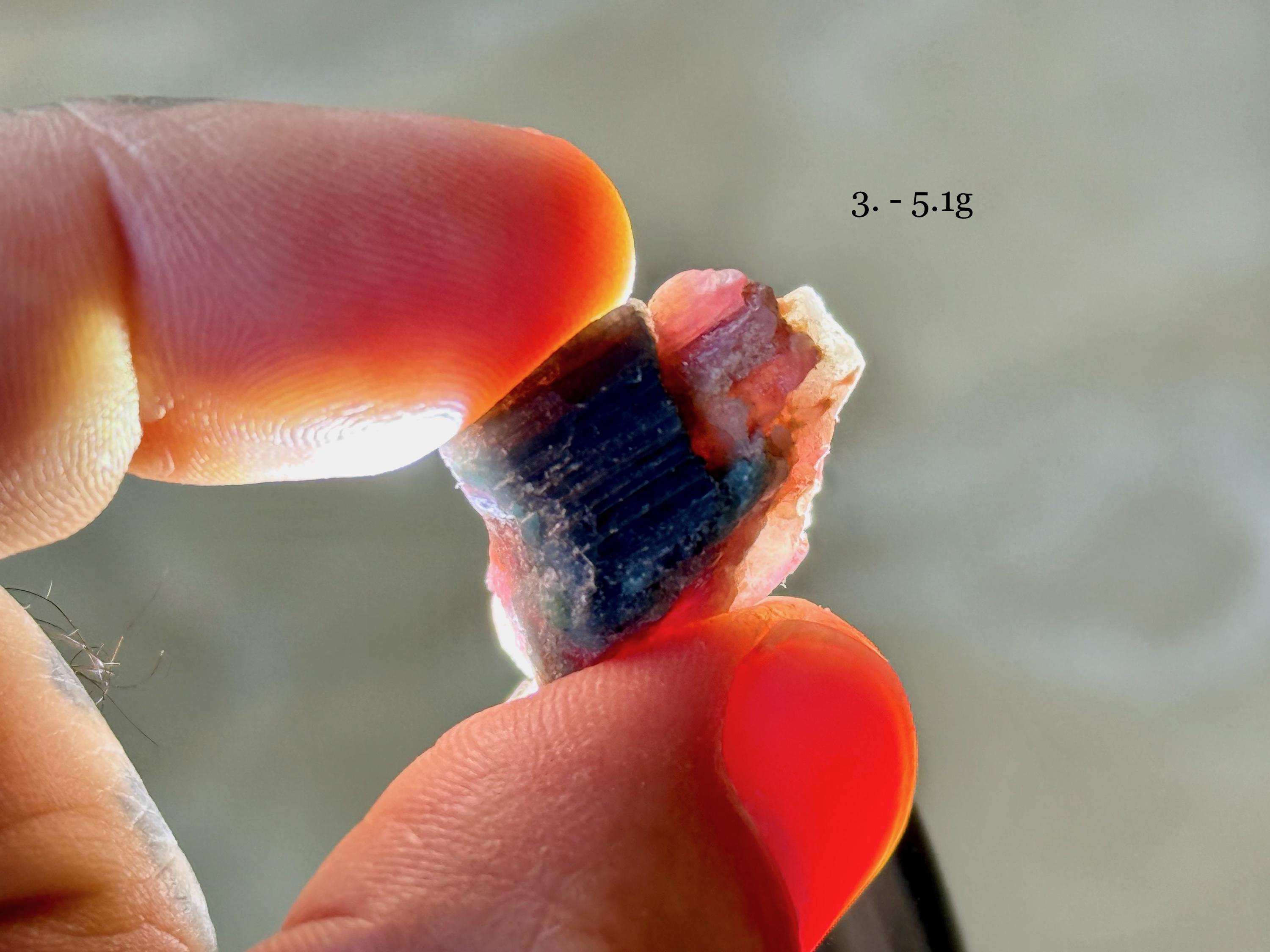 Each crystal is between 1.5 cm - 3 cm tall and weighs between 1.6g - 5.4g.