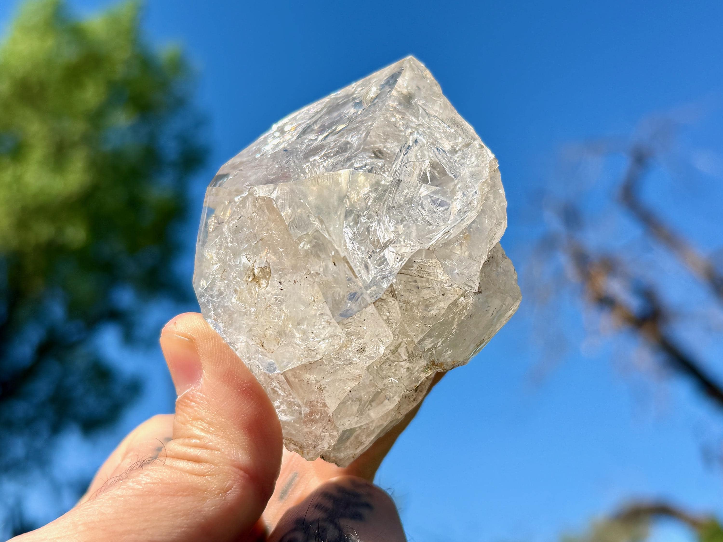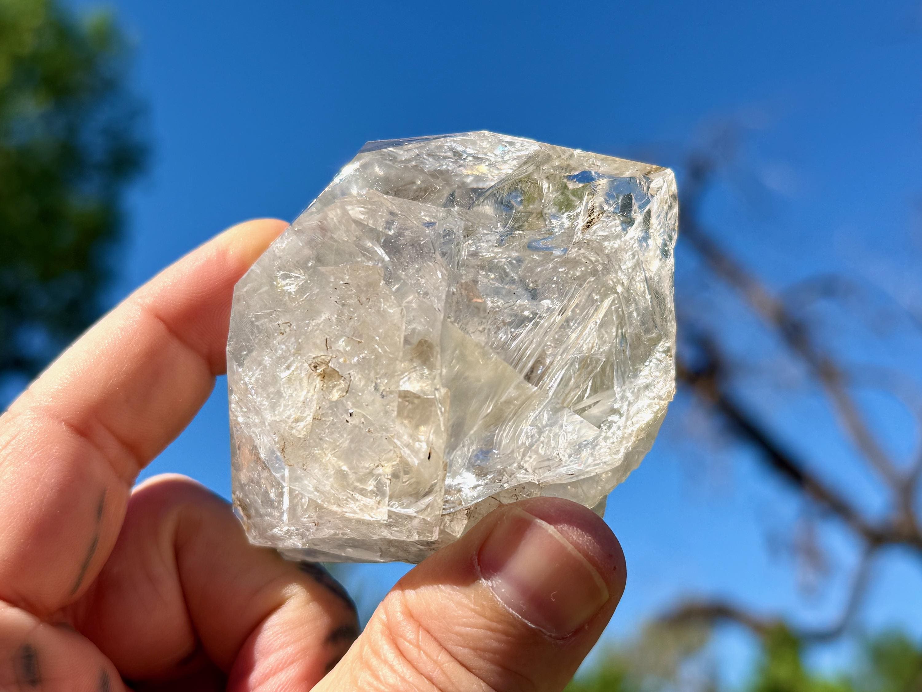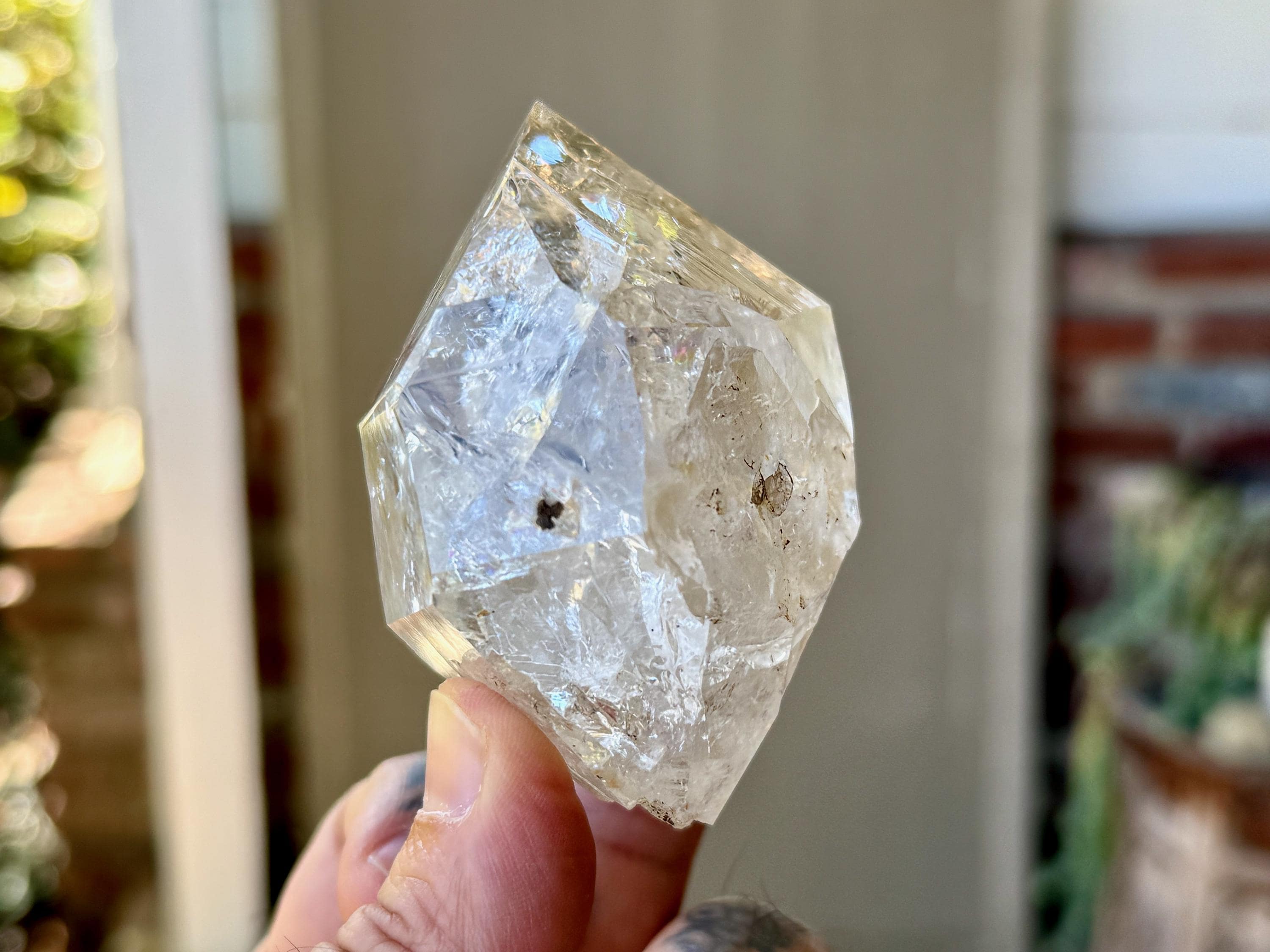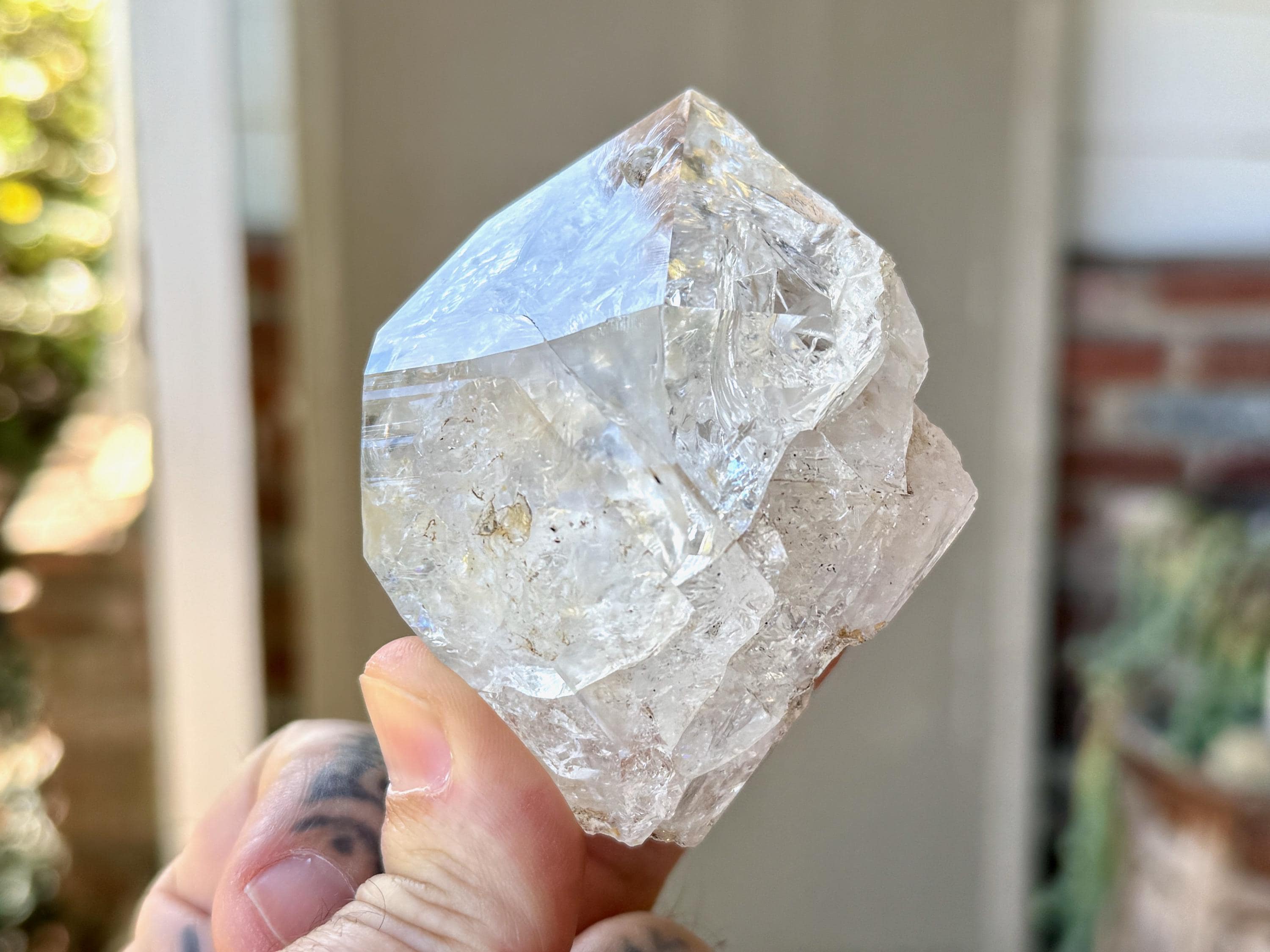Brilliant, light-bearing luster and water-clear clarity to this large Herkimer Diamond. This crystal just seems to emanate light, and this is partially due to the wonderful array of crystalline formations within.