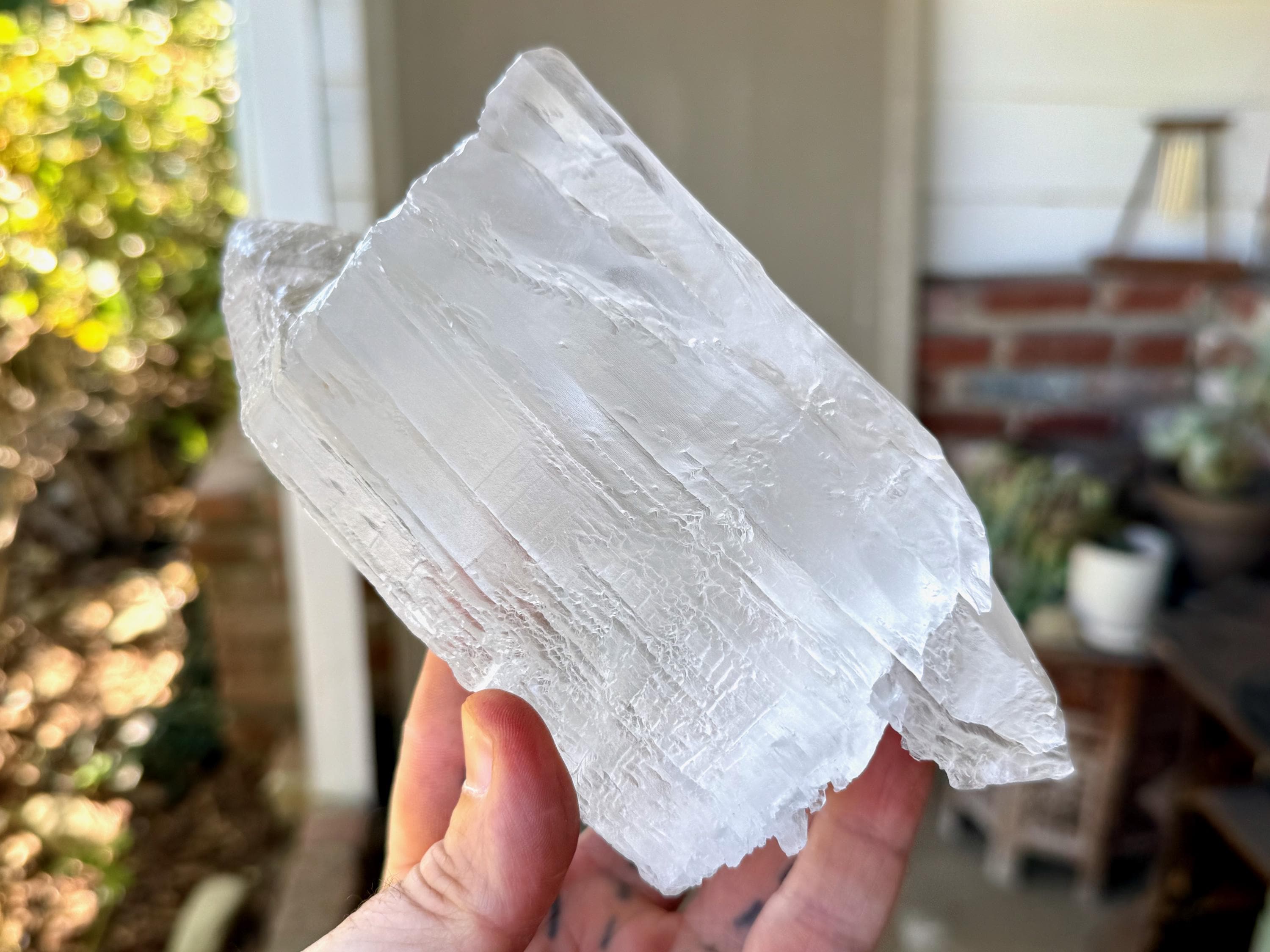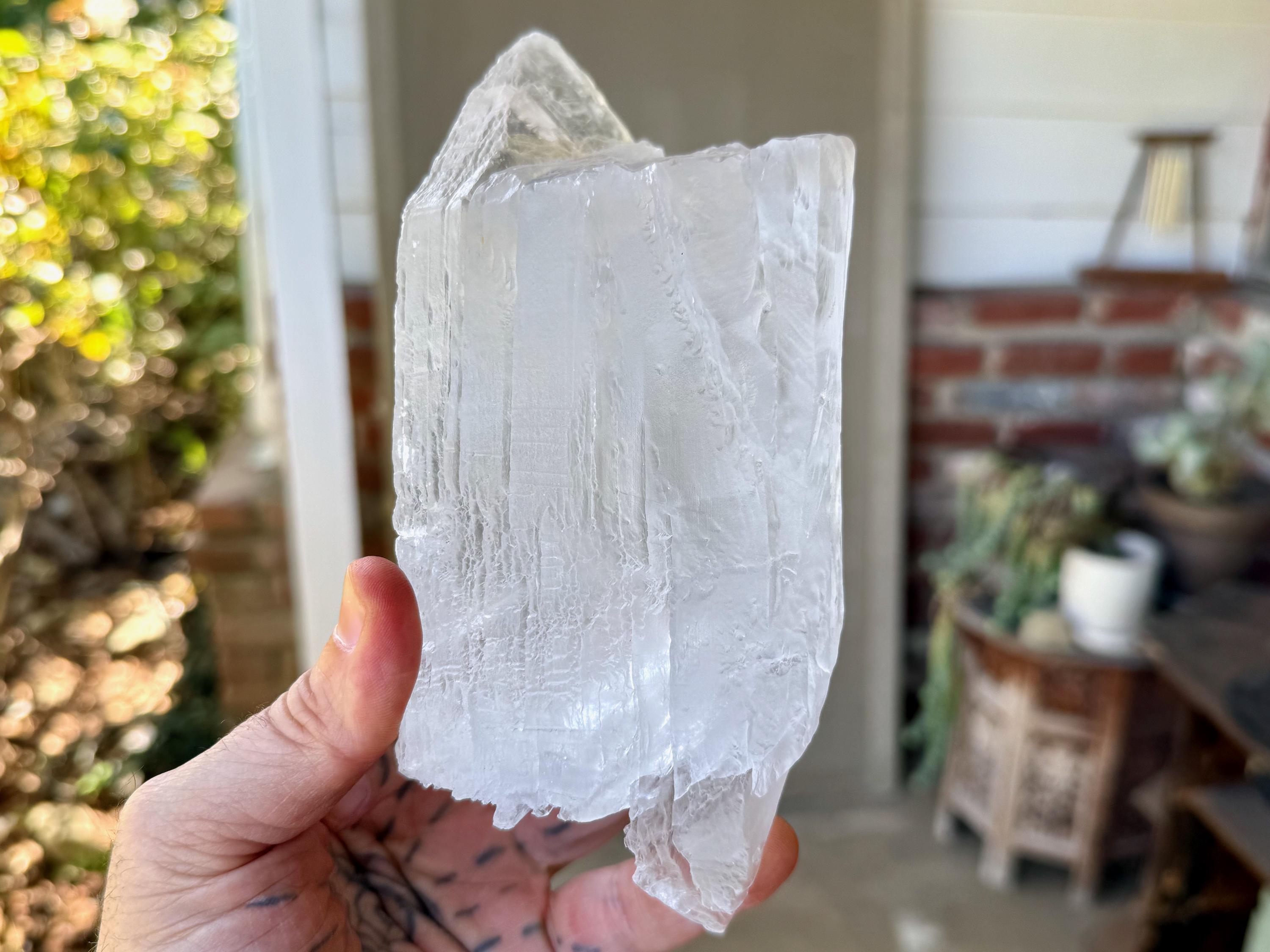 Gorgeous textures and a mild iridescent quality to this large and lustrous Selenite crystal from Zambia. The piece has formed in "layers" creating some wonderful textures and etchings on the surface.