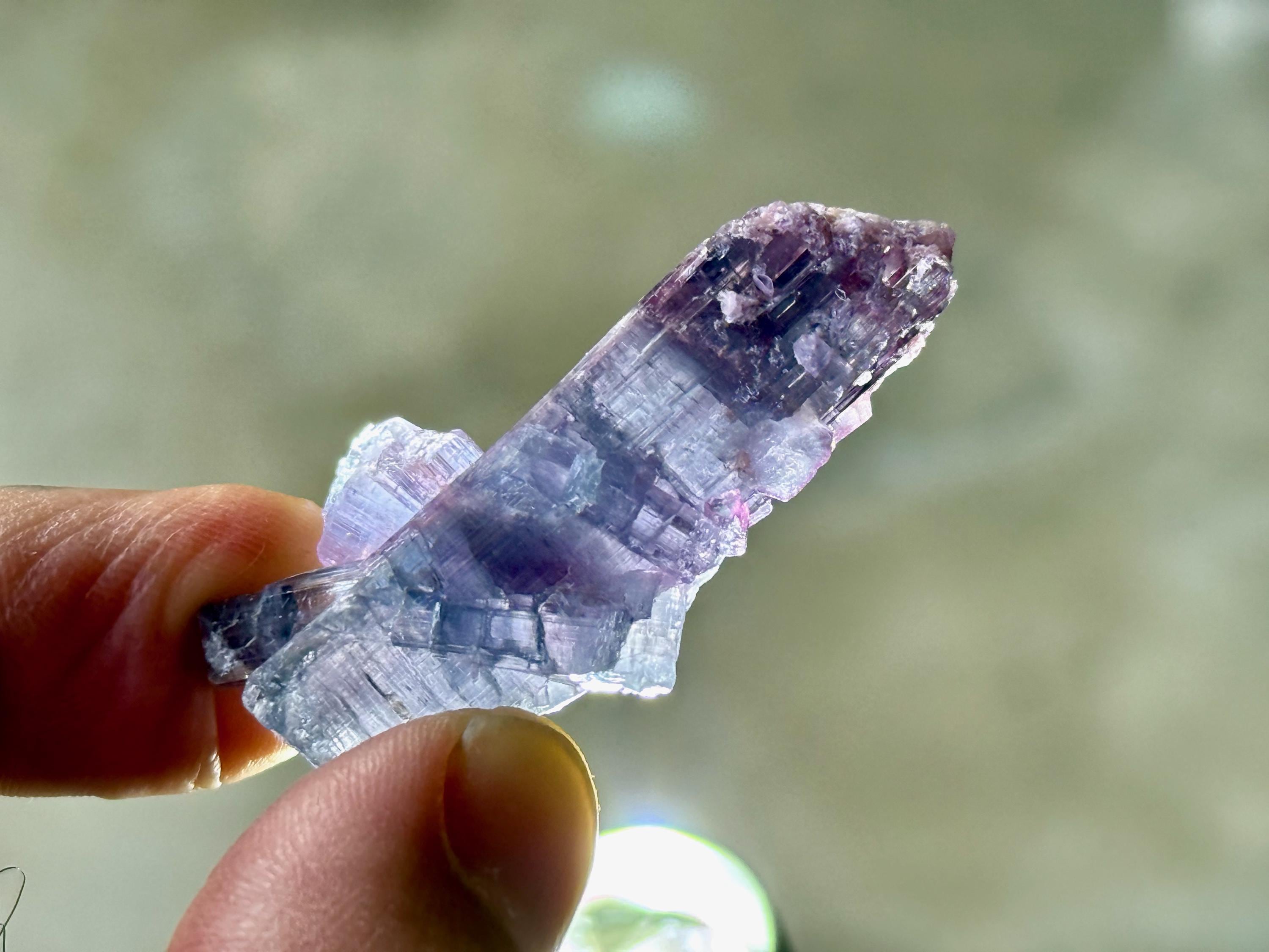 This exquisite Purple Tourmaline crystal comes from a recent find in the Aricanga Mine, São Jose do Safira, Minas Gerais, Brazil. Our source at the Aricanga Mine shared with us that this is likely a "Steel Blue" Tourmaline that has taken on a purplish color due to Lepidolite inclusion.