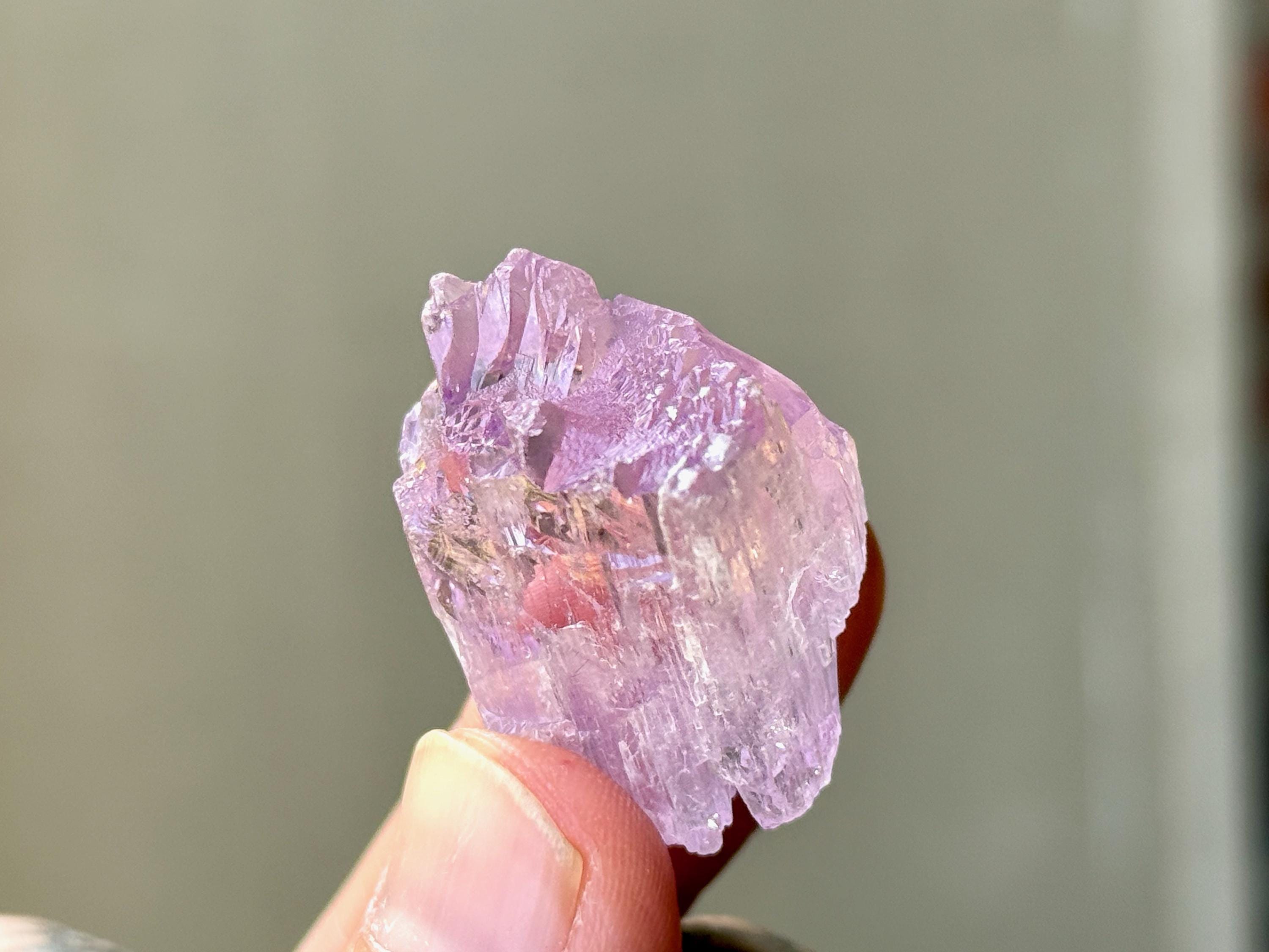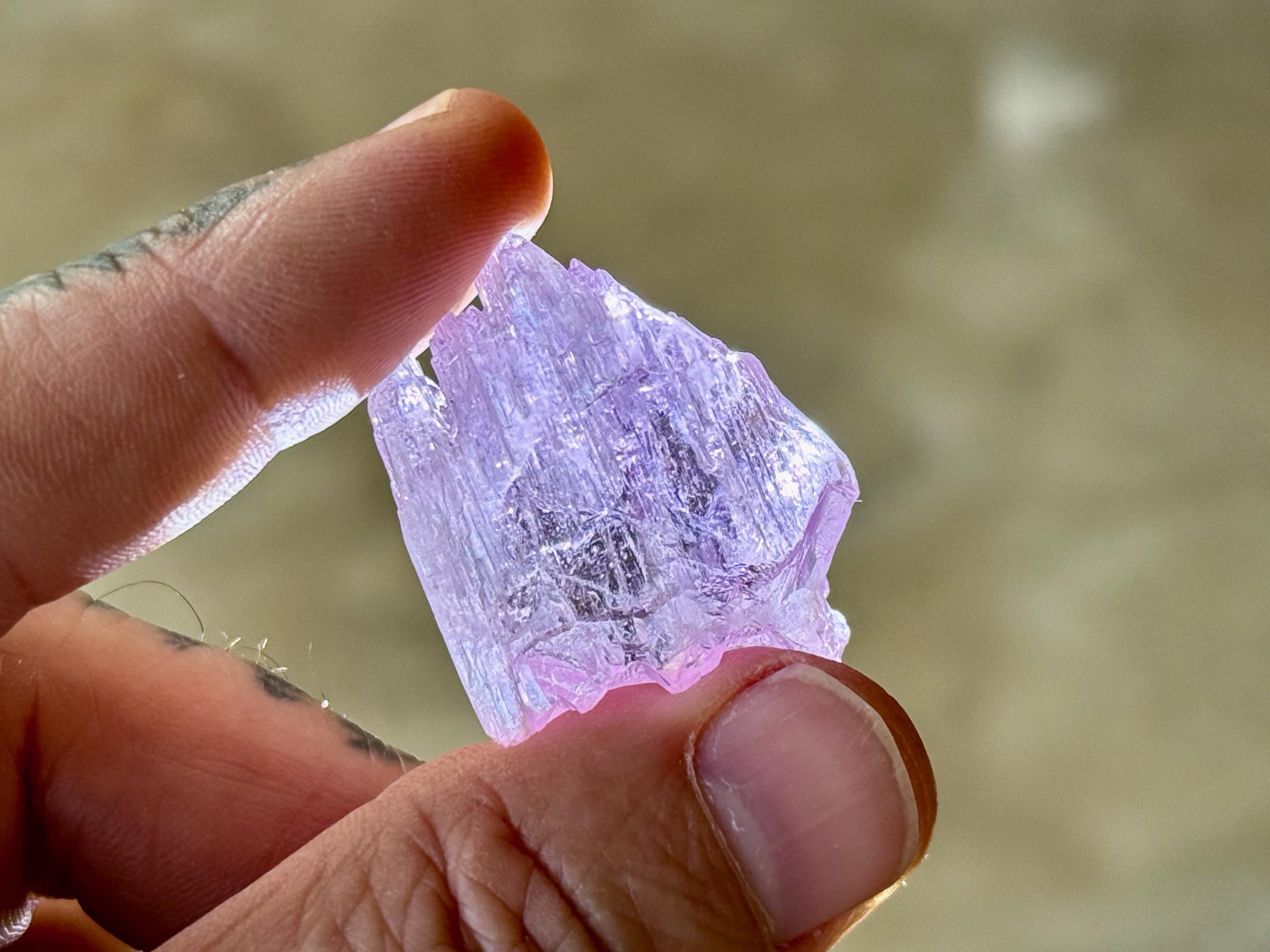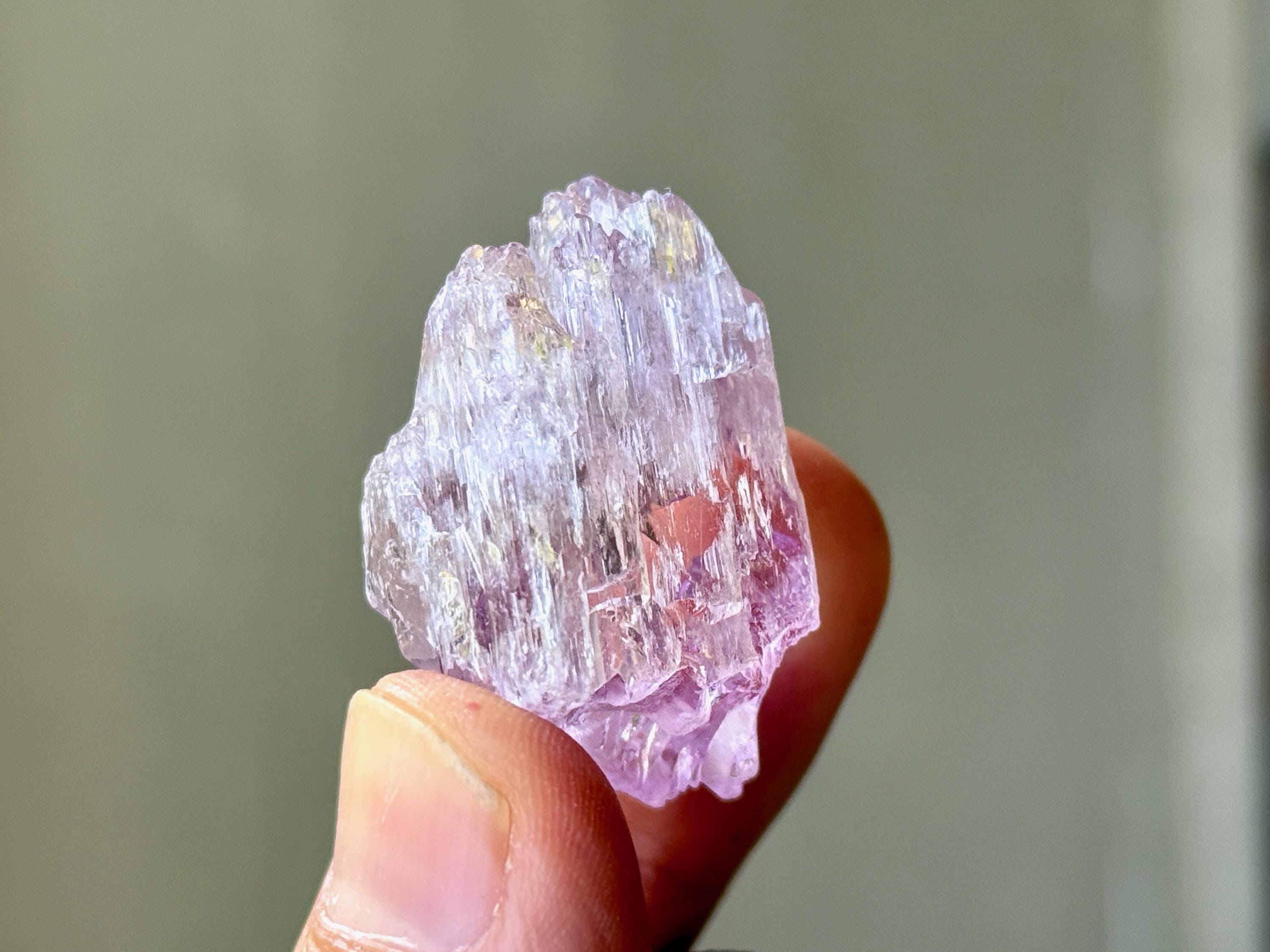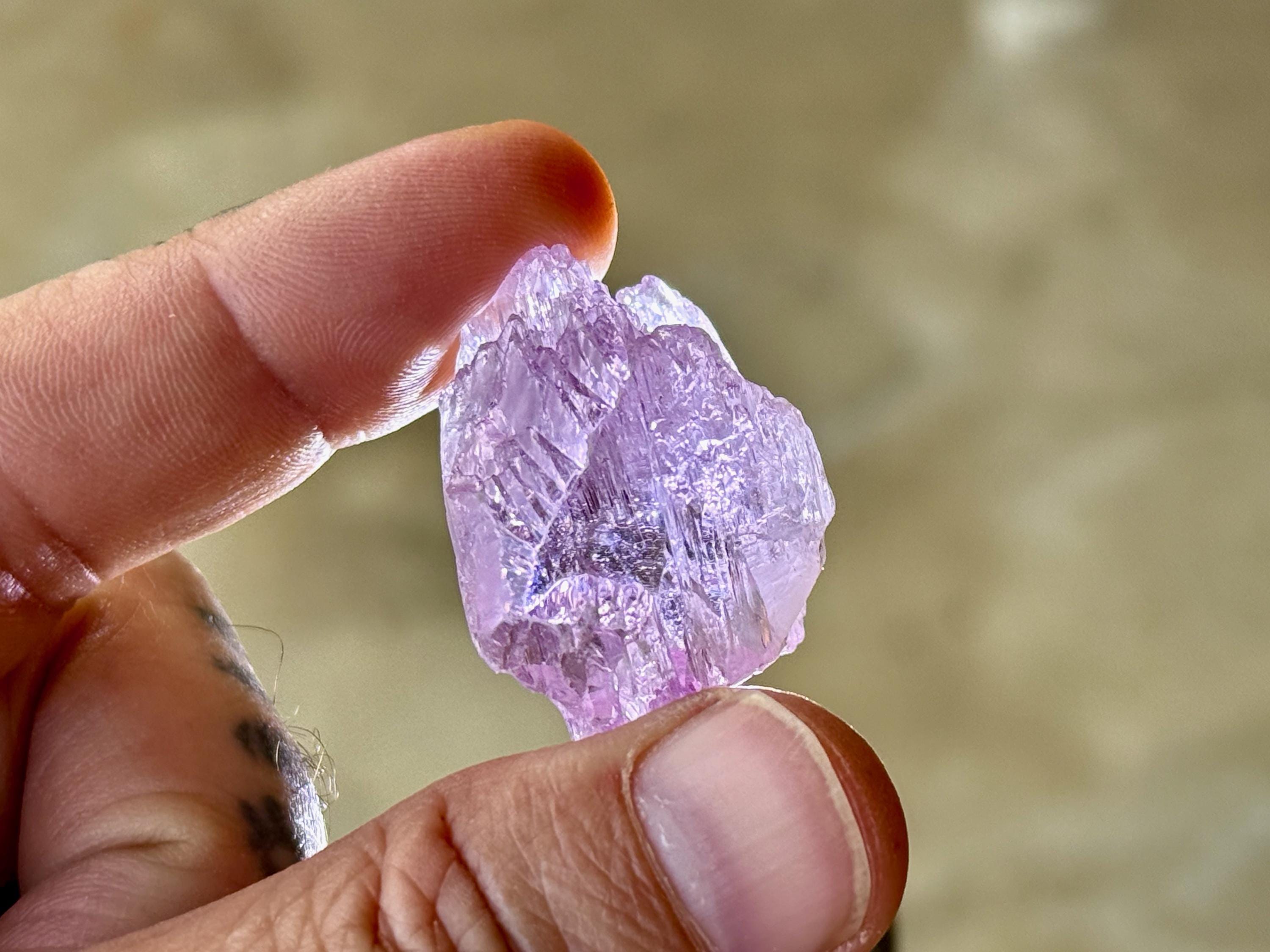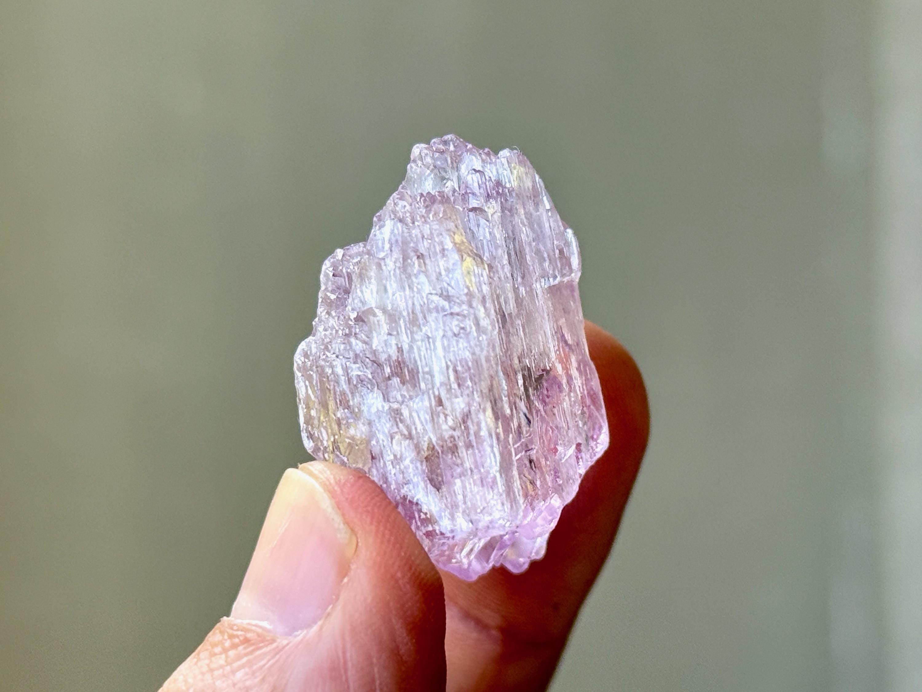 **Please note, Kunzite has the tendency to fade in color with prolonged exposure to sunlight. It is generally a slow process and will not happen in hours or even days, but we advise not keeping Kunzite displayed for extended periods of time in direct sunlight.**