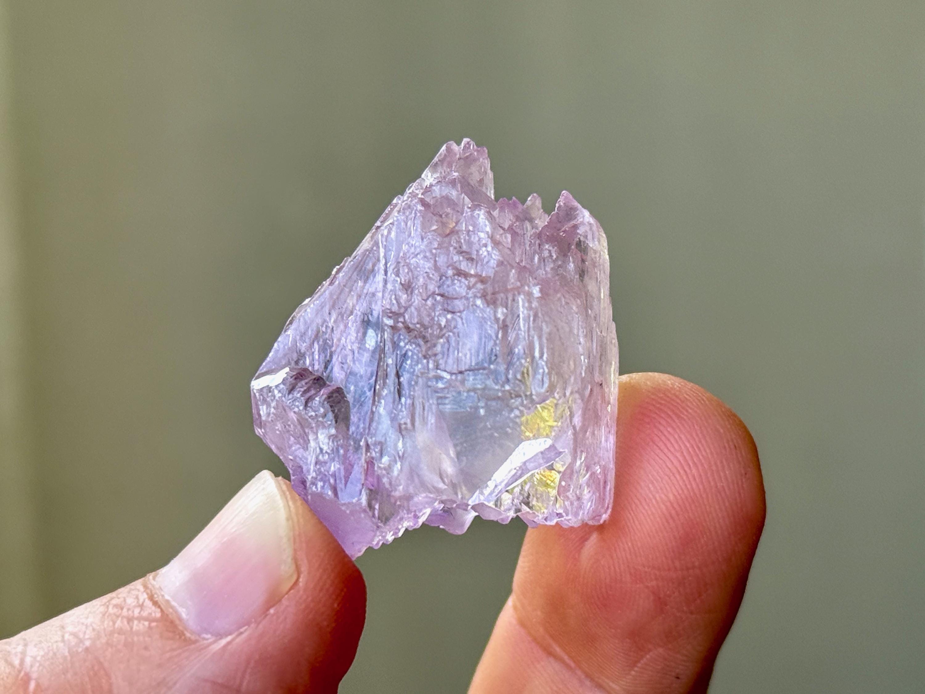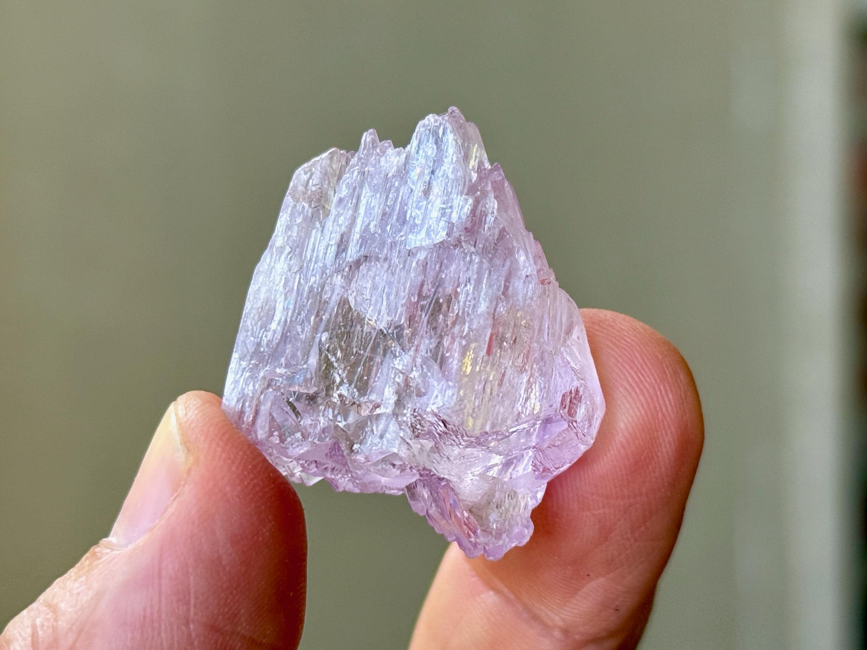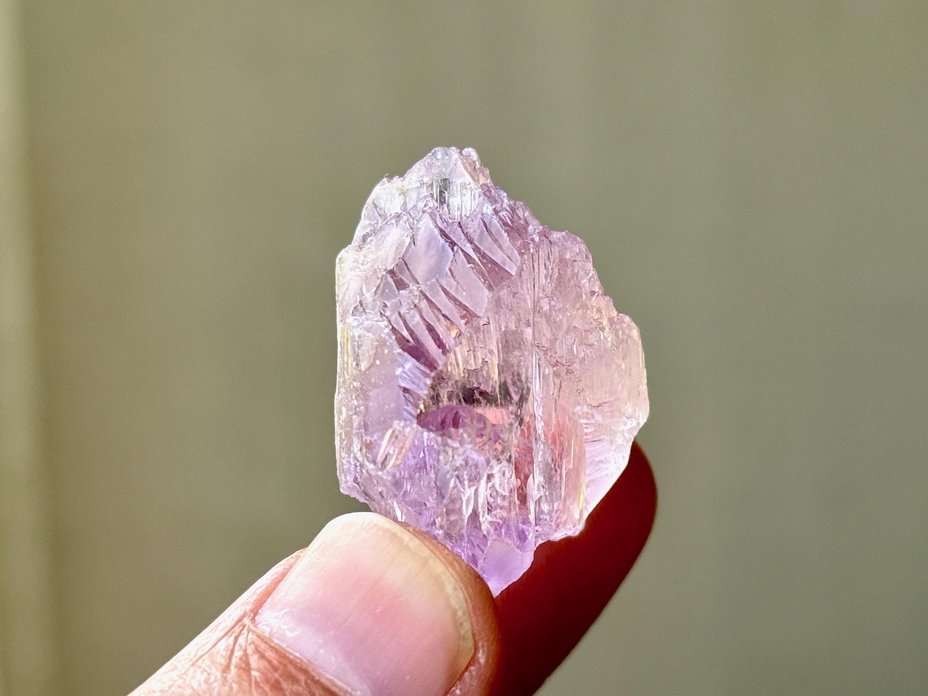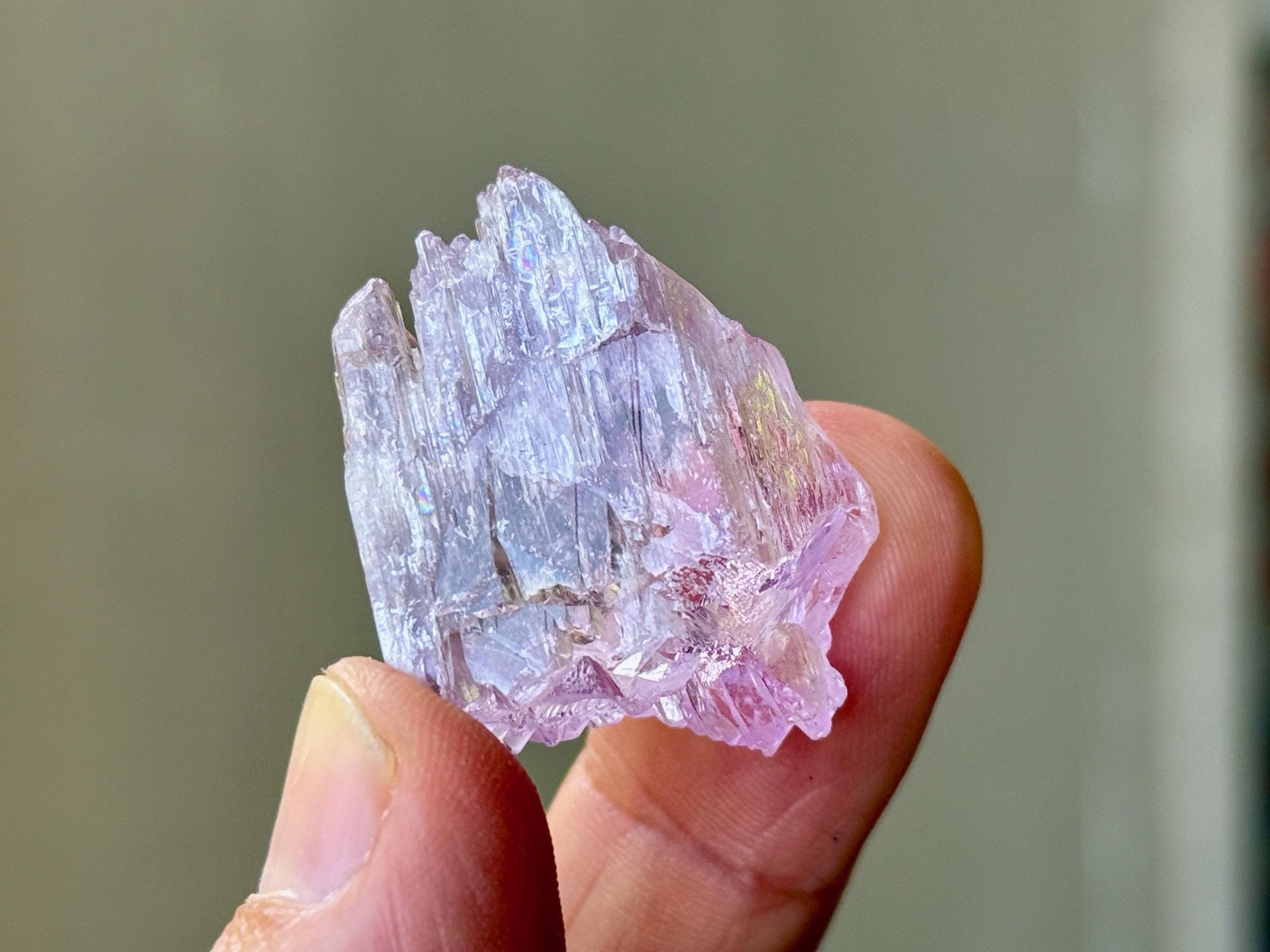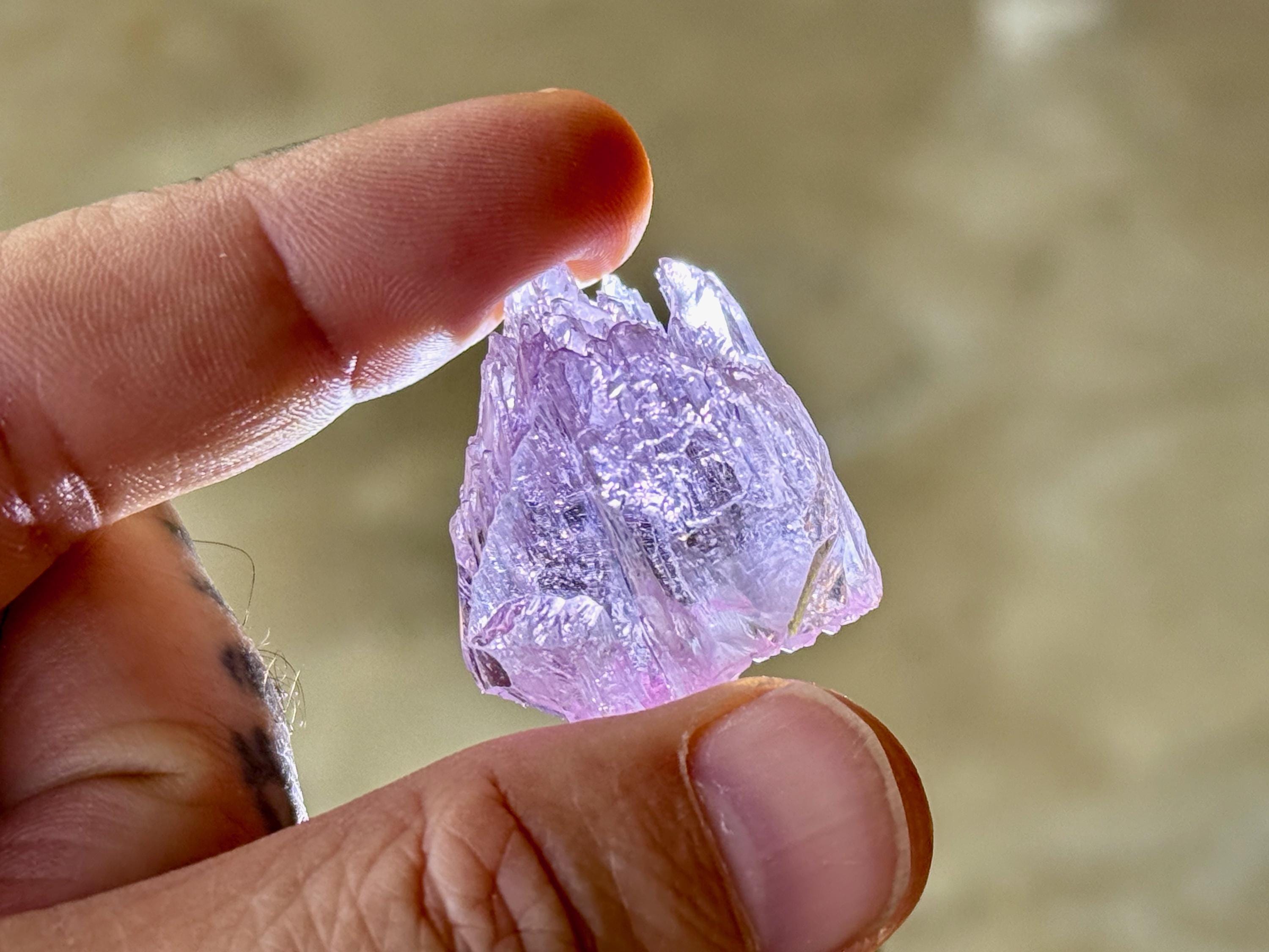 **Please note, Kunzite has the tendency to fade in color with prolonged exposure to sunlight. It is generally a slow process and will not happen in hours or even days, but we advise not keeping Kunzite displayed for extended periods of time in direct sunlight.**