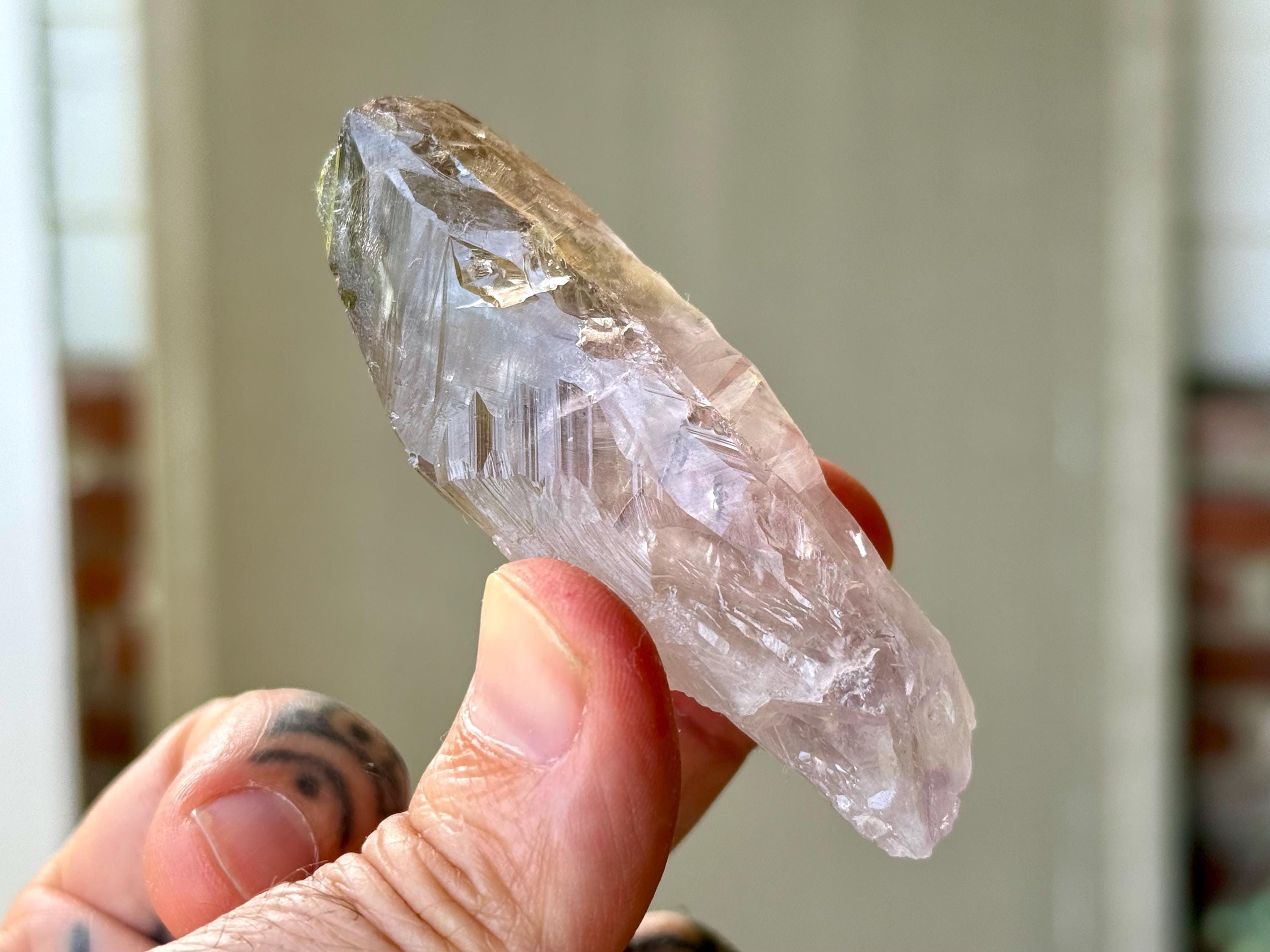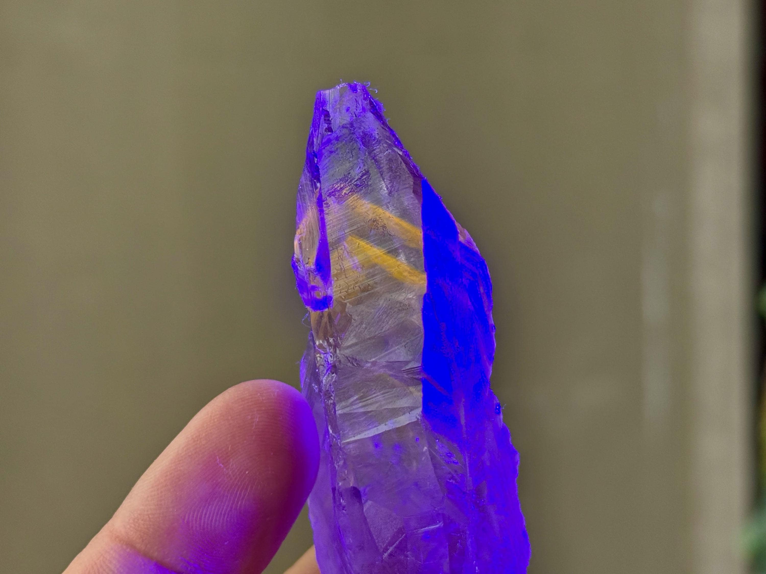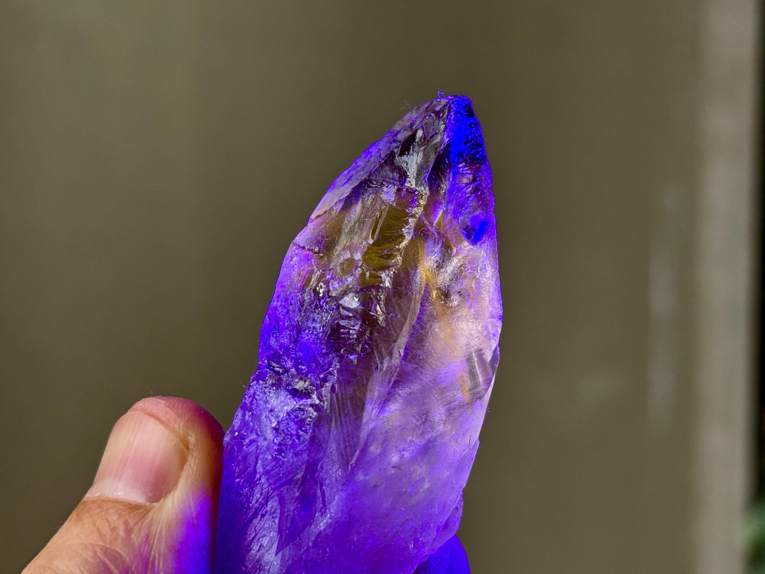 **Please note, the inclusions in this crystal are all natural/untreated. A UV light is necessary to see the phantoms glow, and they can be found affordably at Amazon or any other online outlet. Also, please note that the dark purple hues in the UV-lit photos are a result of the UV light itself and not the color of the crystal. The natural color is shown in the natural-light photos included in this listing.