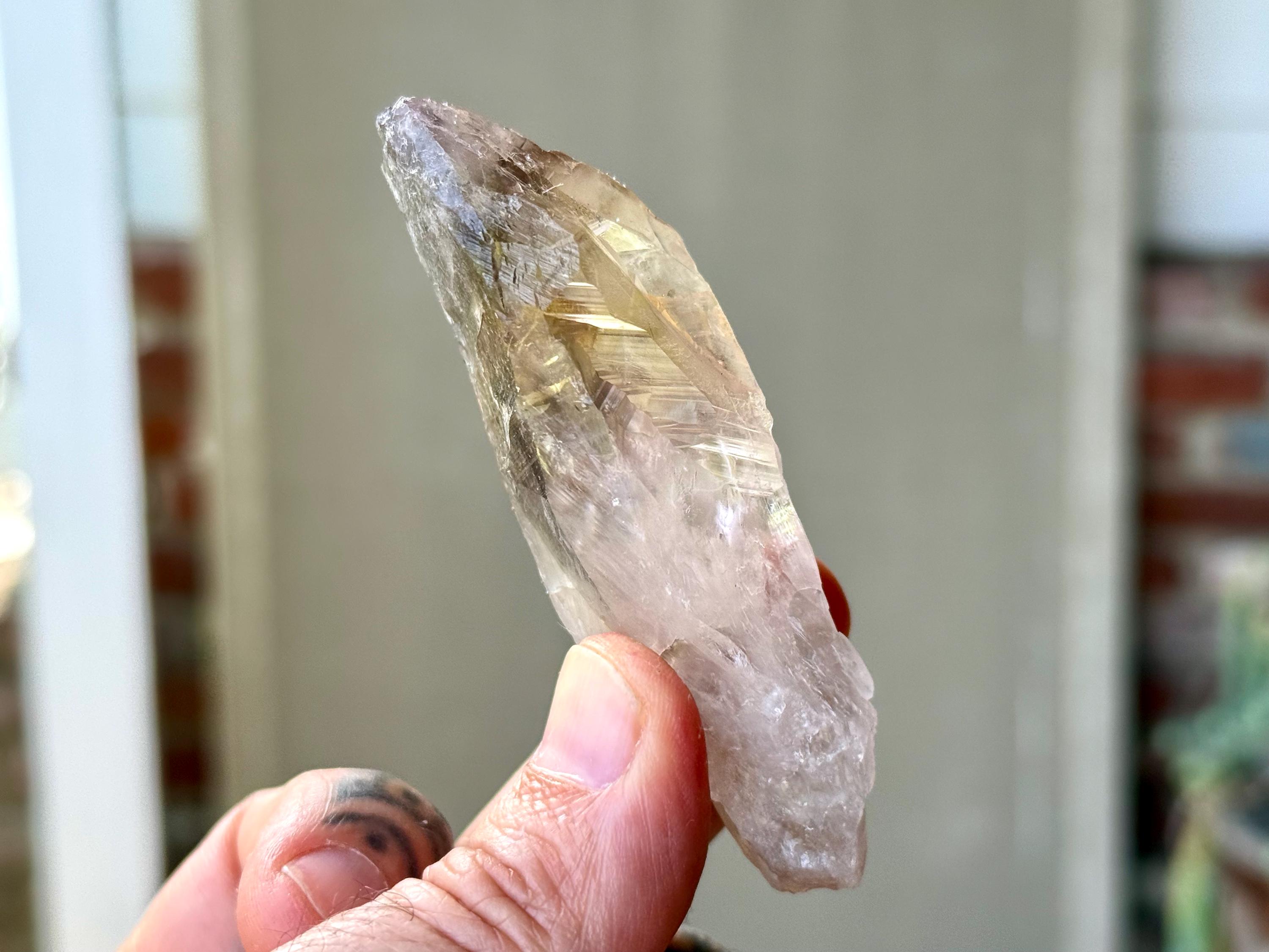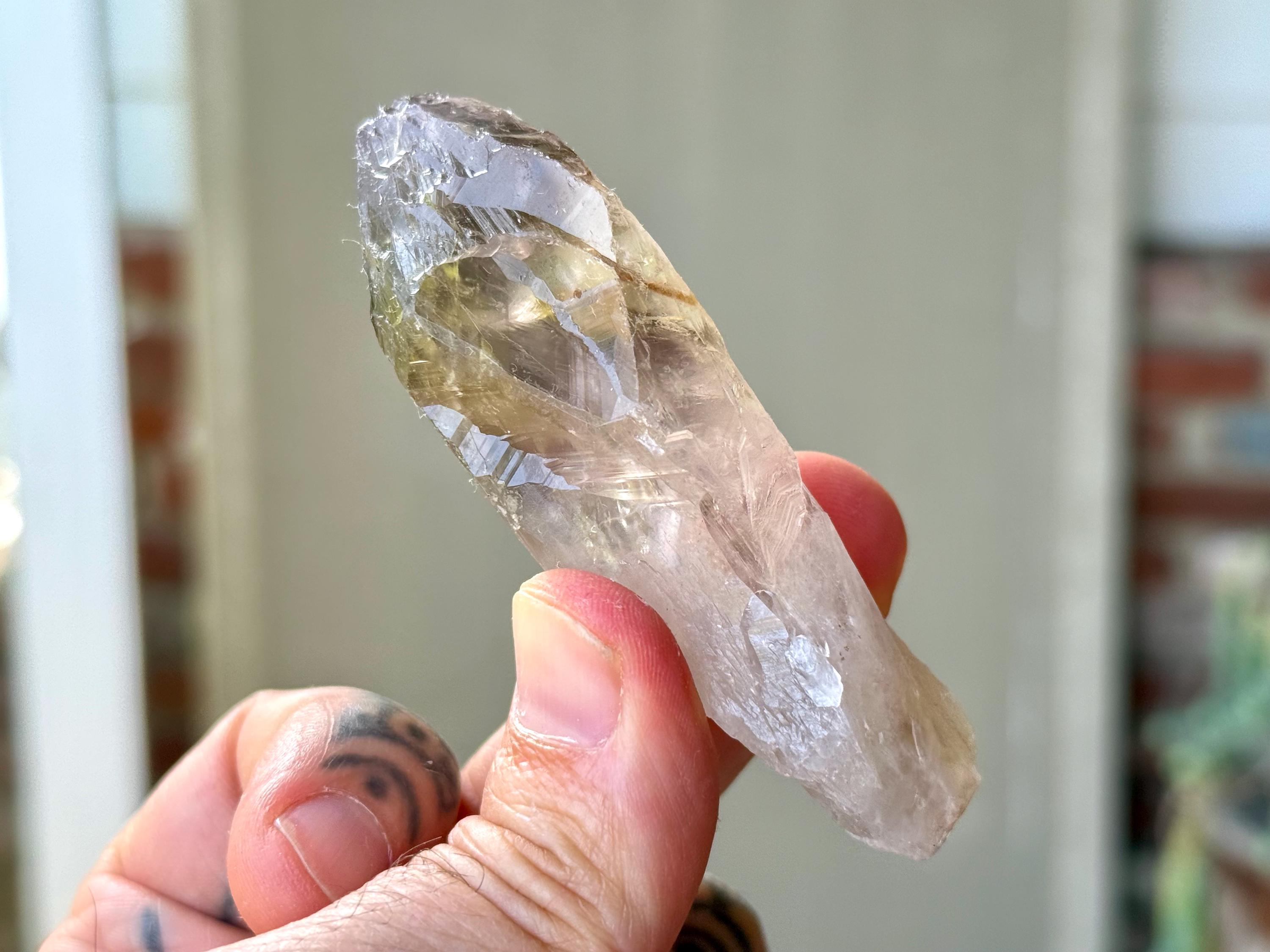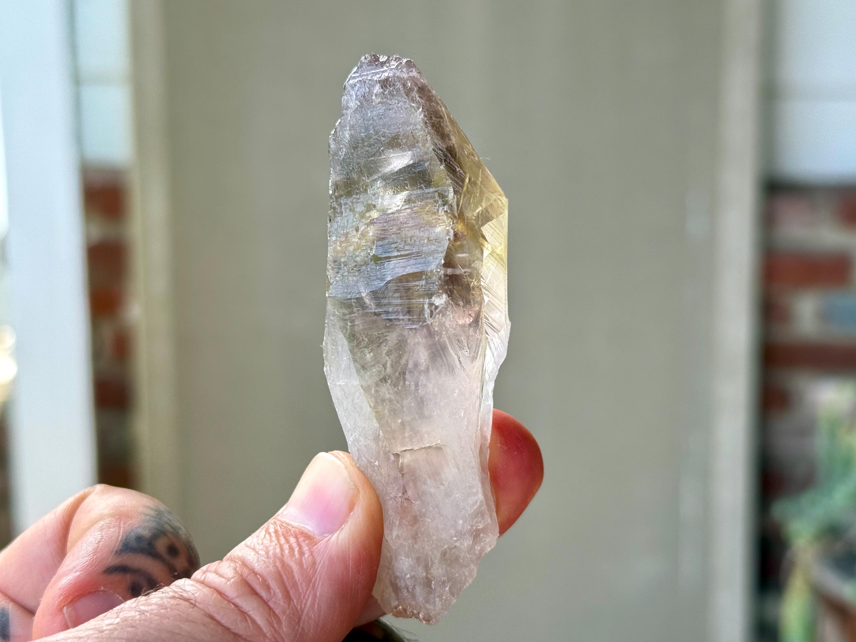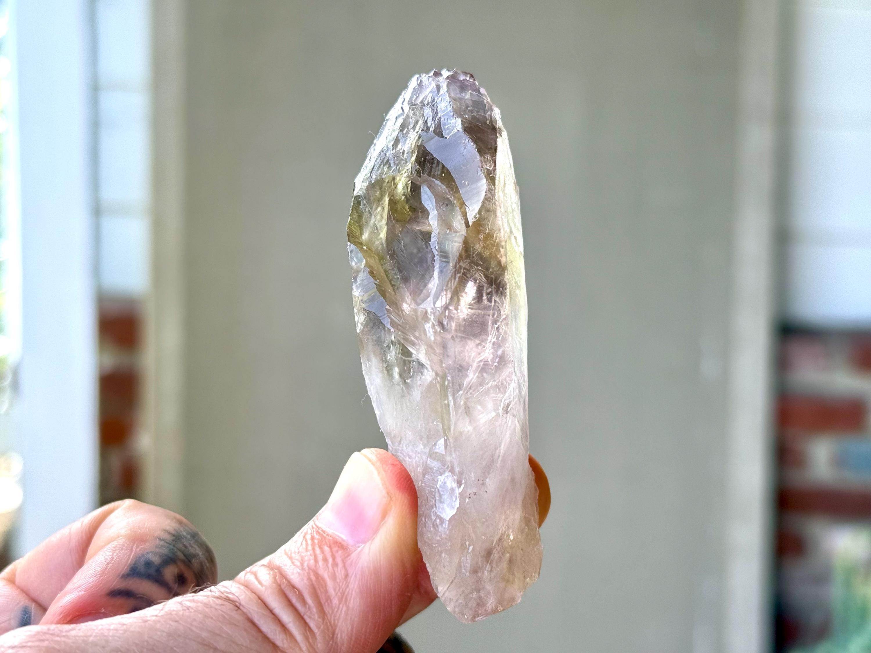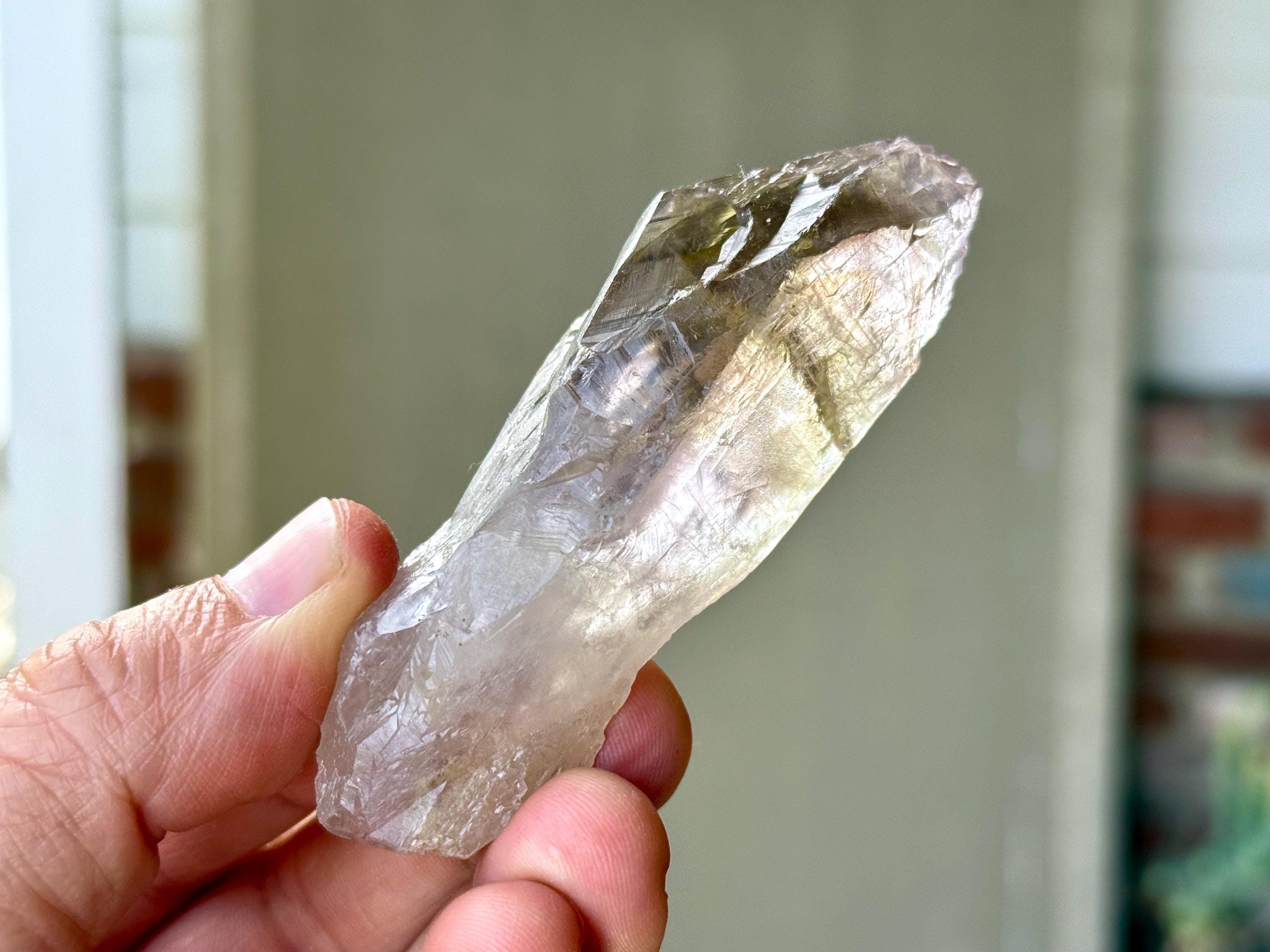 **Please note, the inclusions in this crystal are all natural/untreated. A UV light is necessary to see the phantoms glow, and they can be found affordably at Amazon or any other online outlet. Also, please note that the dark purple hues in the UV-lit photos are a result of the UV light itself and not the color of the crystal. The natural color is shown in the natural-light photos included in this listing.