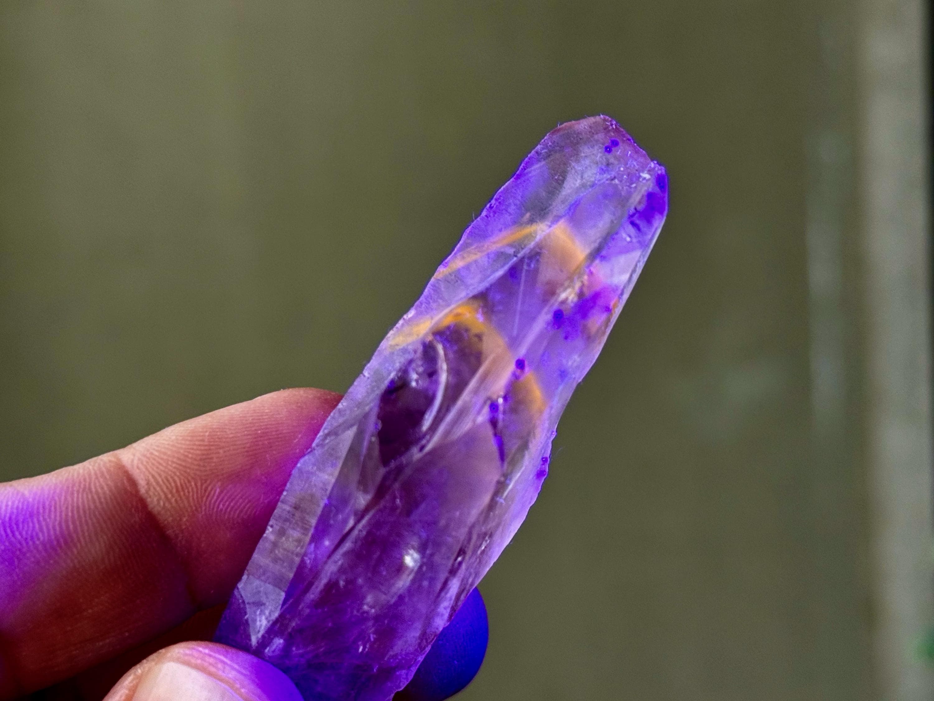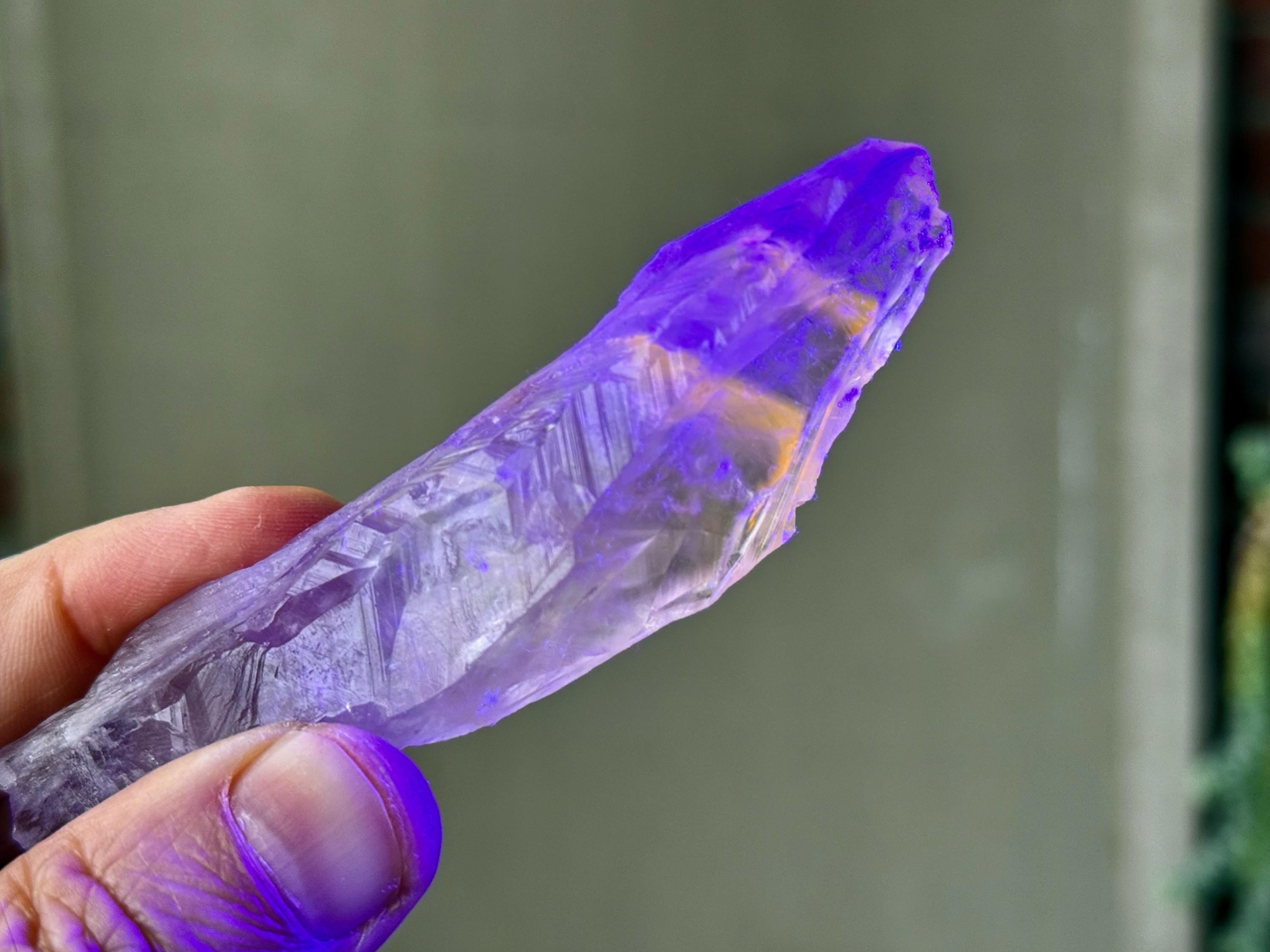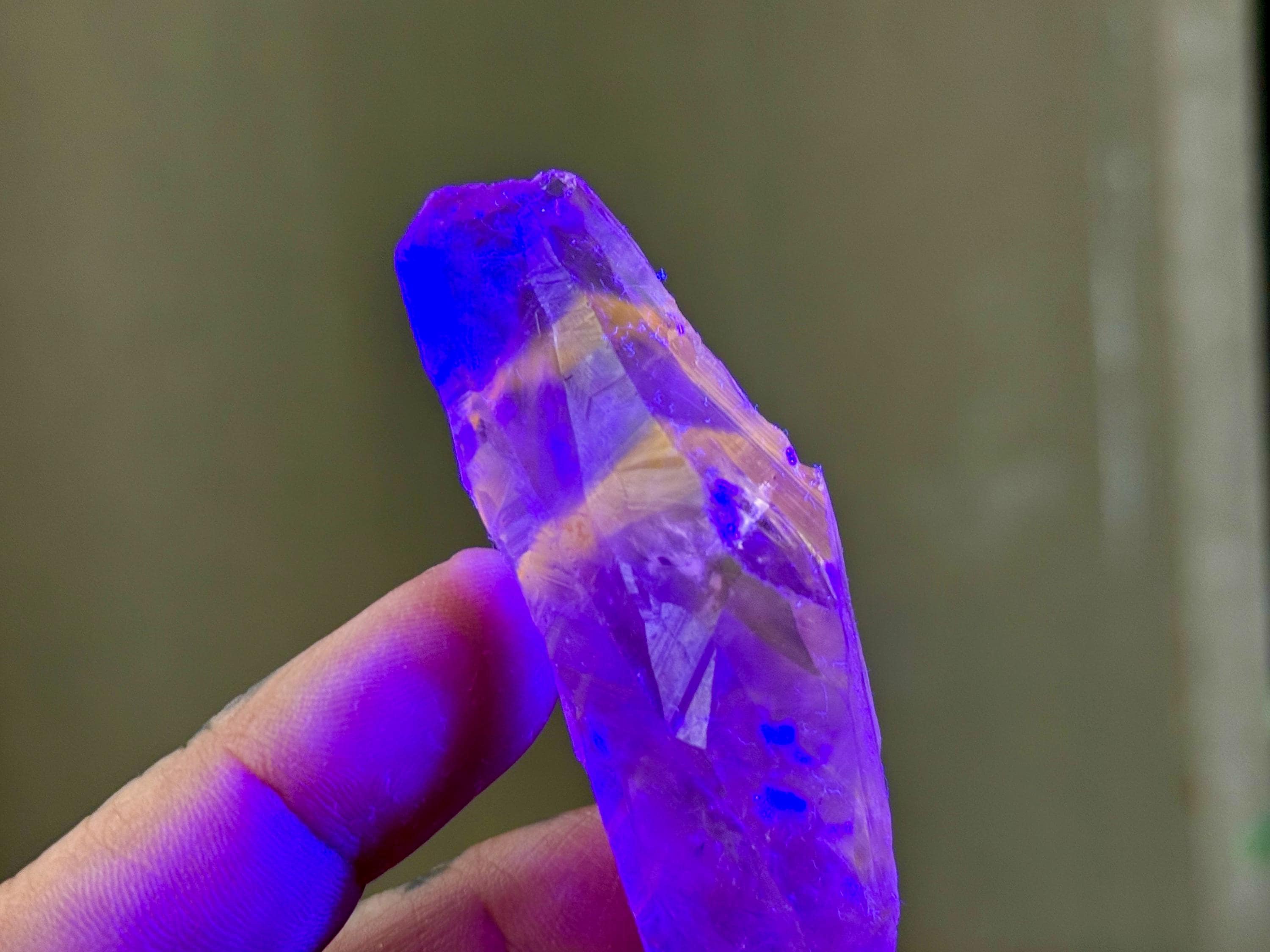 **Please note, the inclusions in this crystal are all natural/untreated. A UV light is necessary to see the phantoms glow, and they can be found affordably at Amazon or any other online outlet. Also, please note that the dark purple hues in the UV-lit photos are a result of the UV light itself and not the color of the crystal. The natural color is shown in the natural-light photos included in this listing.