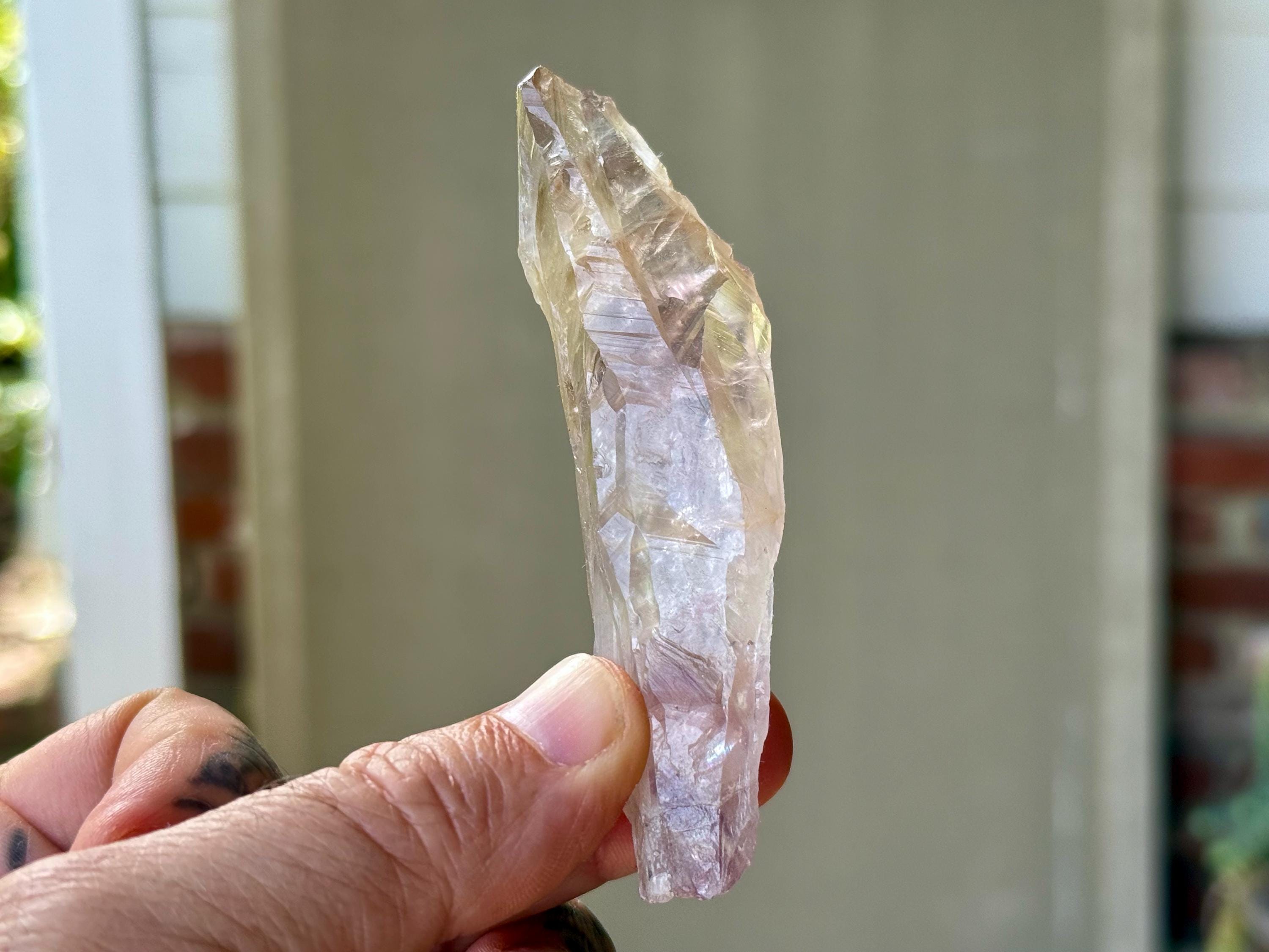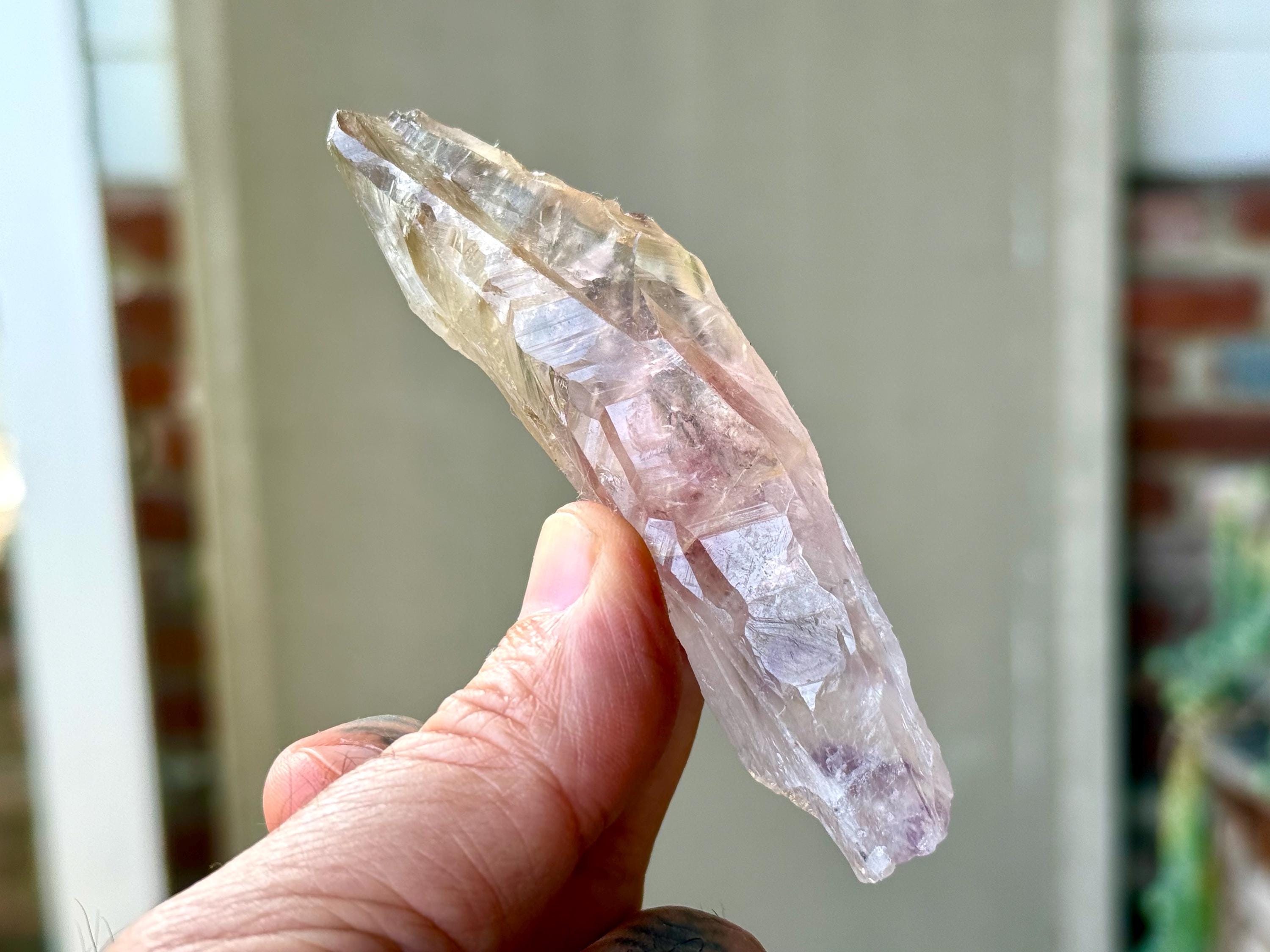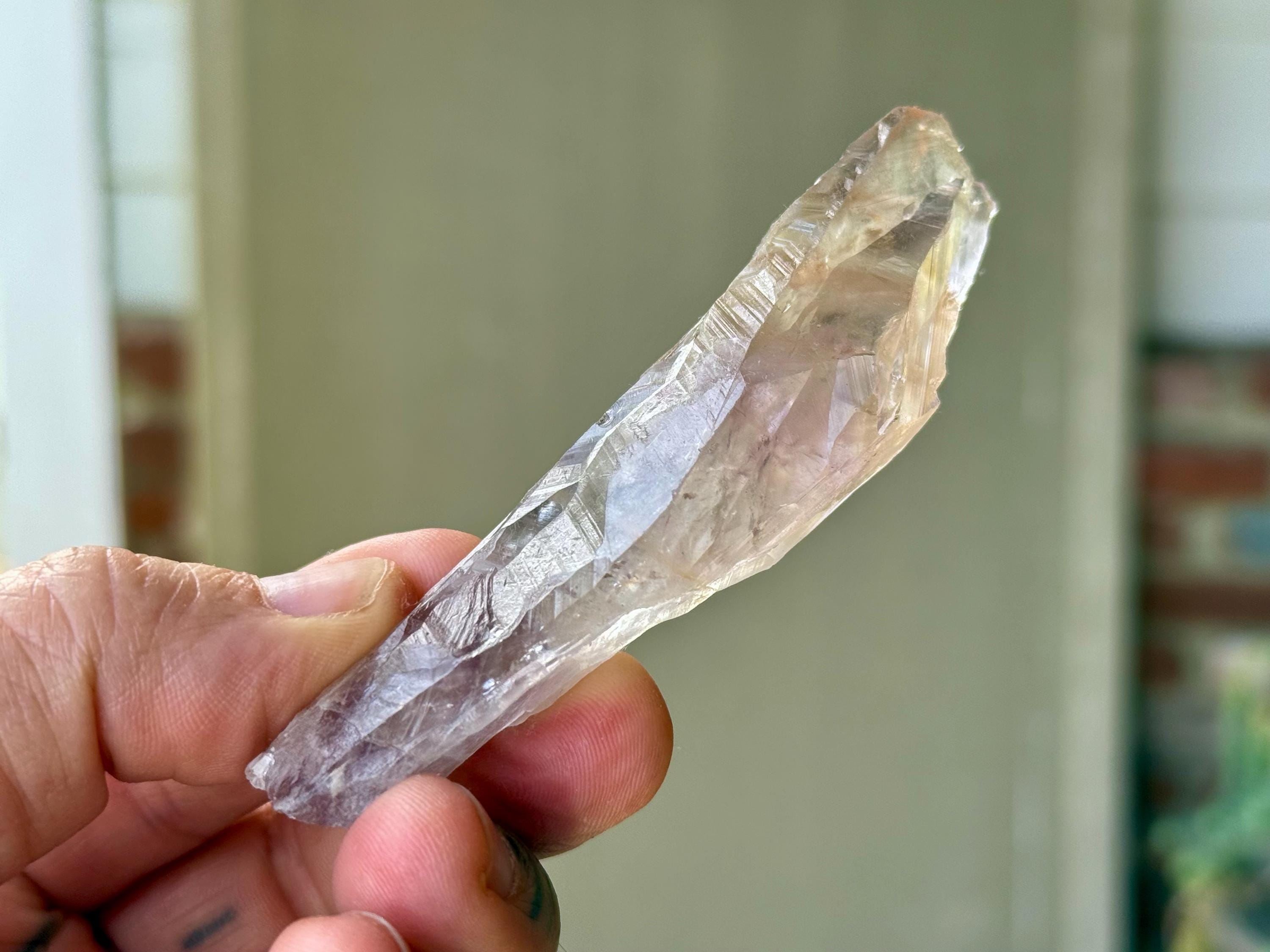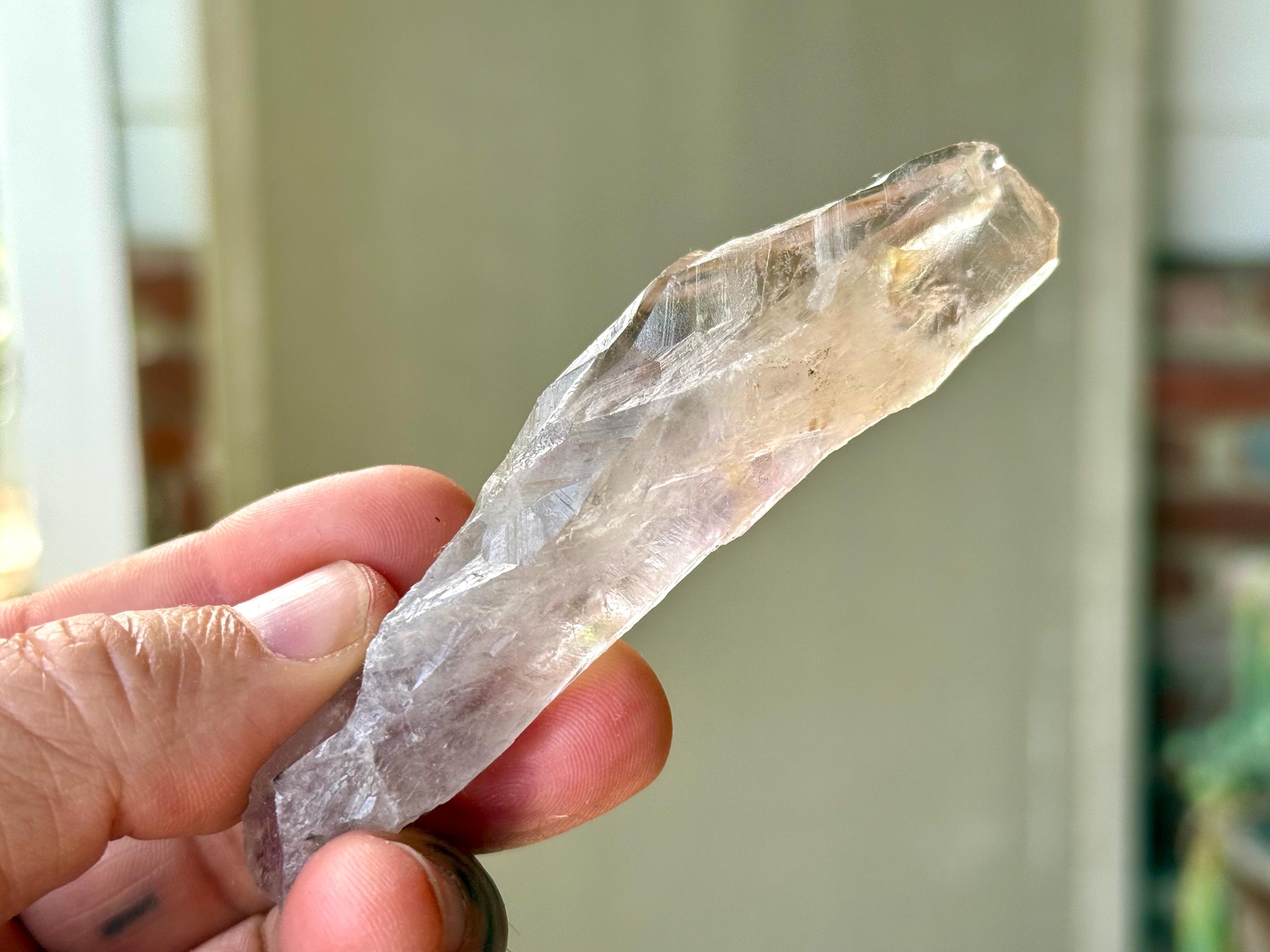 **Please note, the inclusions in this crystal are all natural/untreated. A UV light is necessary to see the phantoms glow, and they can be found affordably at Amazon or any other online outlet. Also, please note that the dark purple hues in the UV-lit photos are a result of the UV light itself and not the color of the crystal. The natural color is shown in the natural-light photos included in this listing.