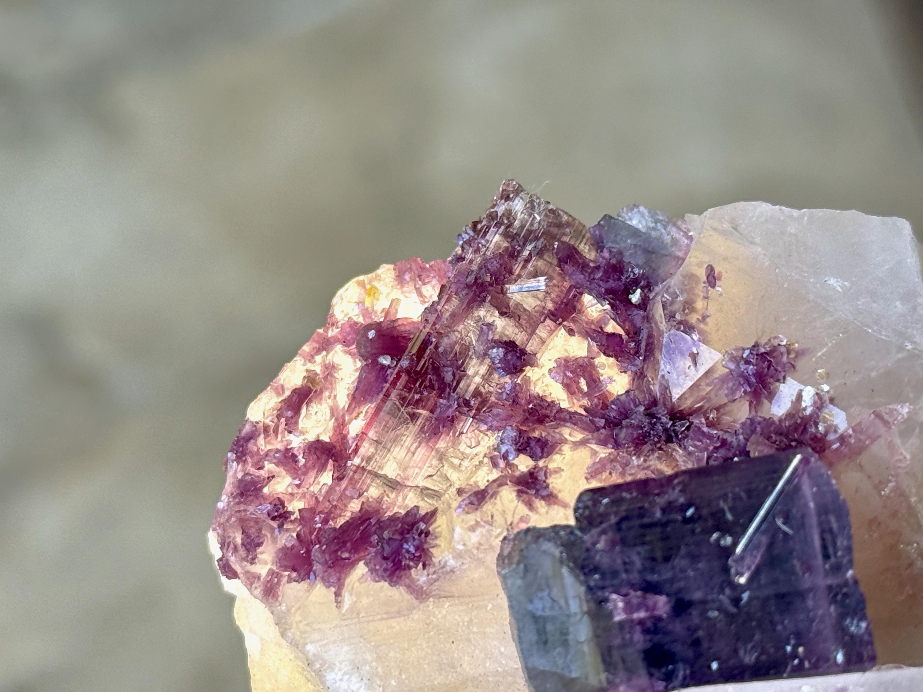 In addition to the Tourmalines, there is a lovely frost of straight Purple Lepidolite as well.