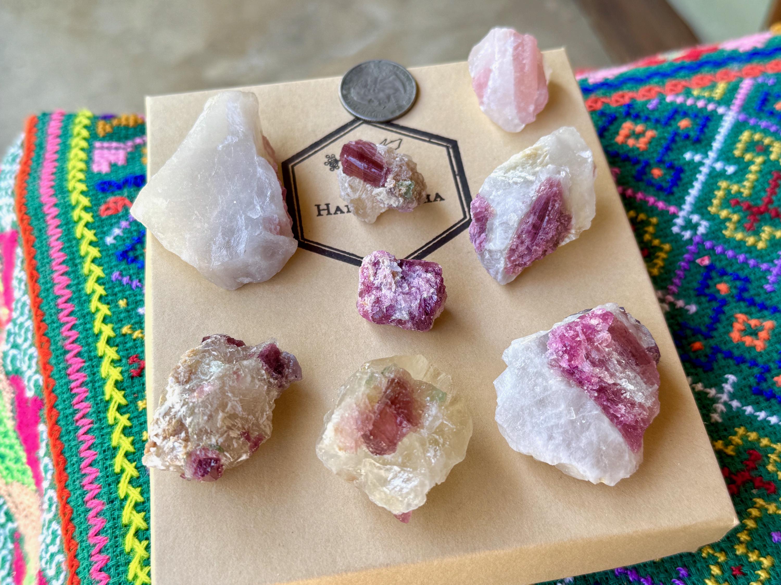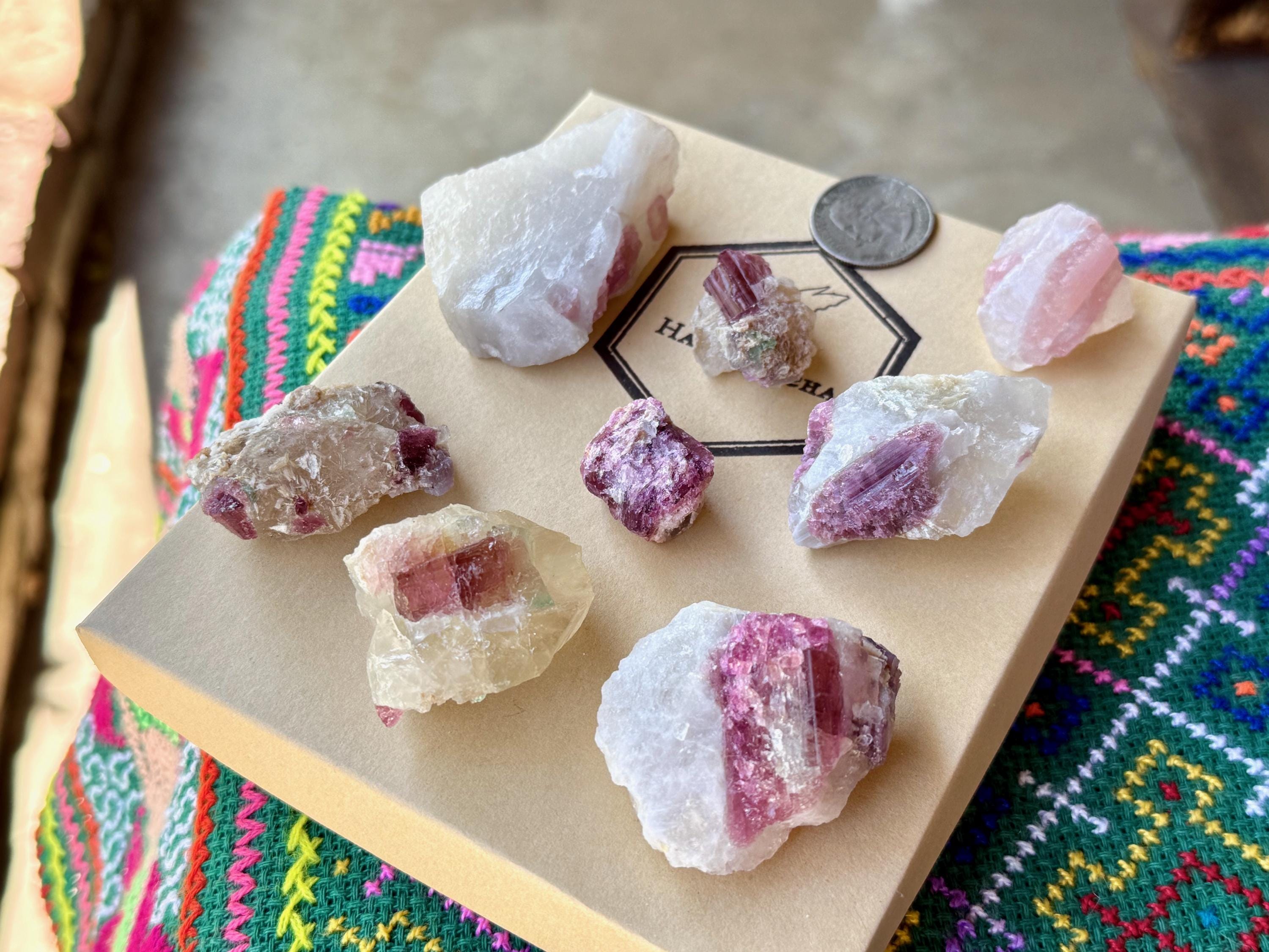 These Pink Tourmaline Unicorn Stone Quartz crystals come from the area of Coronel Murta, Minas Gerais, Brazil
