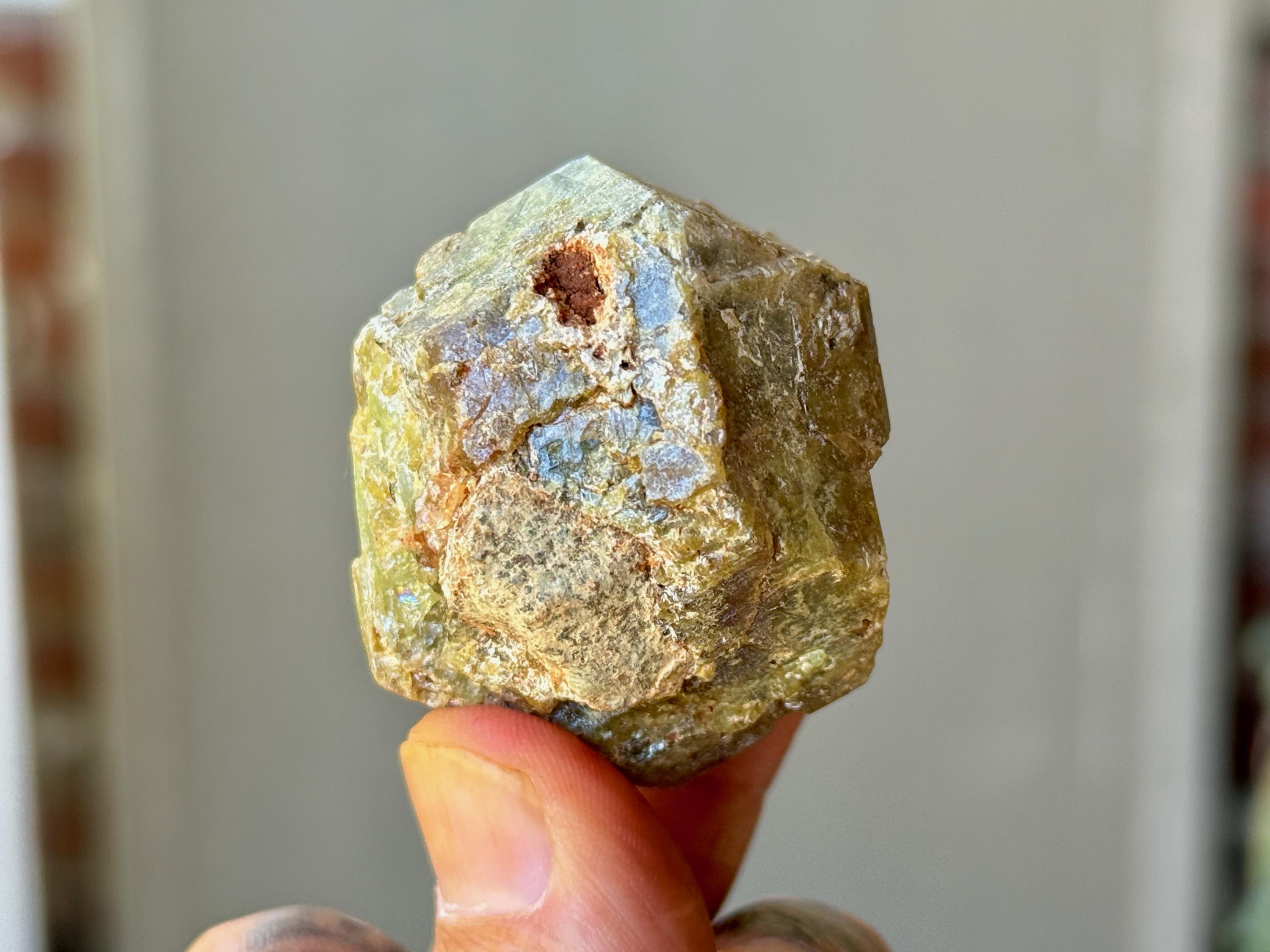 This natural Green Garnet crystal comes from Mali, Africa, a locale that well-known for producing some of the highest quality Green Garnets in the world. This crystal features a dodecahedral formation that occurs naturally. Green Garnet has a strong connection to the Heart Chakra, and is considered to be a powerful manifestation and prosperity crystal.
