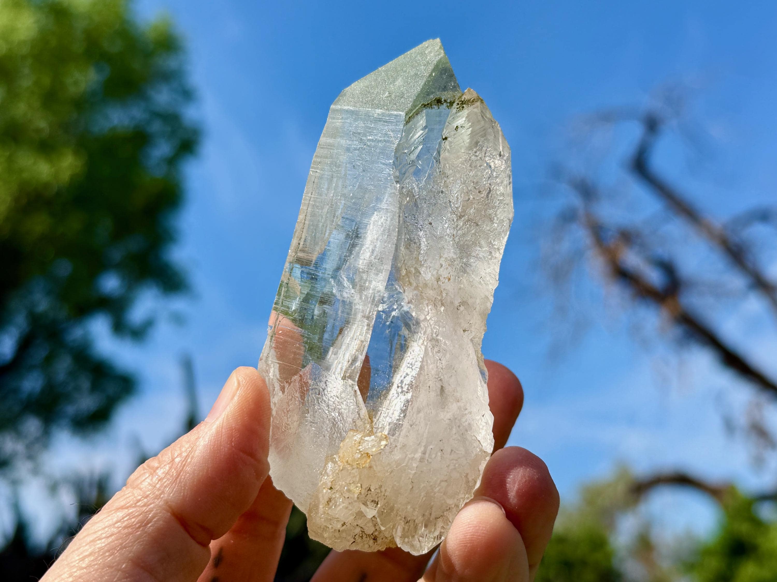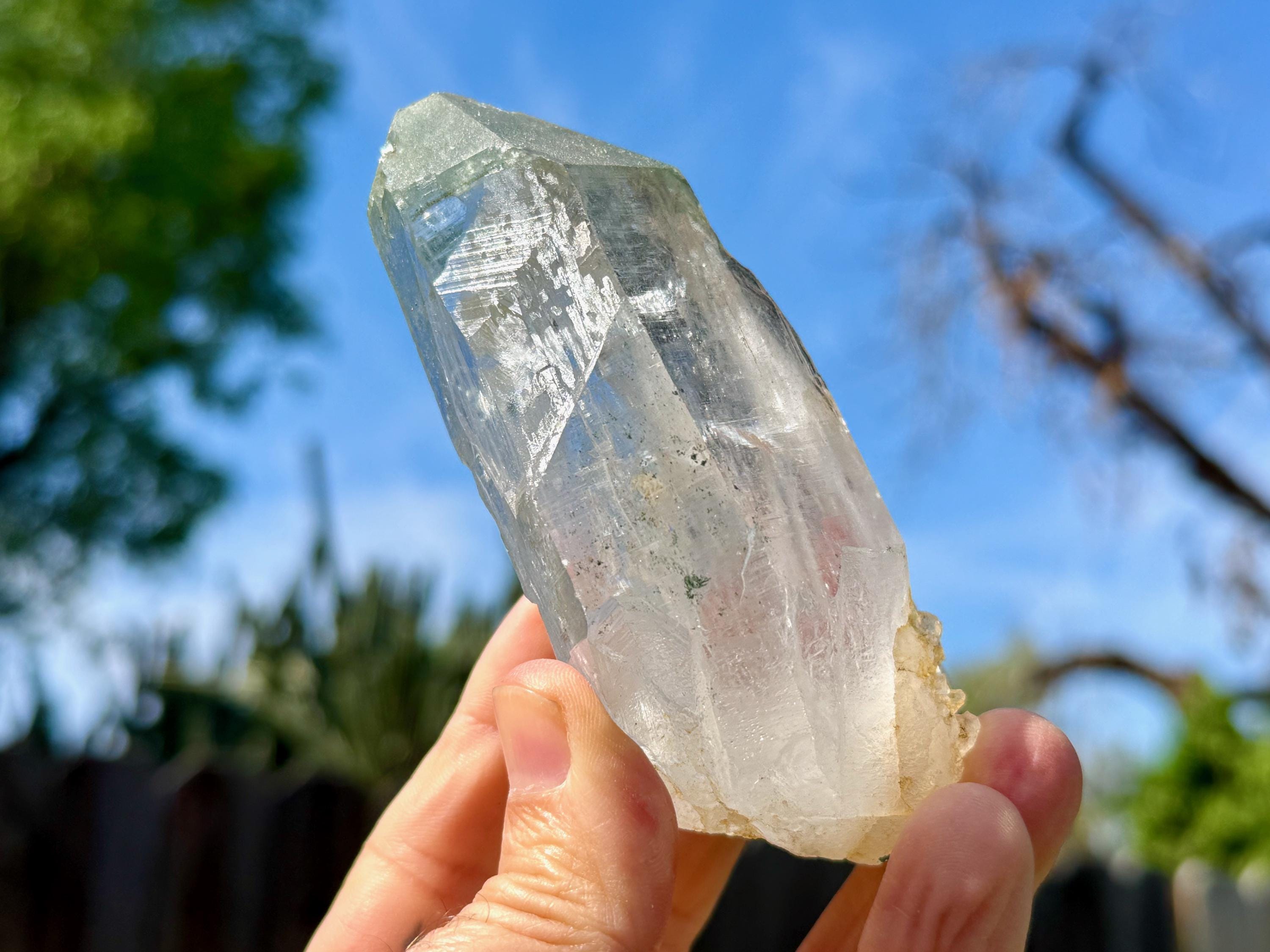 Himalayan Quartz carries one of the purest spiritual energies of any crystal, and they are known for having amazing water-clear (optical) clarity and luster. Even though most of them lack the traditional horizontal Lemurian ridges, these crystals carry much the same energy of traditional Lemurian Quartz, but there is something about them that seems to have an even higher vibration if that is possible. Because of the clarity and purity of these crystals, they are ideal for holding and setting personal intentions, and amplifying these intentions into the universe. They are also most profound in facilitating contact with Divine Realms, higher dimensional beings and spirit guides.
