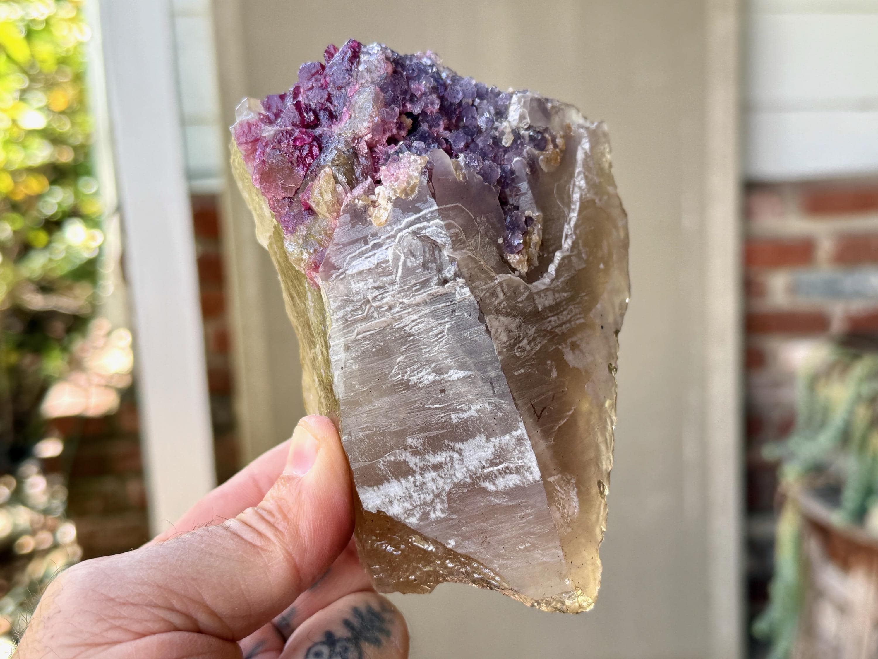 This stunning Unicorn Stone with Citrine, Lepidolite and Pink Tourmaline comes from a recent find in the area of Coronel Murta, Minas Gerais, Brazil.