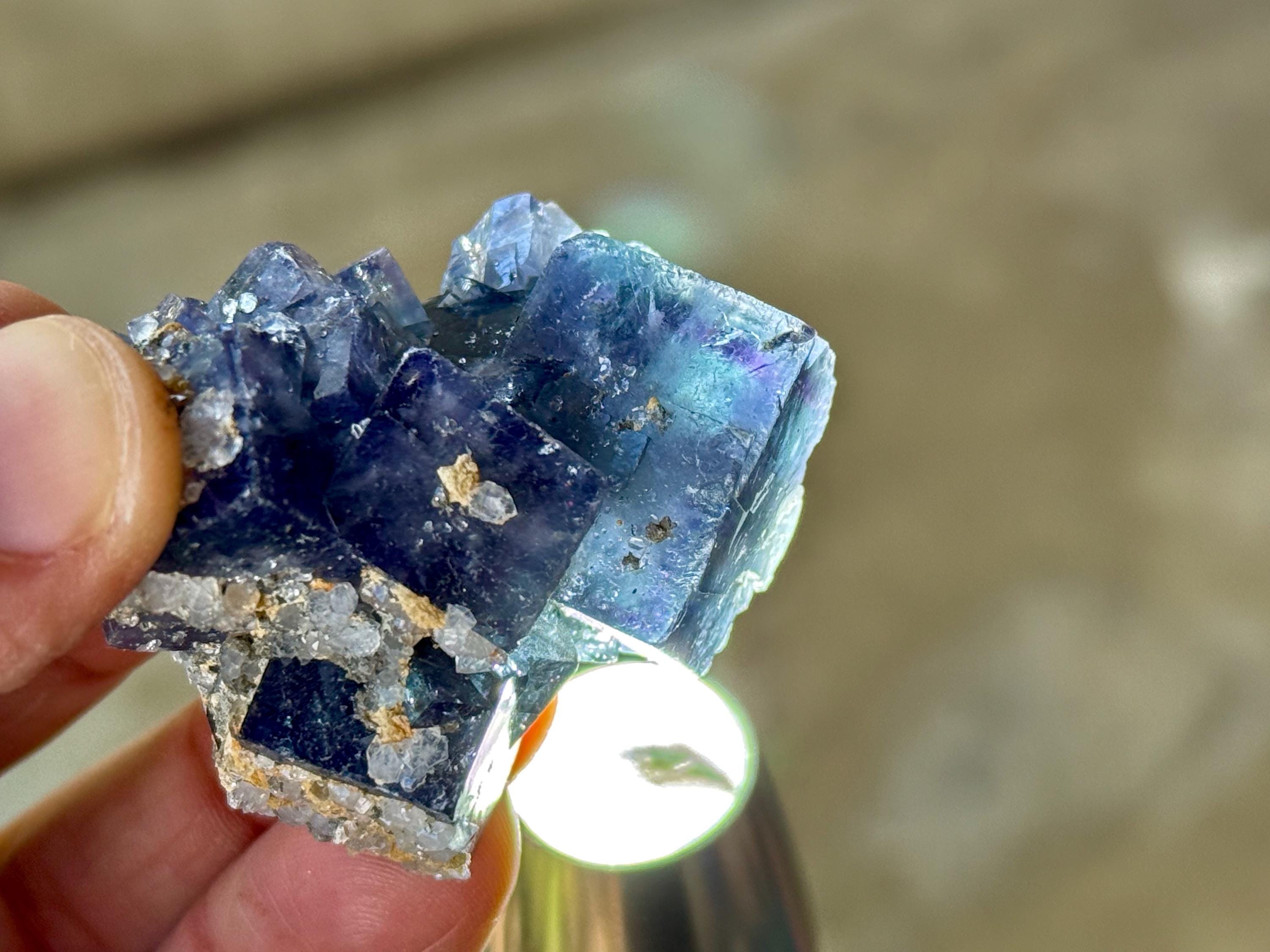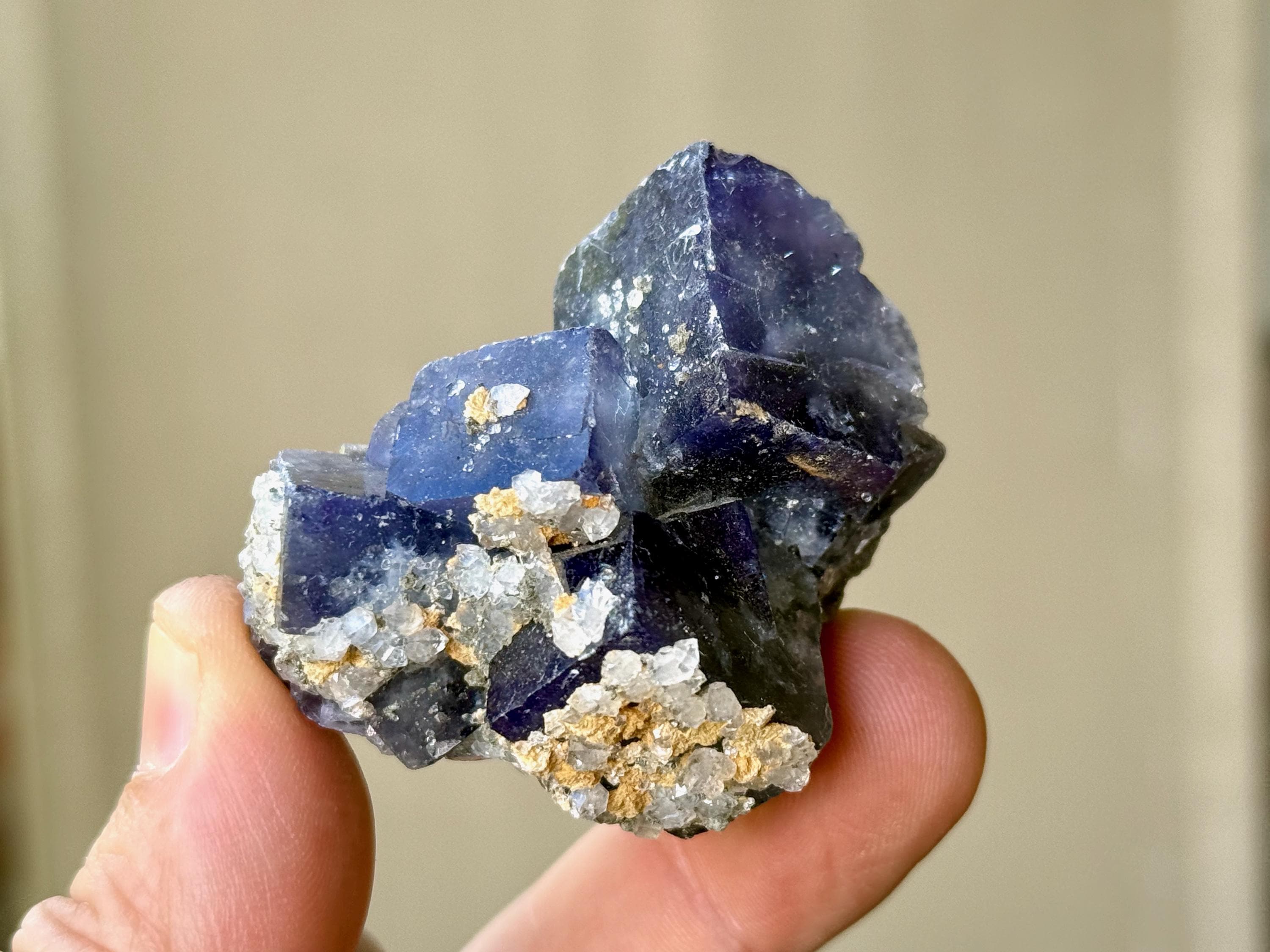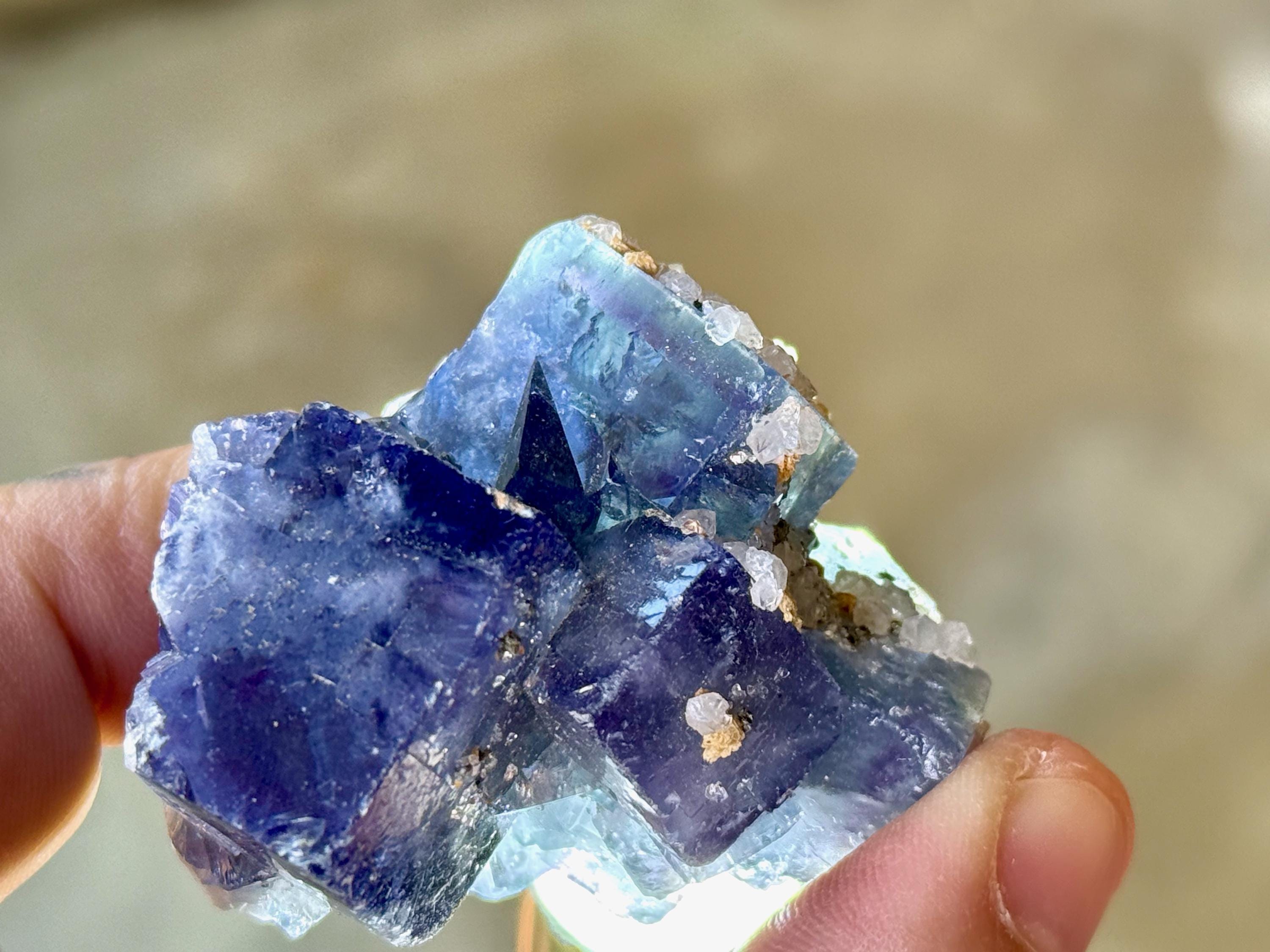 The Fluorites from this find are quite special for a variety of reasons. First, many of them are multicolor, displaying various hues of purple, blue and green. They also are considered to be "color changing," as their hues can vary when viewed in natural sunlight (versus indoors) and especially under UV (Ultraviolet) light, as they are also UV reactive. When backlit, many of these crystals will reveal even more brilliant hues.