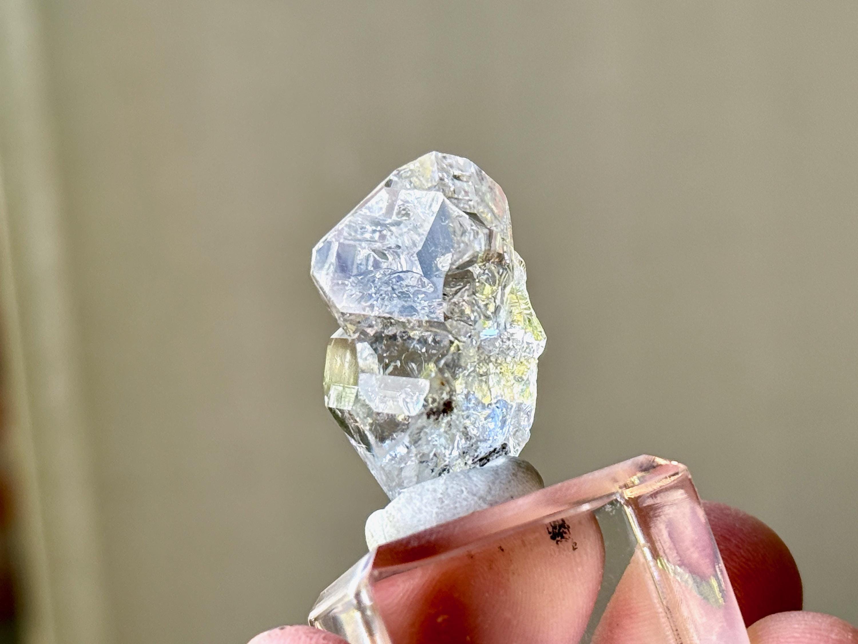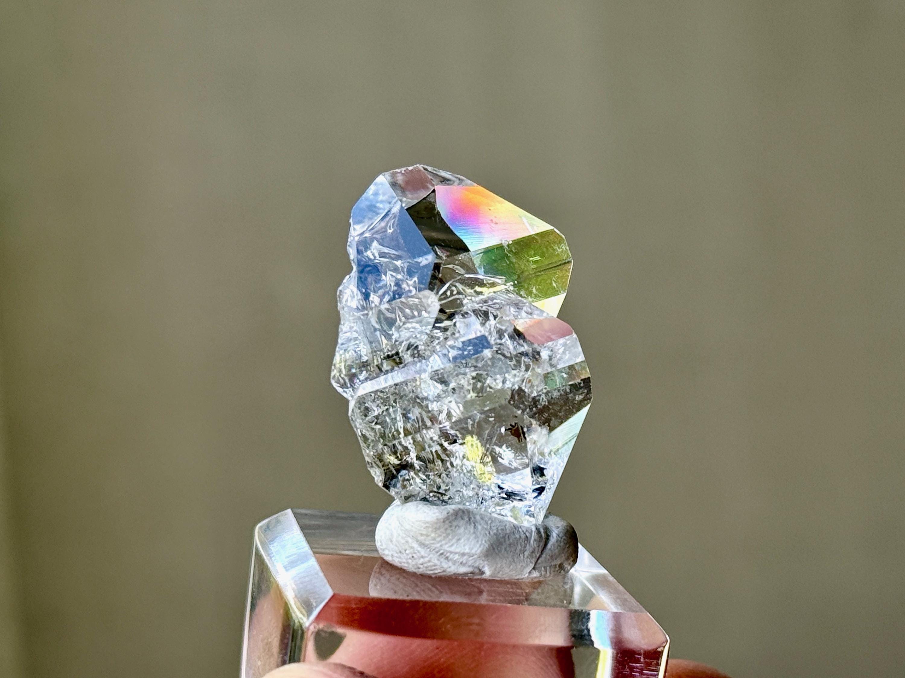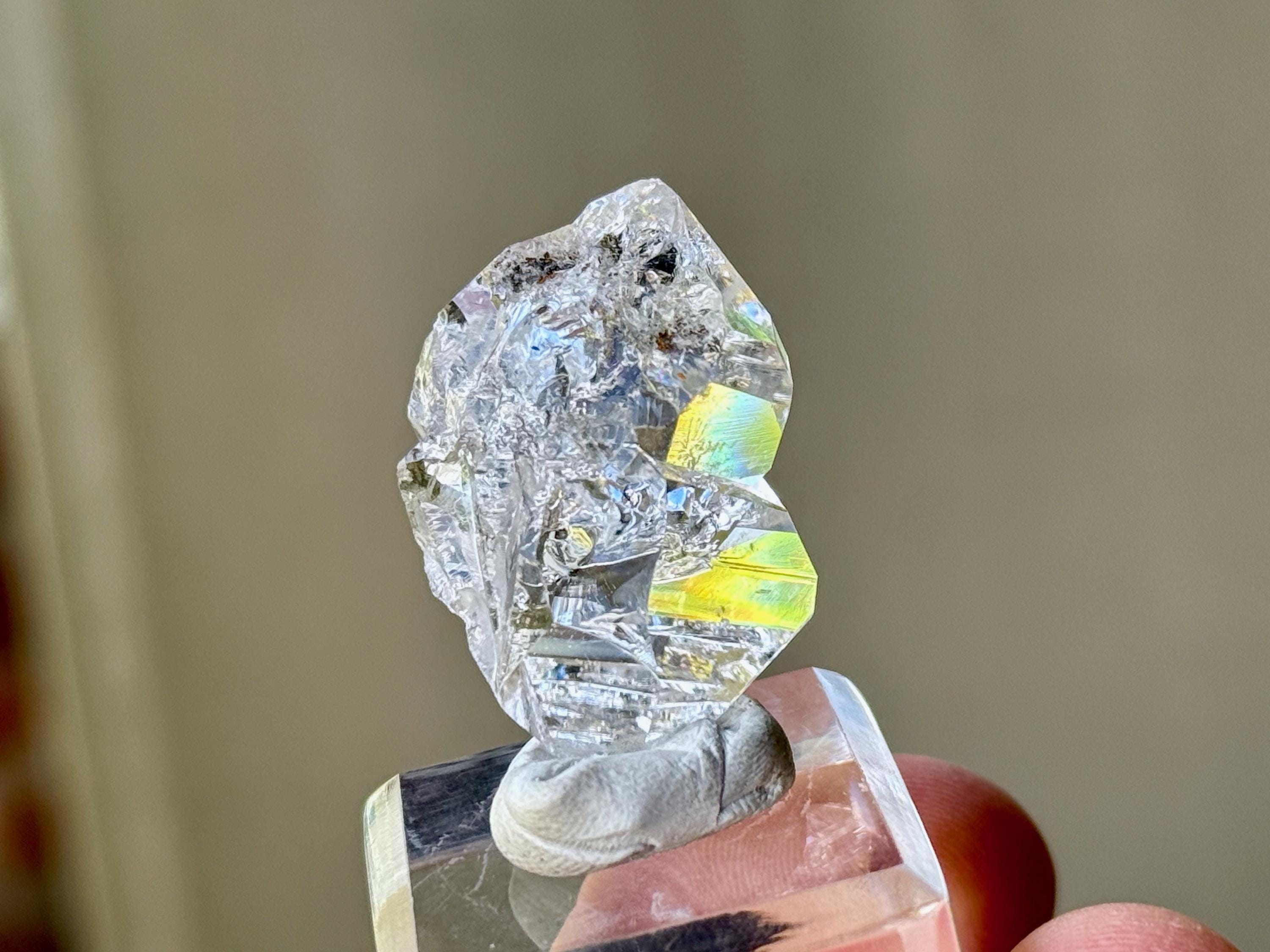 One of the finest quality Herkimer Diamonds from this collection, this crystal exhibits water-clear clarity and light-bearing luster. Its basically optical, as the form and clarity produces a bit of a prismatic effect at certain angles (Photo 2).