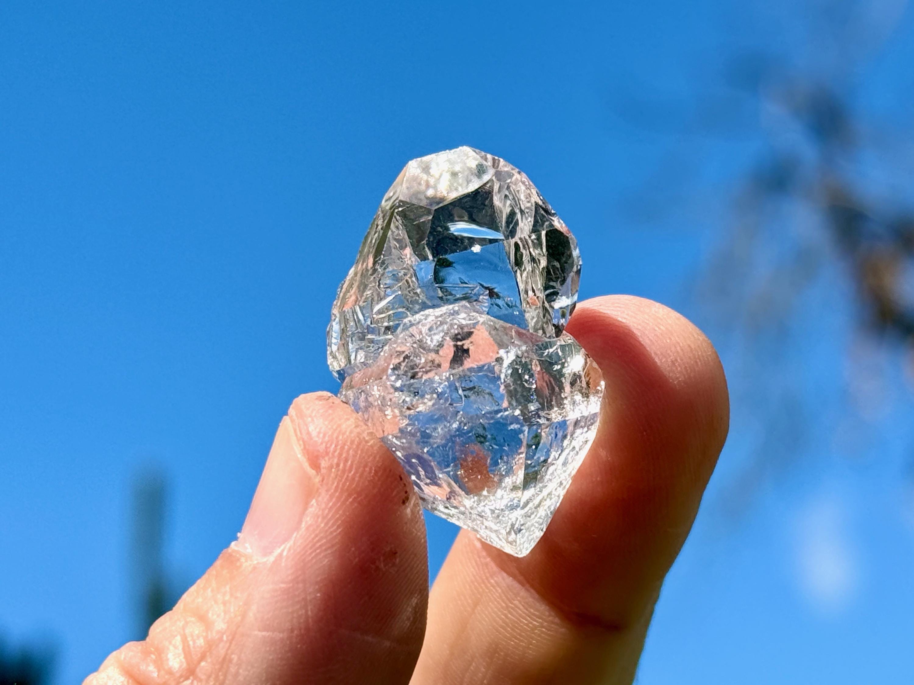 This elegant Herkimer Diamond Quartz comes from a 2025 find in Herkimer County, New York (USA), the only area where true Herkimer Diamonds are found. We purchase our Herkimers directly from the prospectors who mine them to ensure quality and authenticity.