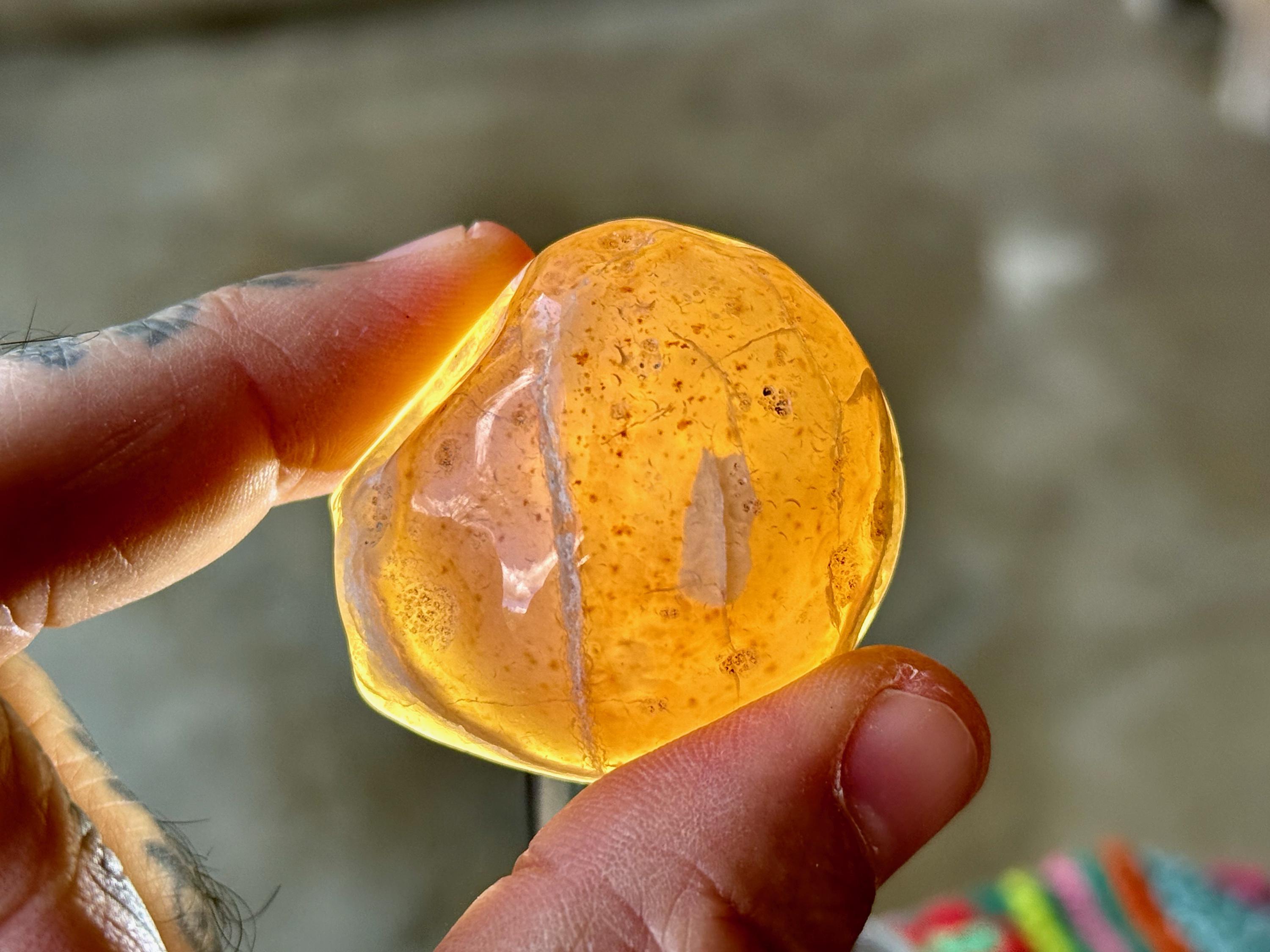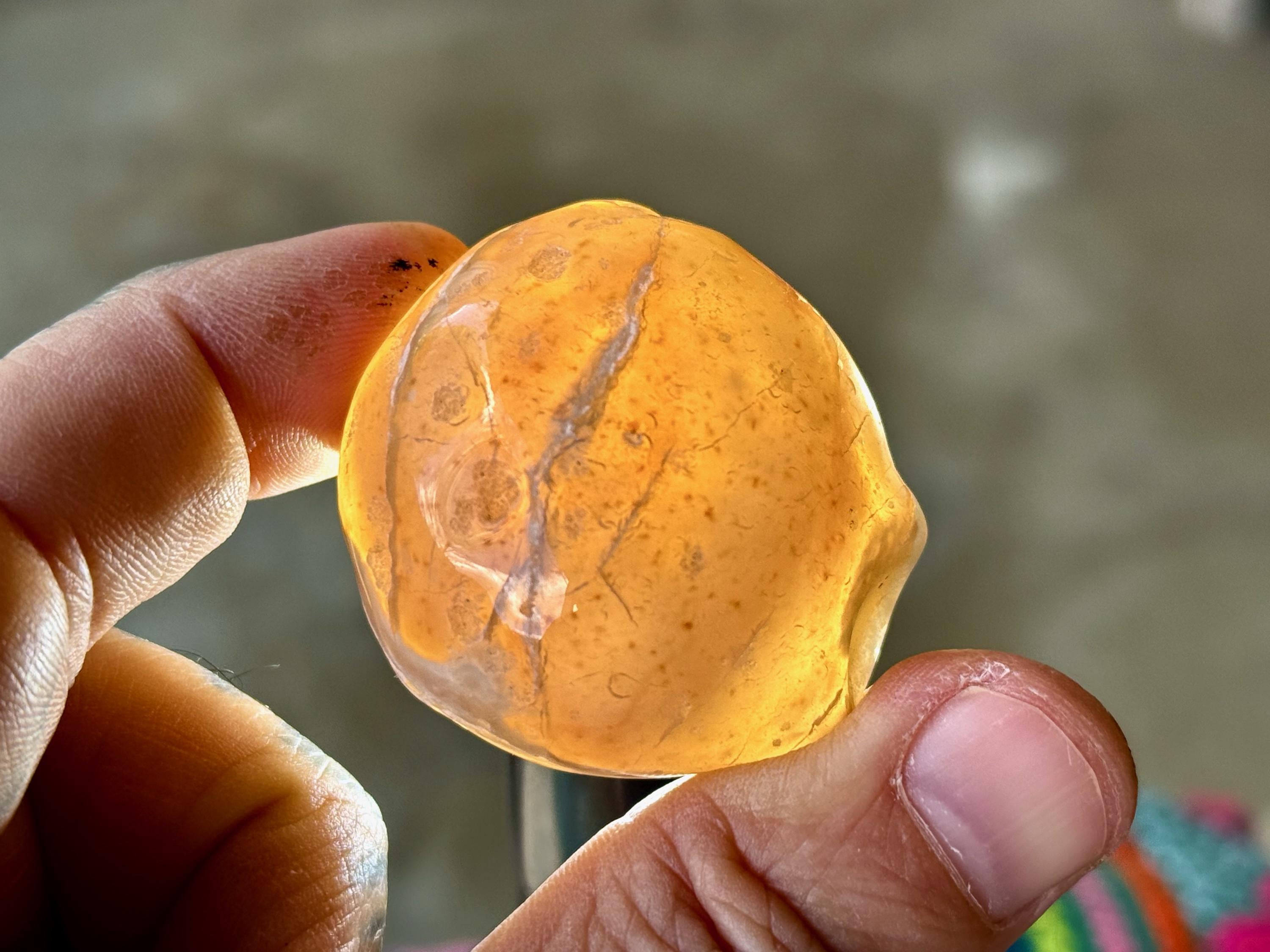 This Agate has outstanding translucency when backlit which makes it easy to see the water swishing inside. The video shows this and it will be much more evident in person. We recommend using a strong light to backlight and doing so in a darkened room to fully appreciate the water within. We've also included photos of this piece with backlighting (Photos 2-3).