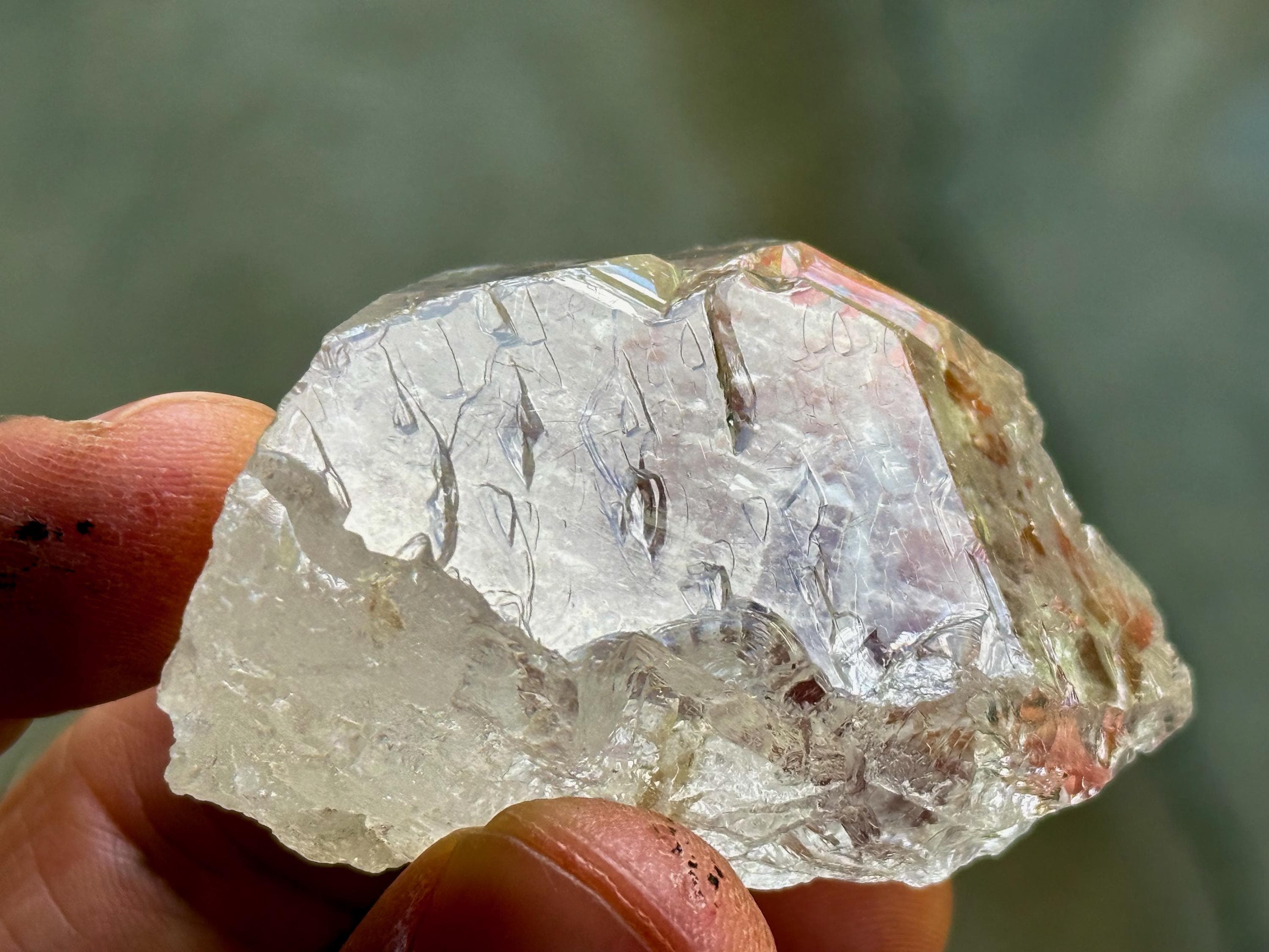 This crystal does not have a traditional termination, as the termination abuts the self-healed, etched area on the backside. However it is entirely intact. Absolutely beautiful!