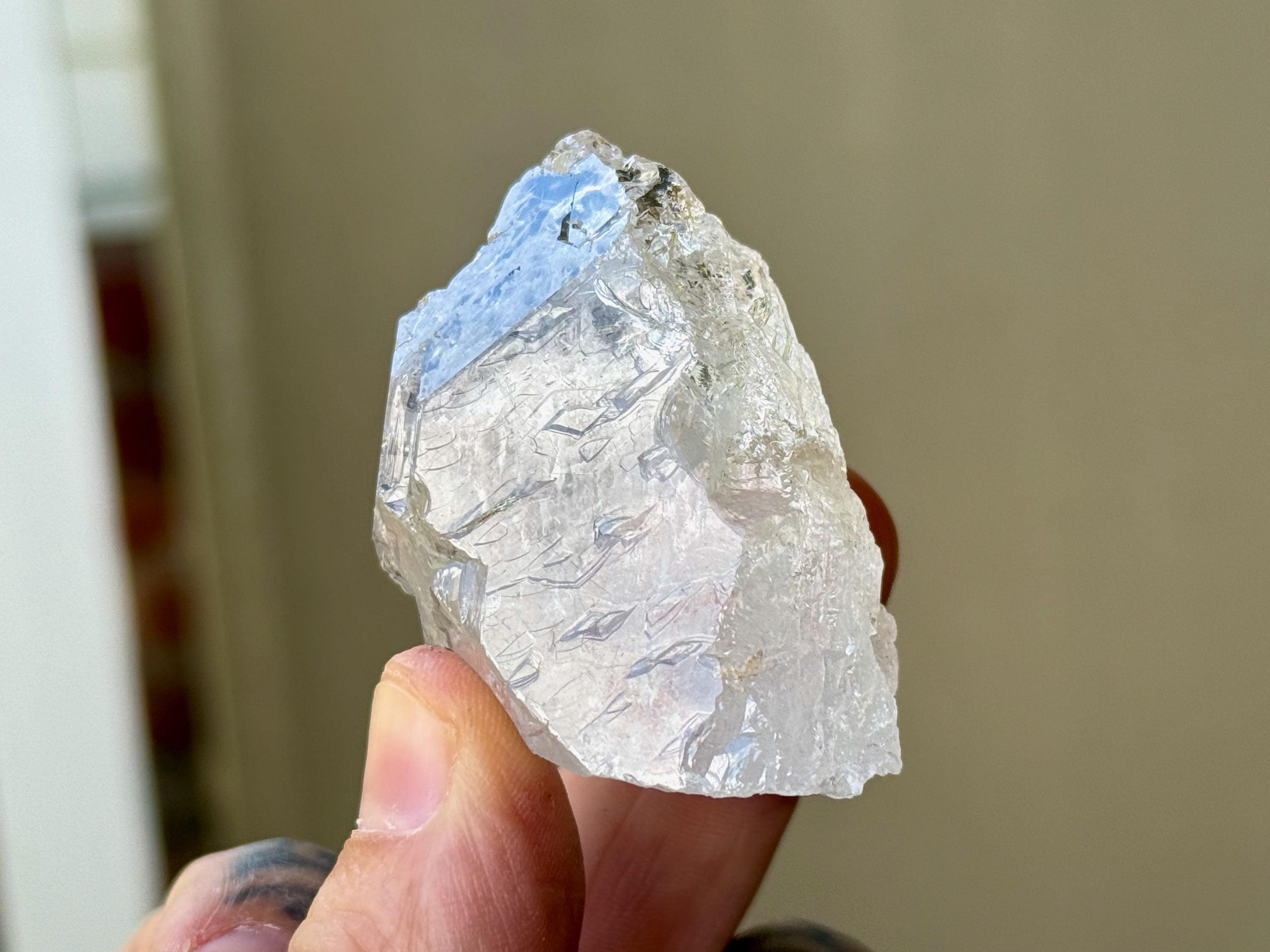 Water-clear clarity and light-bearing luster to this elegant Ice Quartz crystal with superb etched formations.