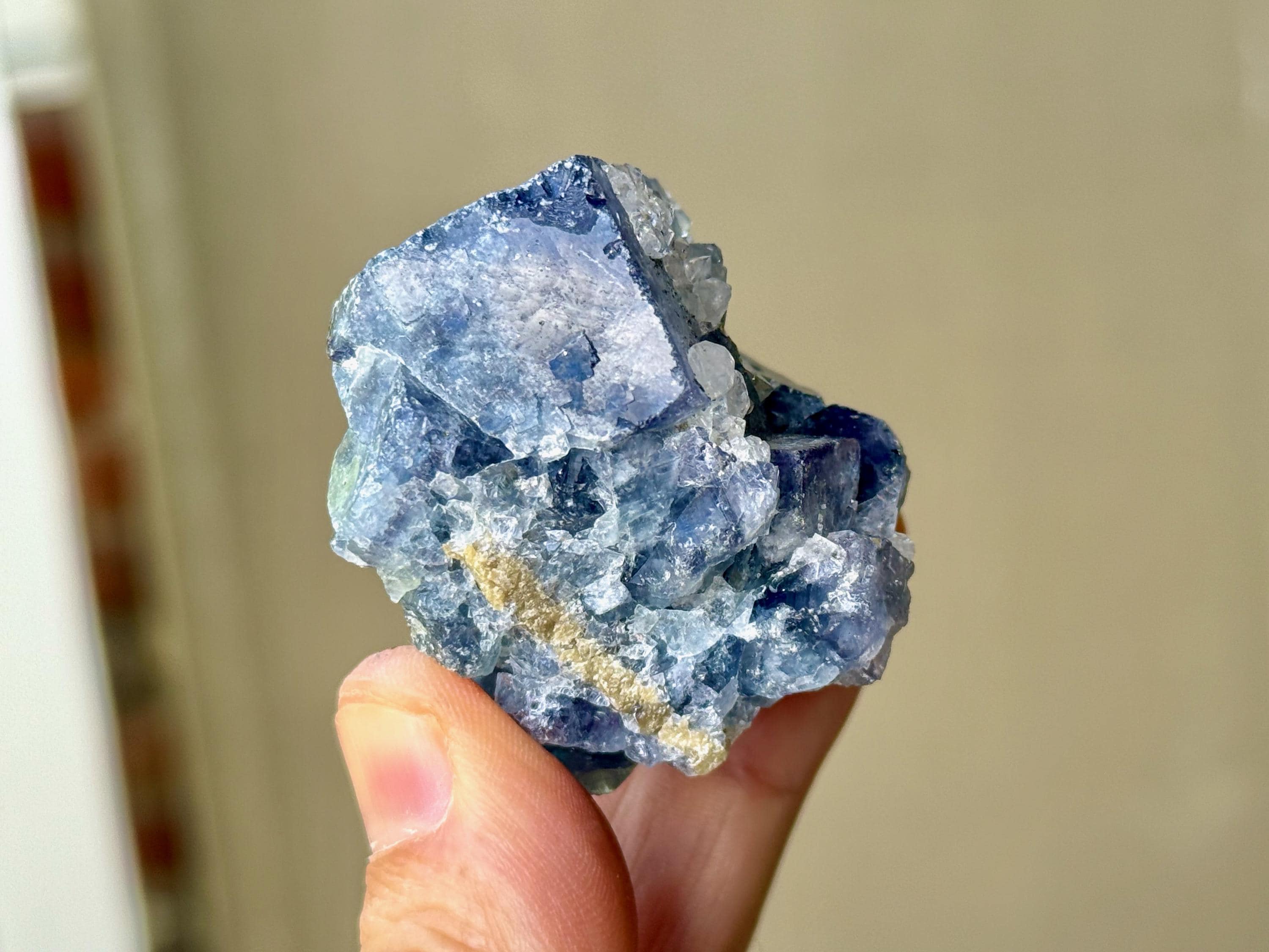 The Fluorites from this find are quite special for a variety of reasons. First, many of them are multicolor, displaying various hues of purple, blue and green. They also are considered to be "color changing," as their hues can vary when viewed in natural sunlight (versus indoors) and especially under UV (Ultraviolet) light, as they are also UV reactive. When backlit, many of these crystals will reveal even more brilliant hues.